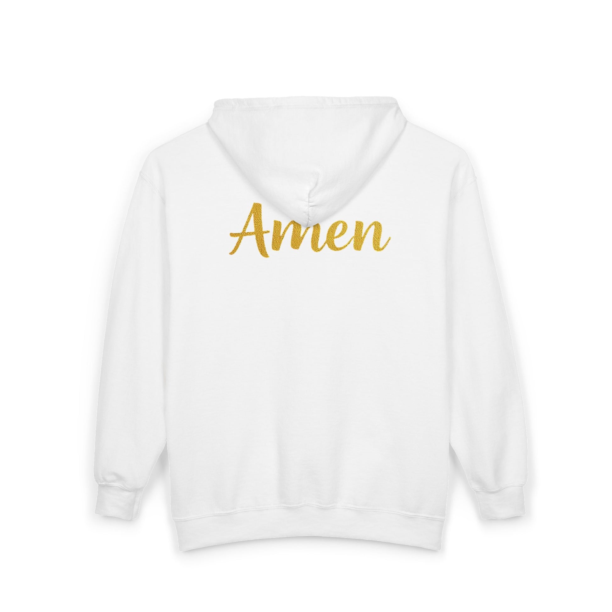 Bring warmth and devotion wherever you go with our “Amen” women’s zip-up hoodie. Featuring the smooth handwritten Amen design, it’s a cozy yet chic layer for running errands, lounging, or stepping out in faith-inspired style.