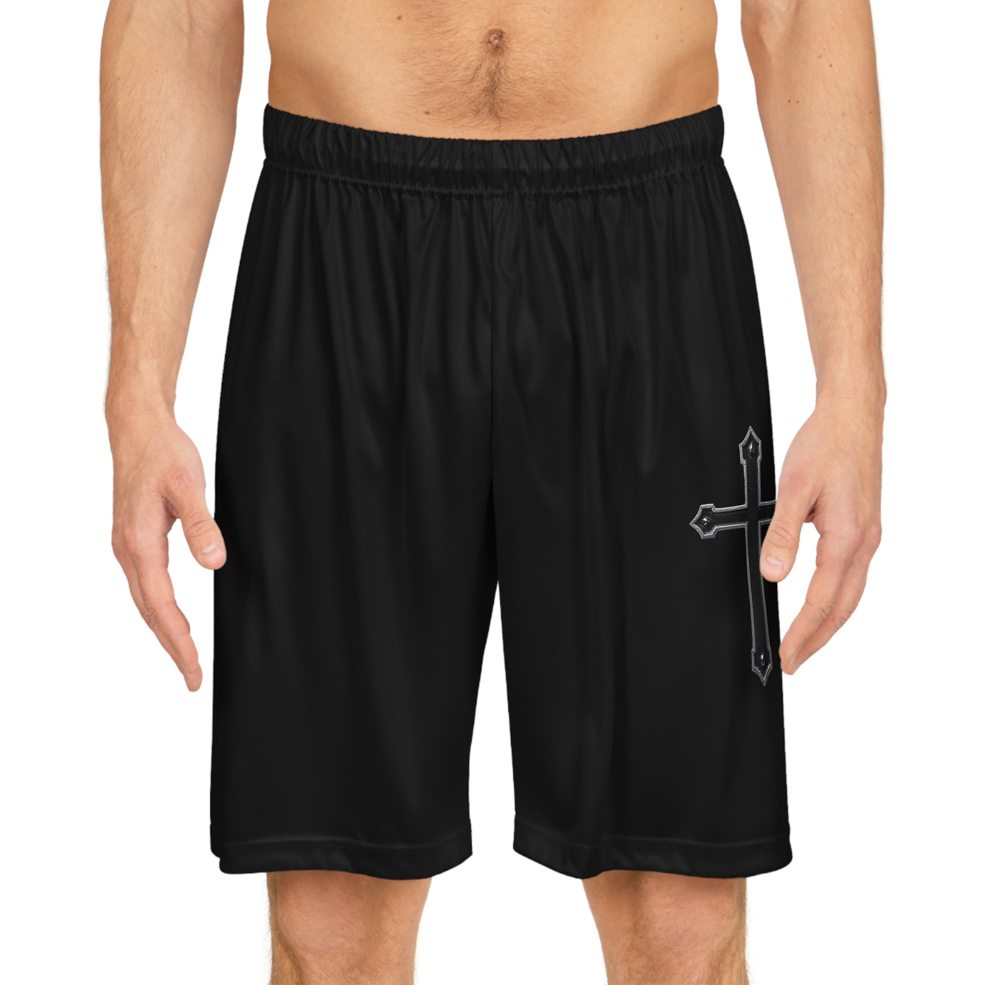 Hit the court in faith and style with these Men’s Basketball Shorts, featuring a bold black cross on the left leg. Designed for comfort and performance, these shorts combine breathable, lightweight fabric with a meaningful symbol of devotion. Perfect for workouts, sports, or casual wear, let your faith guide every move.