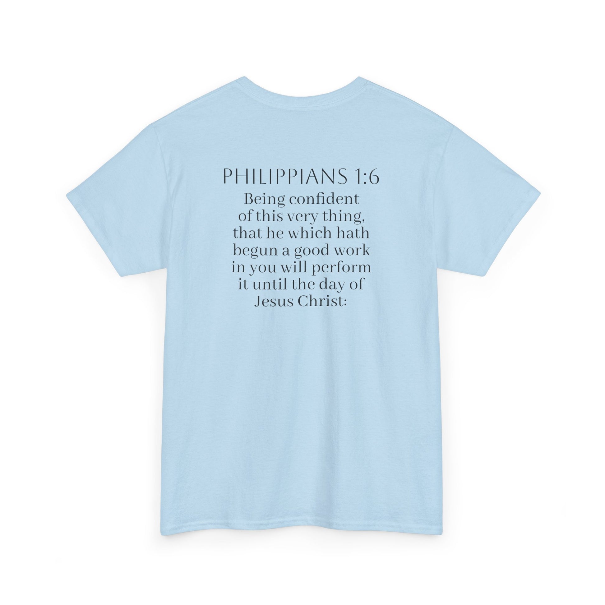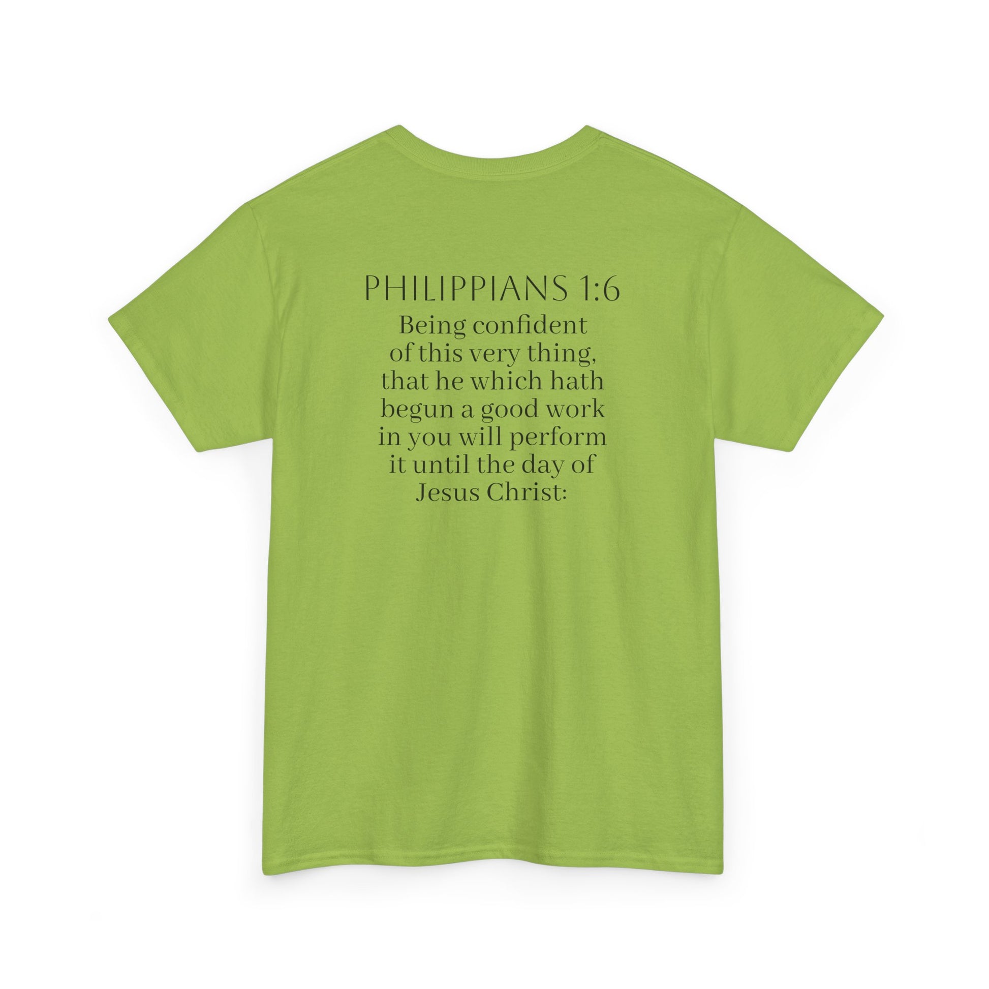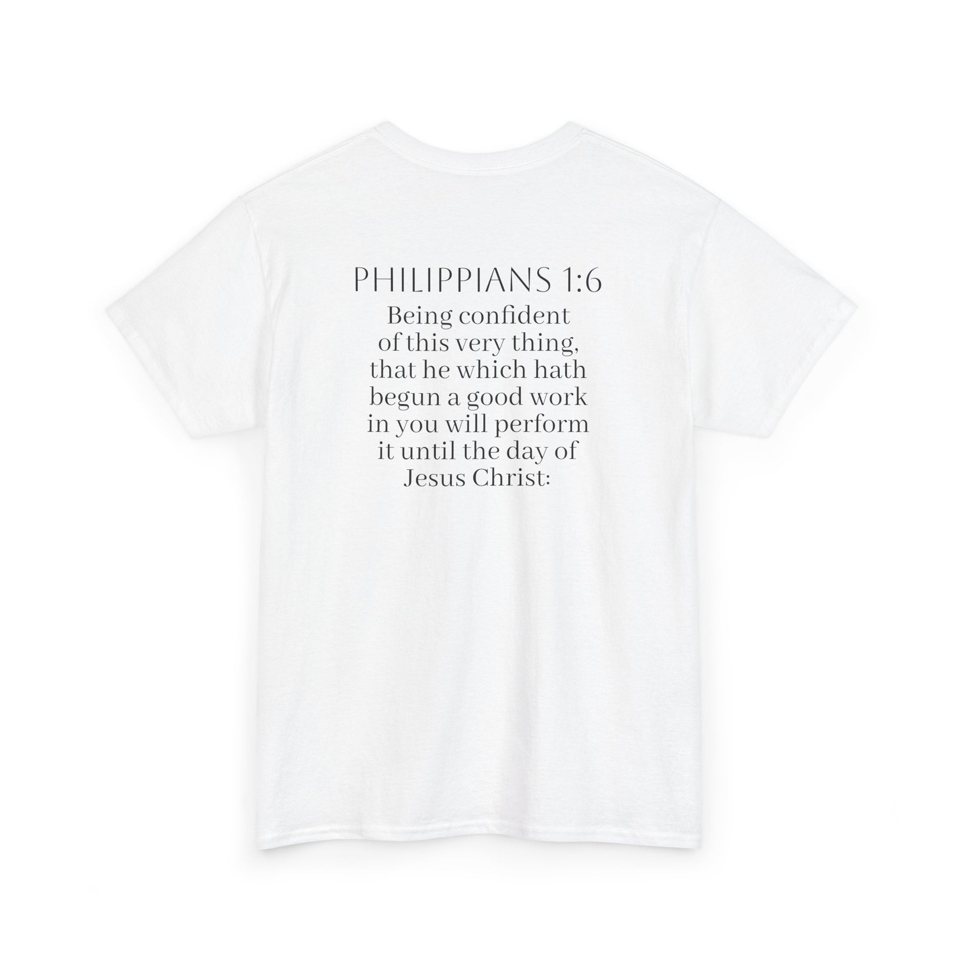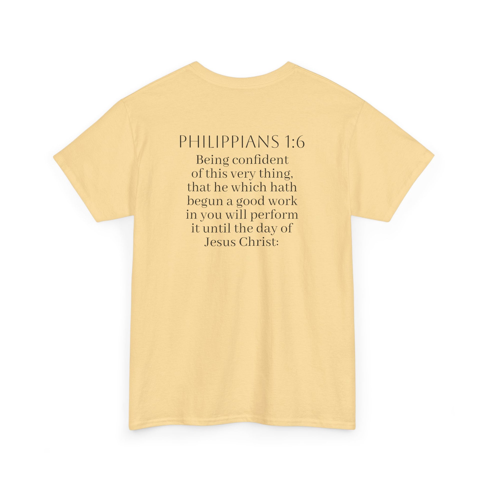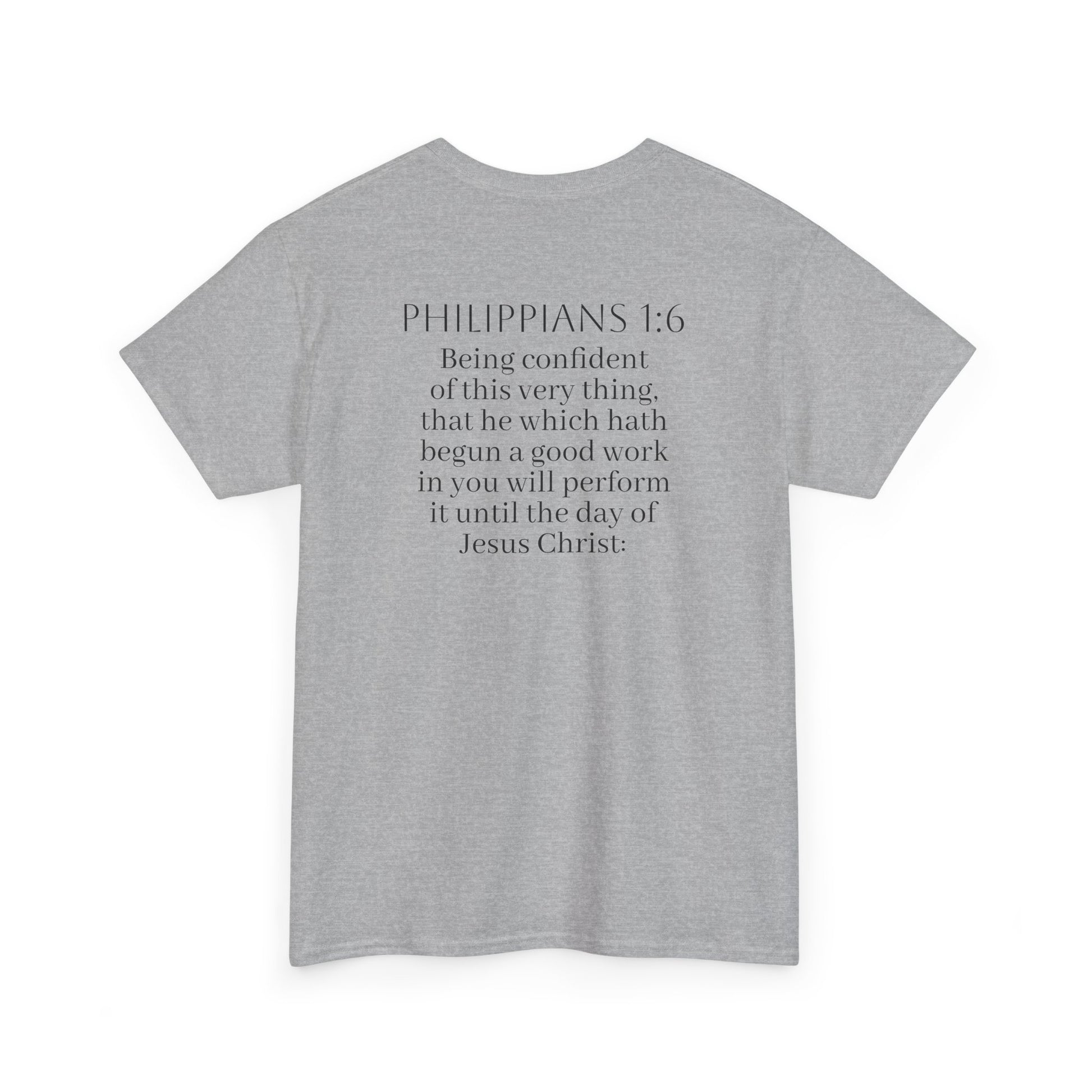 Becoming Men’s Faith Tee – Philippians 1:6 (Dark Lettering)