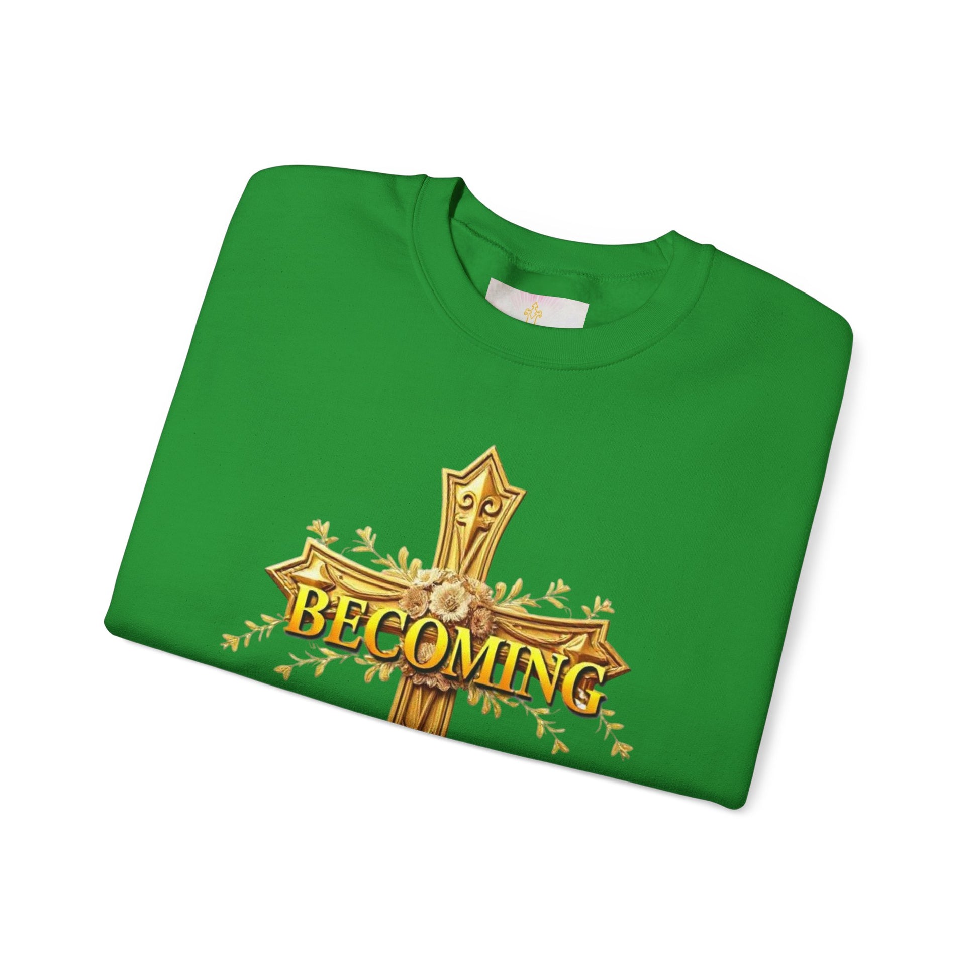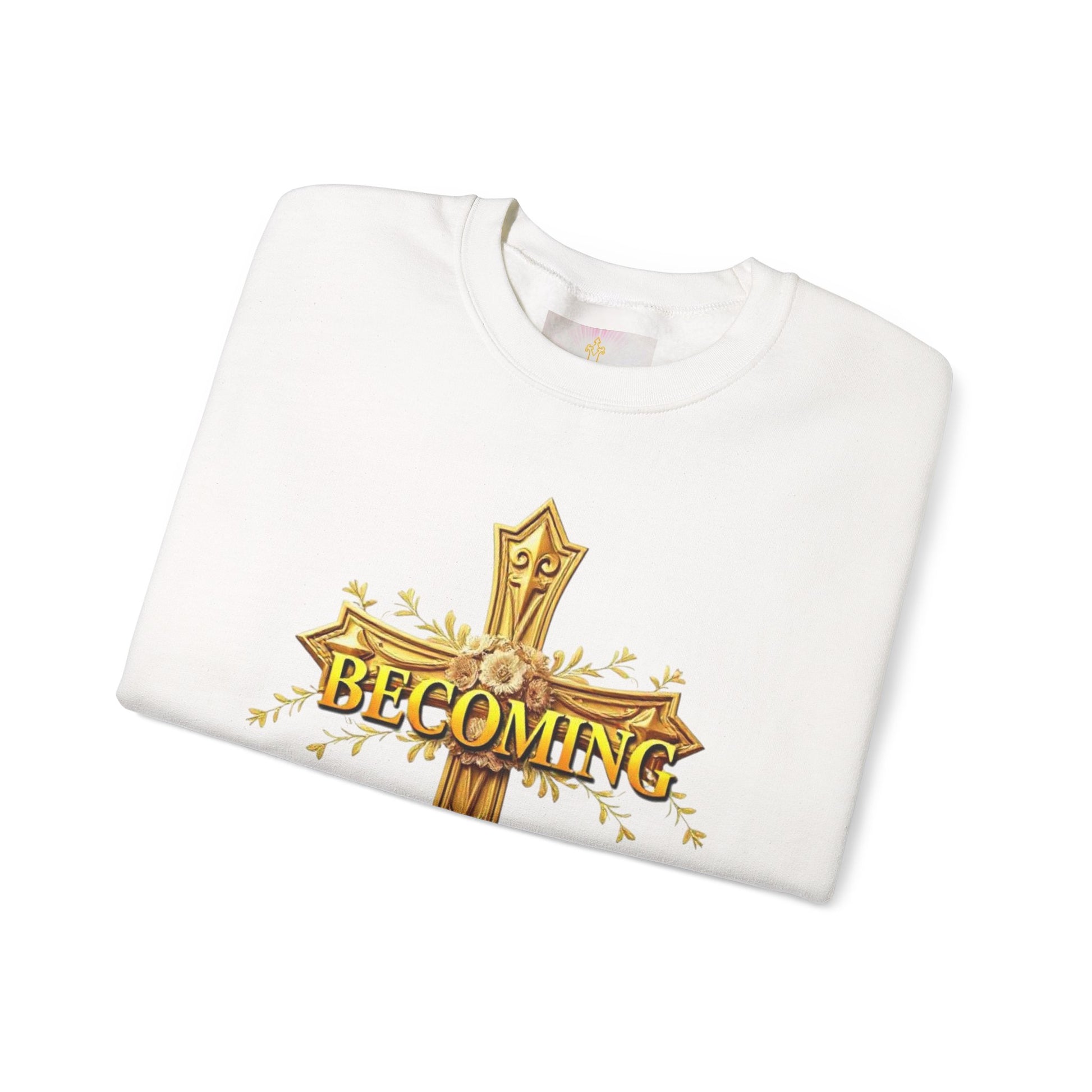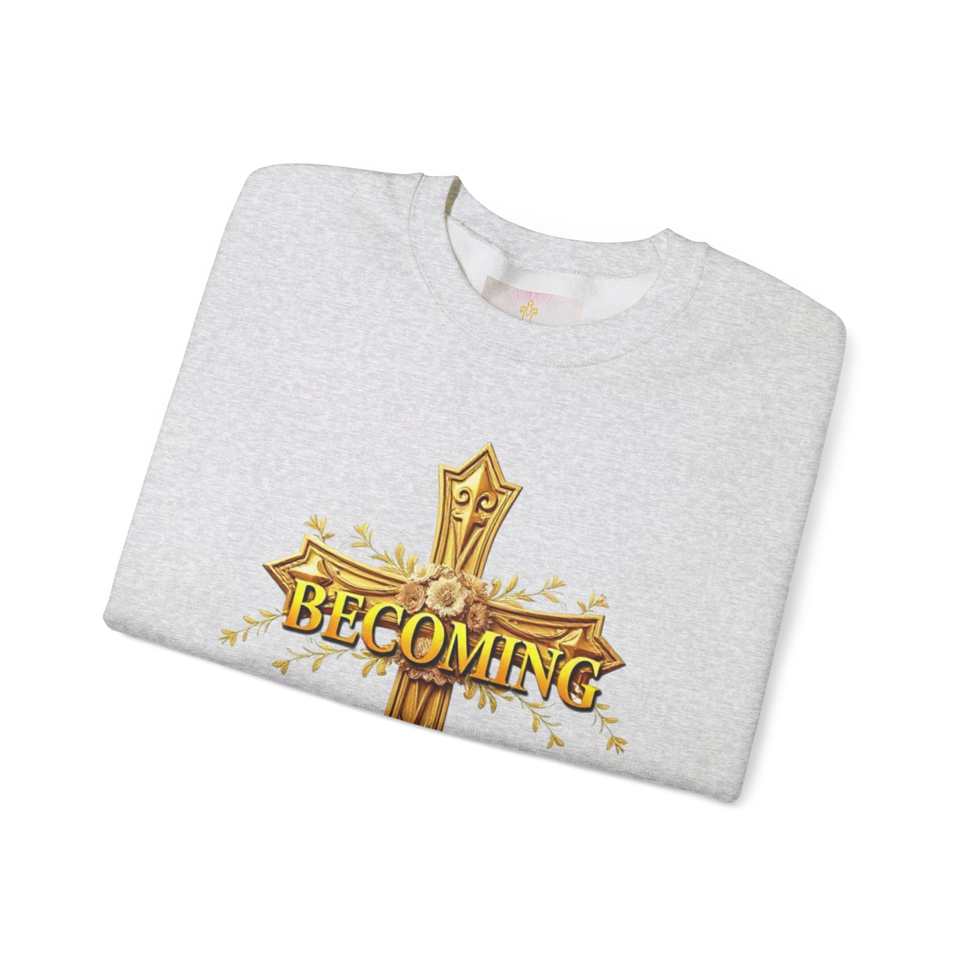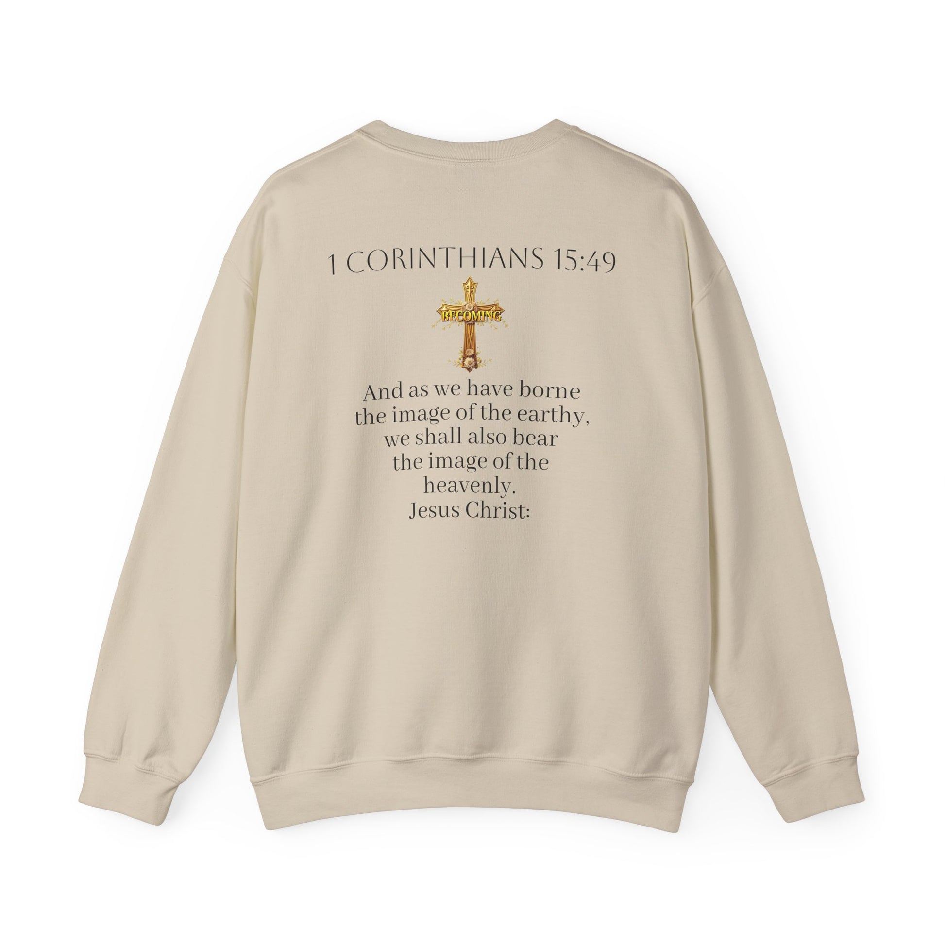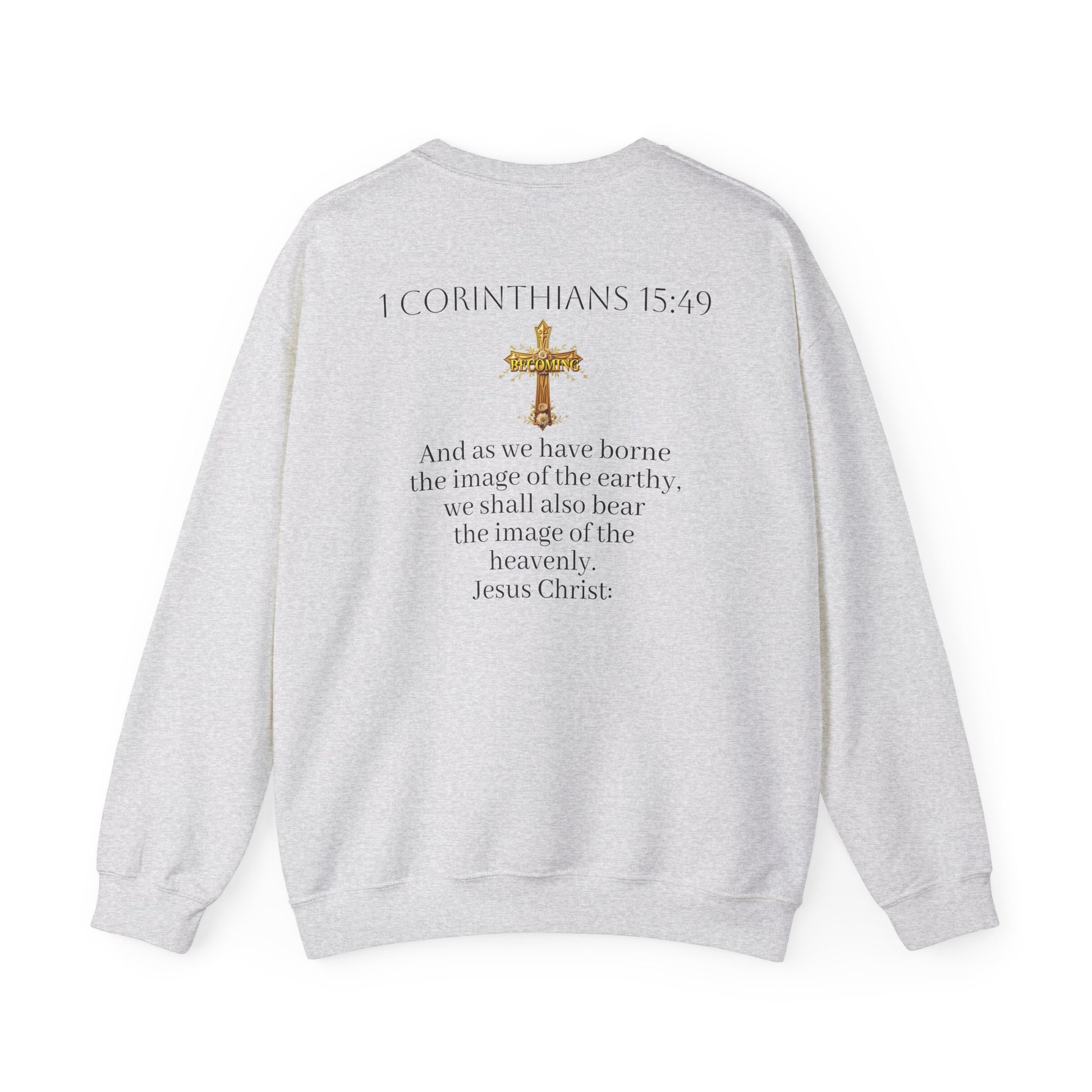 Celebrate your journey of faith in style with this Becoming women’s sweatshirt. The gold cross on the front pairs with 1 Corinthians 15:49 on the back, and the darker lettering stands out against lighter fabrics for a sleek, elegant look. Cozy, versatile, and empowering, it’s a perfect way to wear your faith every day.