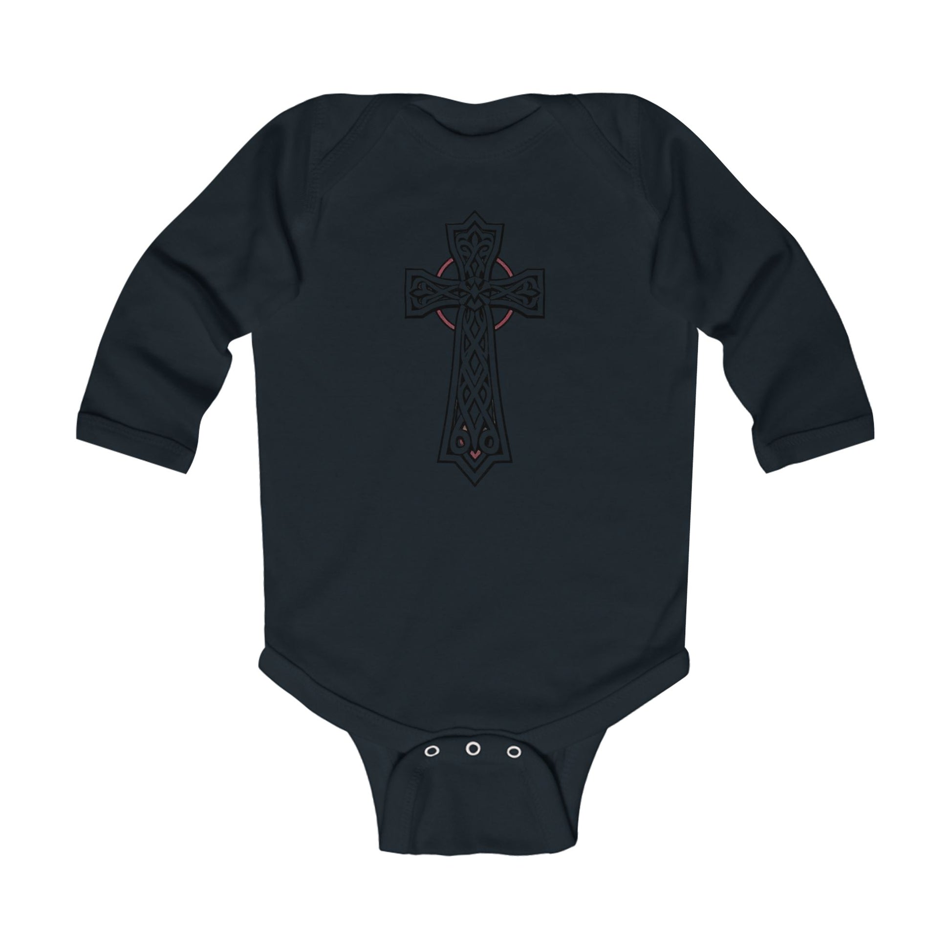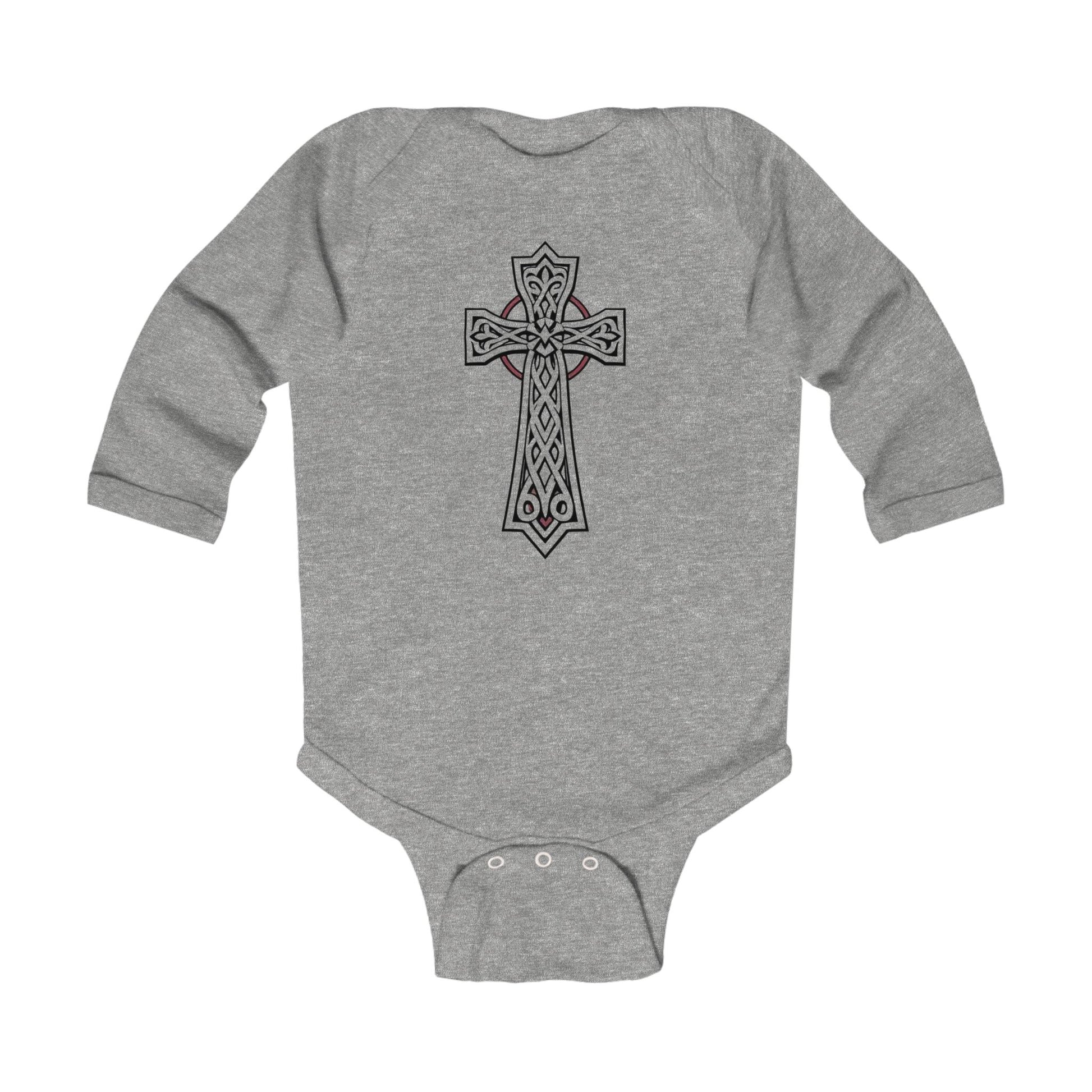 Wrap your little one in heavenly comfort and heritage with our Blessed Beginnings infant onesie. Featuring a beautifully detailed Celtic cross on the front, this soft and breathable long- or short-sleeve onesie blends faith, tradition, and tender love into every stitch. The ancient Celtic design symbolizes eternal life, divine protection, and the unbreakable bond between God and your child. With snap closures for easy changes and premium cotton fabric gentle on delicate skin, this piece is perfect for everyday wear, baby dedications, or as a heartfelt gift. Let their first days be marked by grace, faith, and a legacy of love.