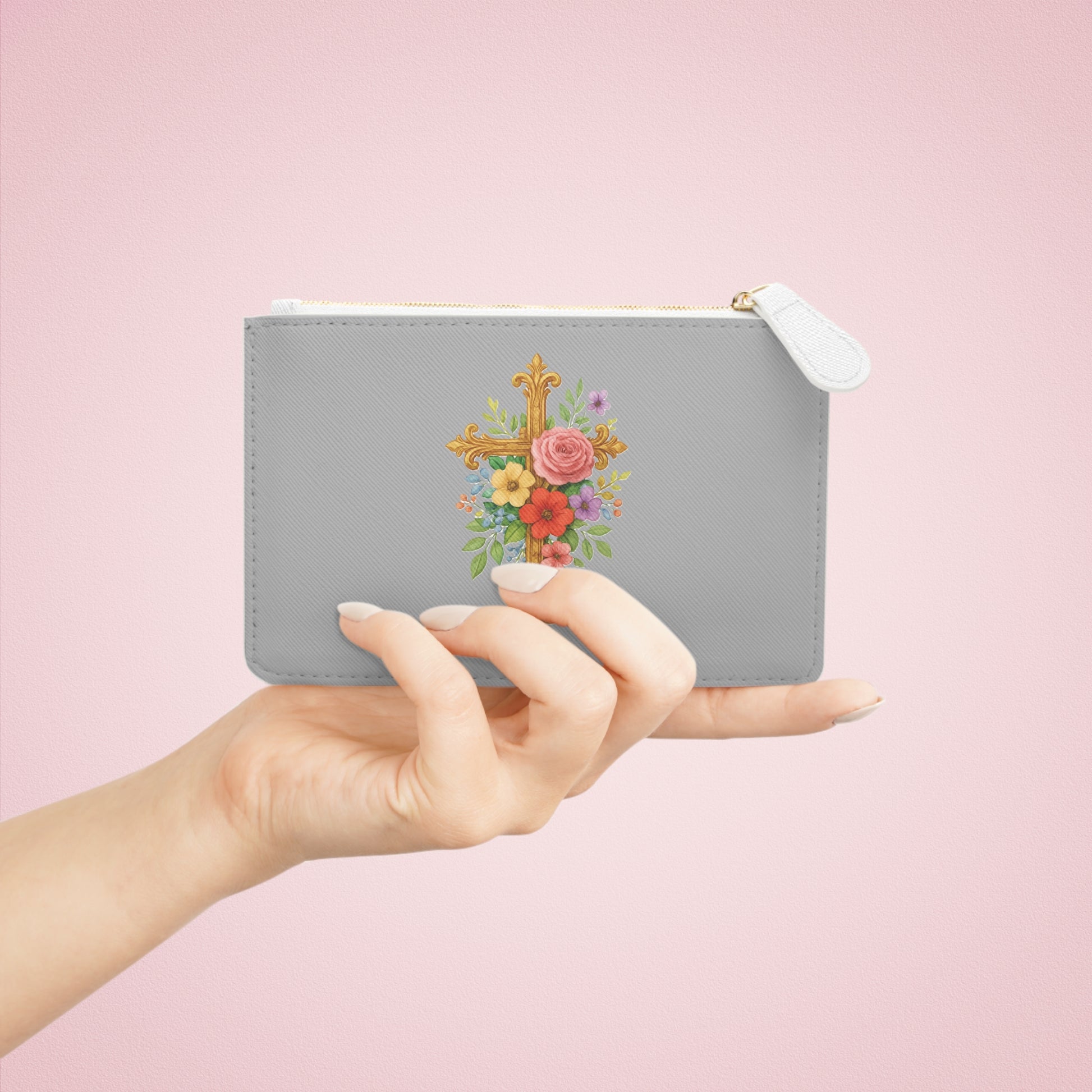 Blooming Faith Black Mini Clutch in Grey – Floral Cross Accent