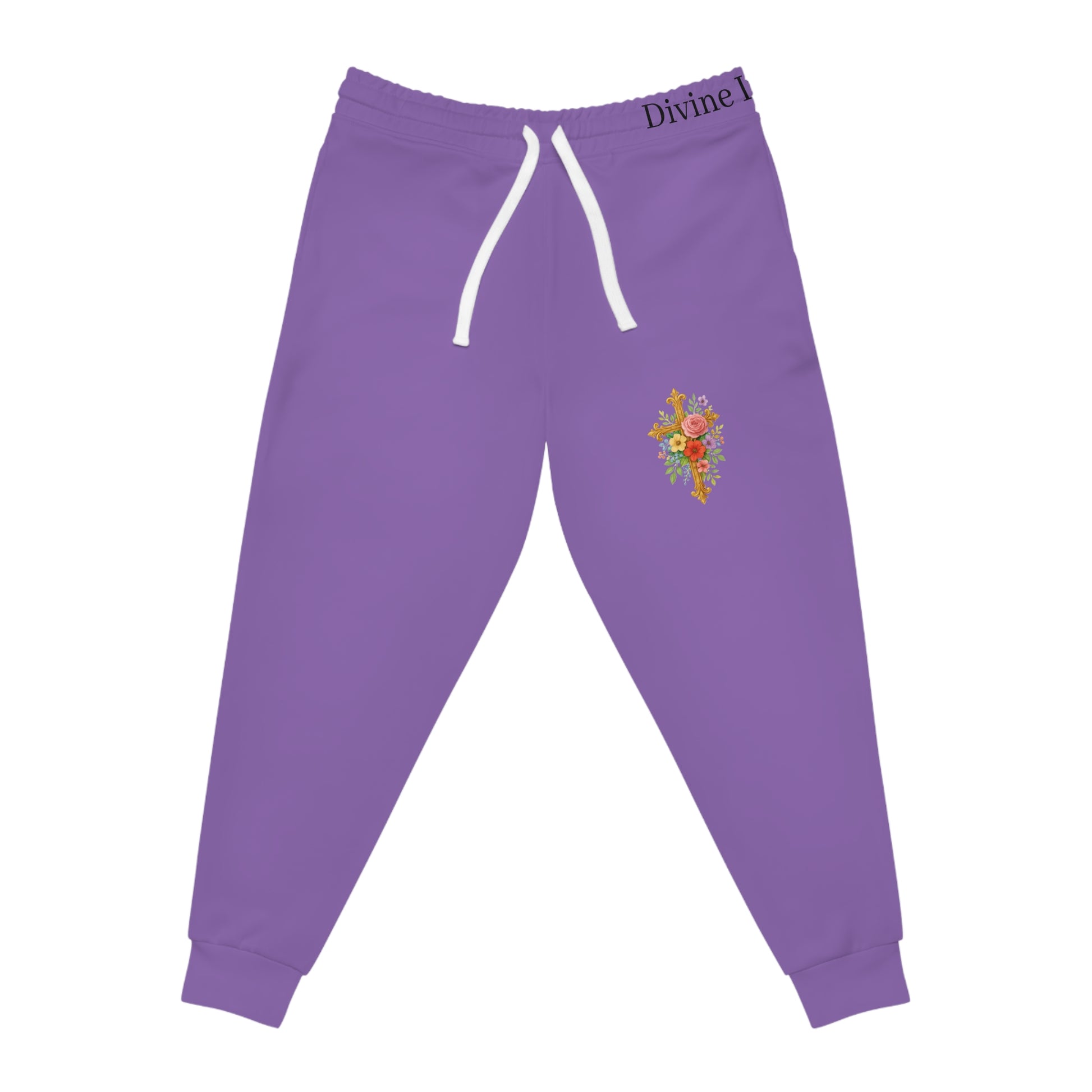Blooming Faith Women's Jogging Pants in Purple with Floral Cross Design