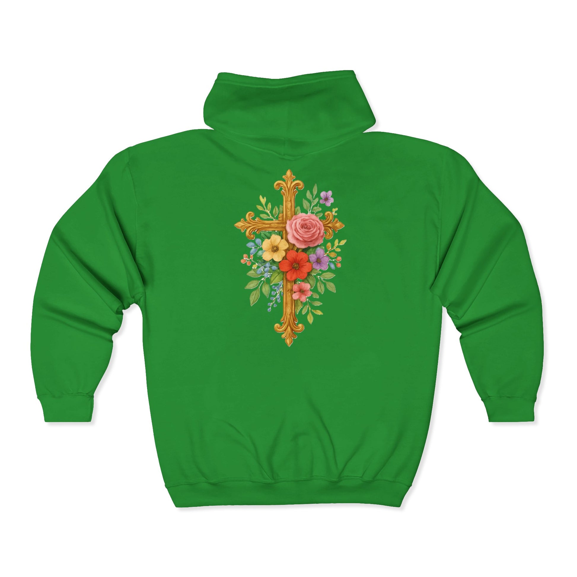 Blooming Faith Women's Zip-Up Hoodie with Floral Cross Design