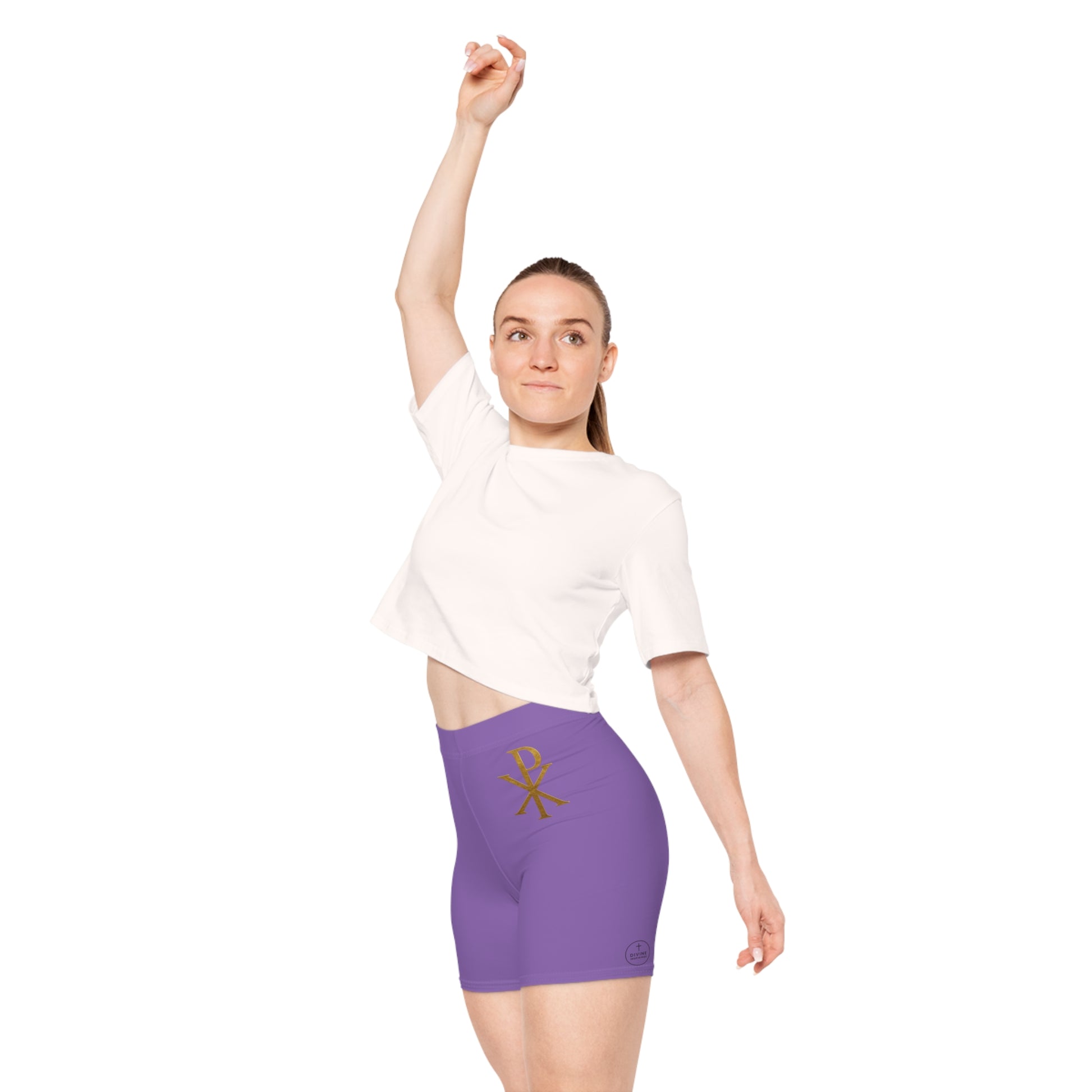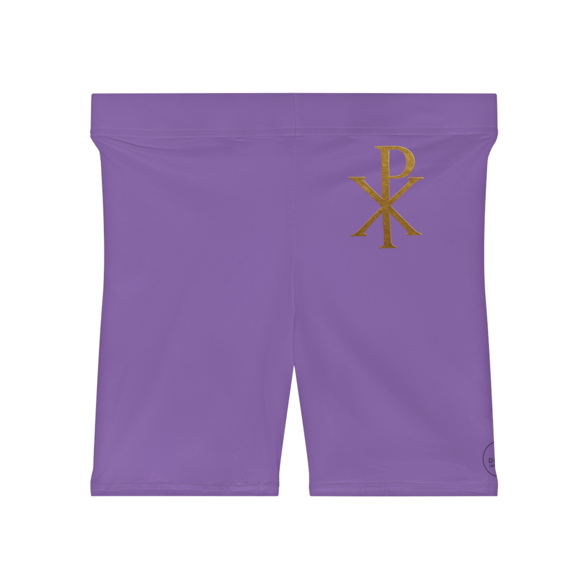 Chi Rho Women’s Biking Christian Shorts in Purple – Strength and Victory in Christ