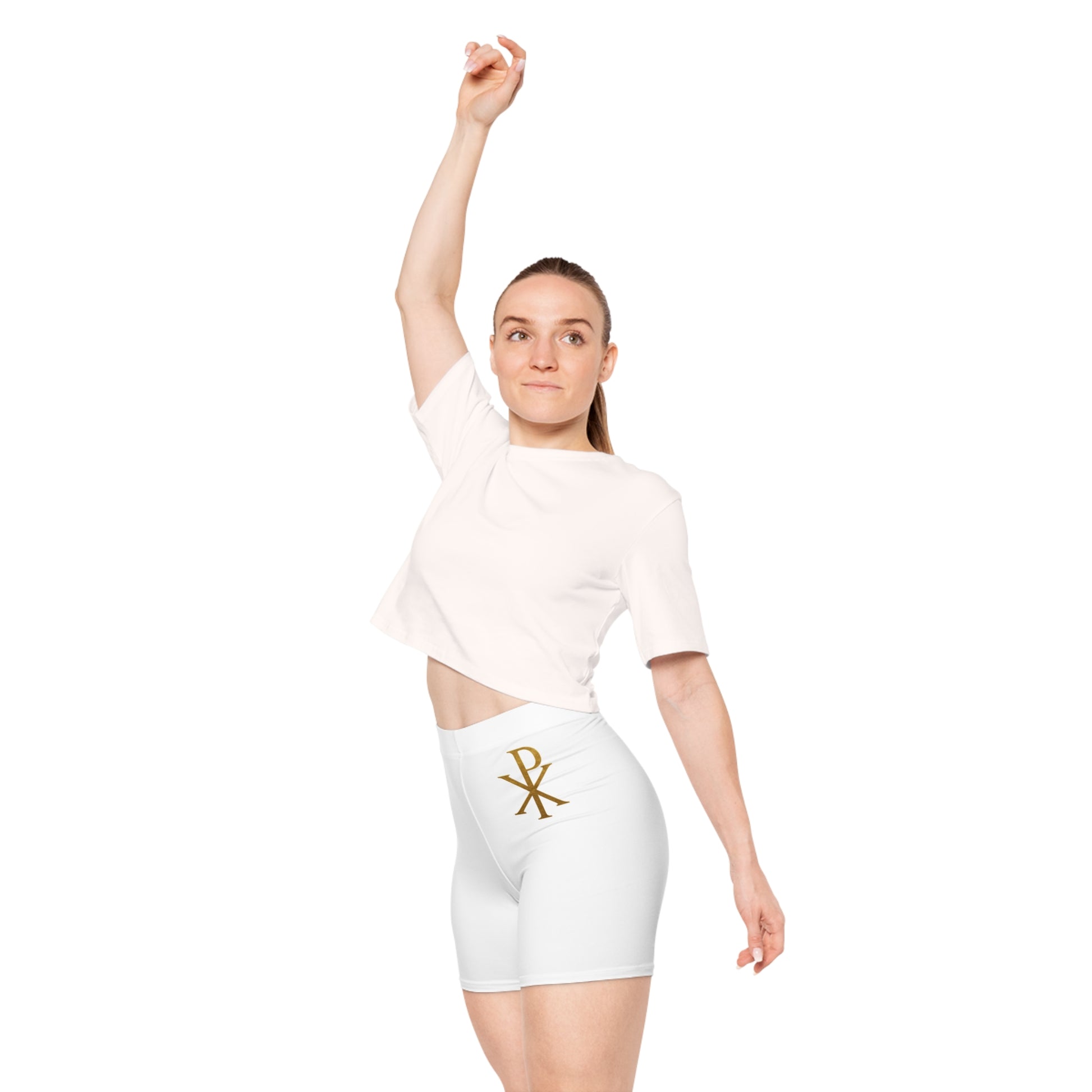 Chi Rho Women’s Biking Christian Shorts – Strength and Victory in Christ