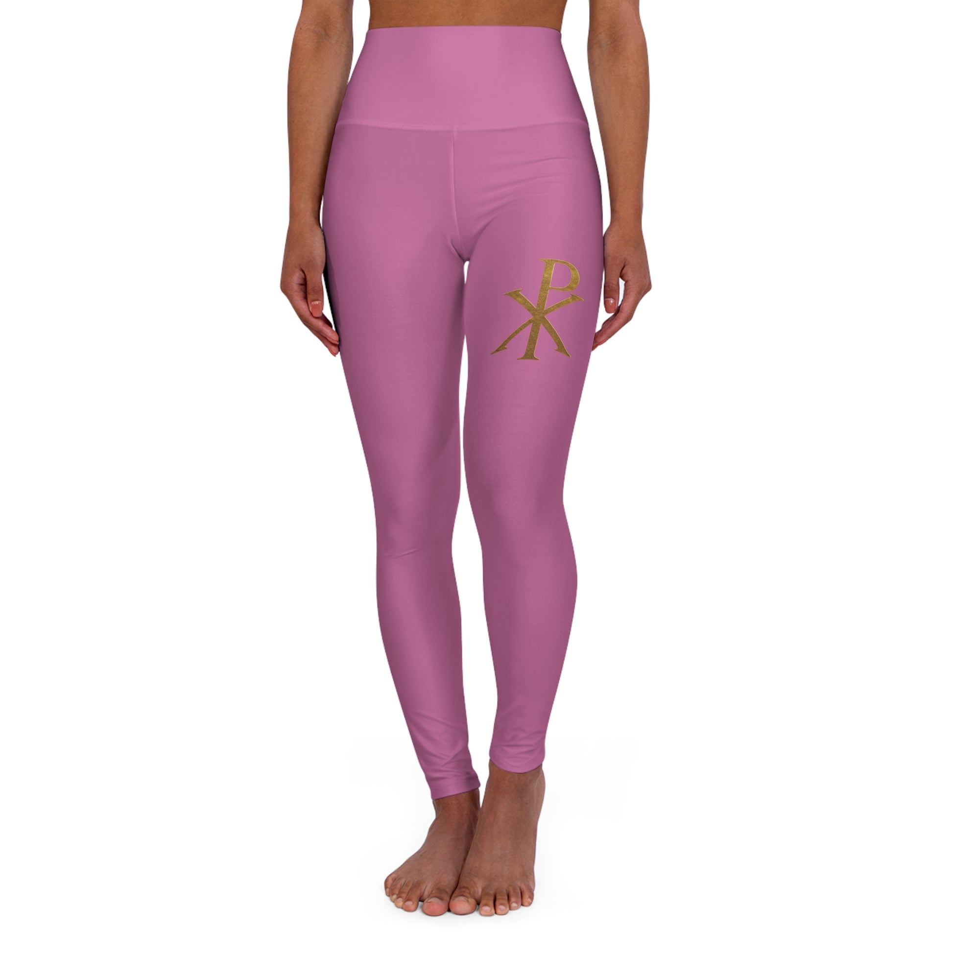 Chi Rho Women’s High-Waisted Yoga Leggings in Pink – Strength and Victory in Christ