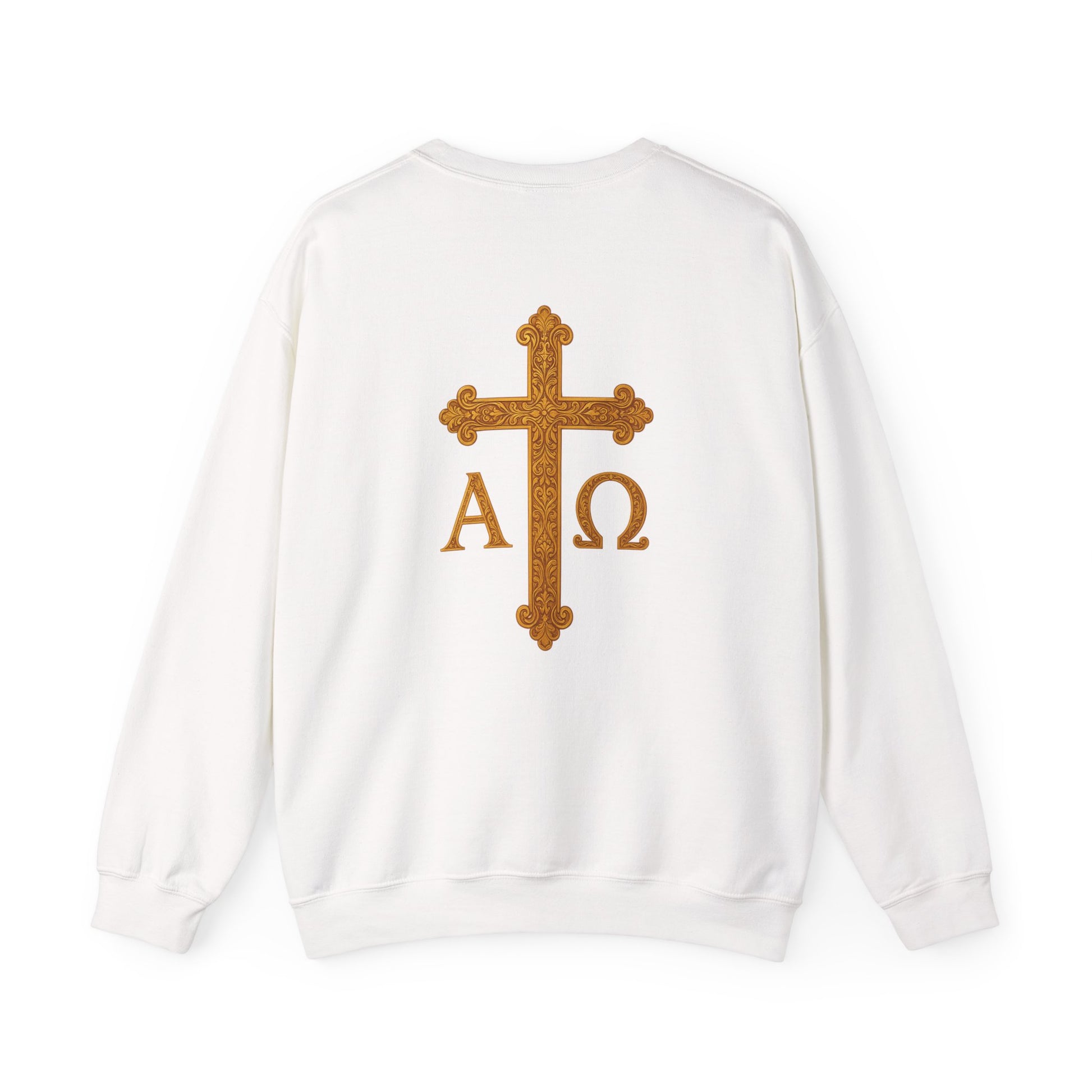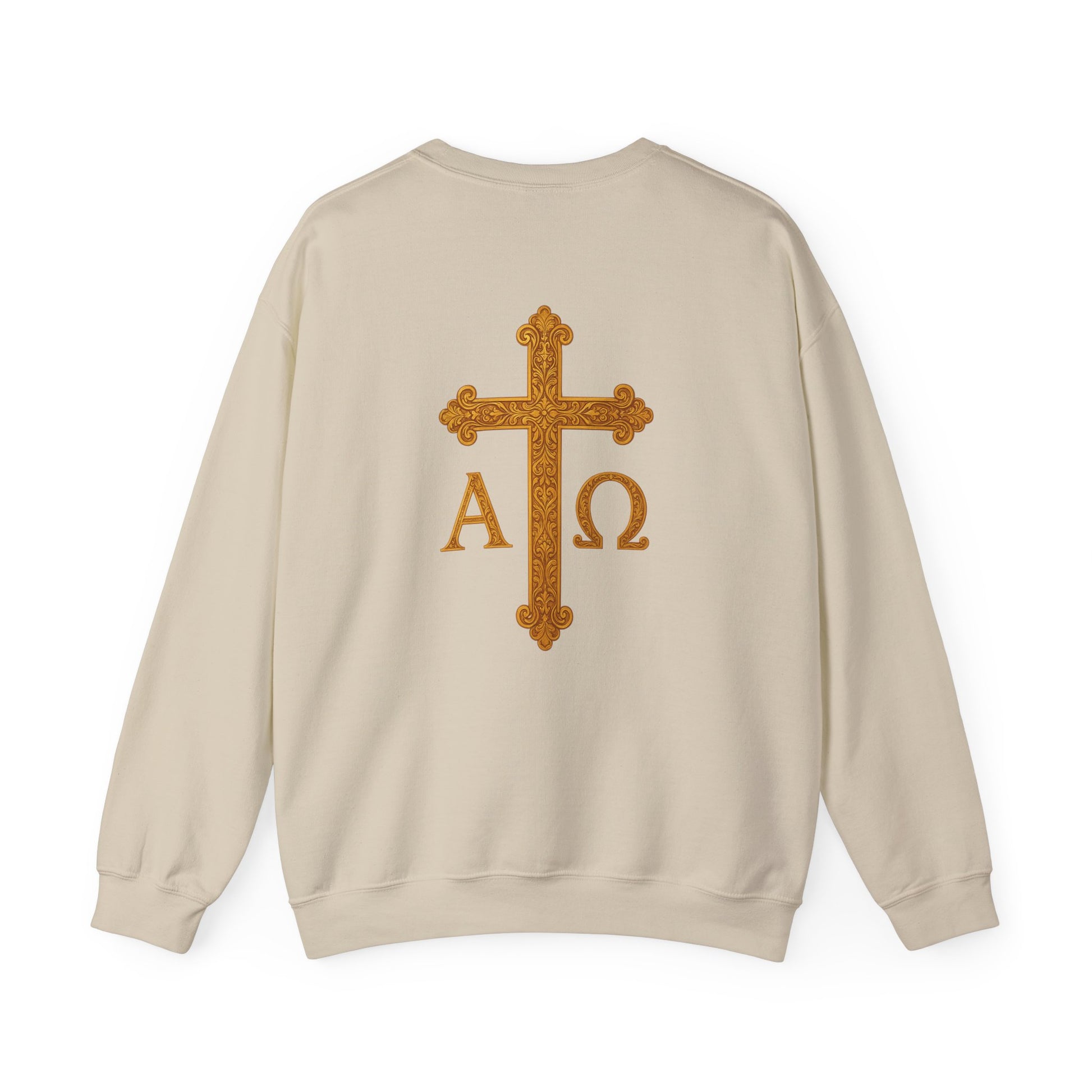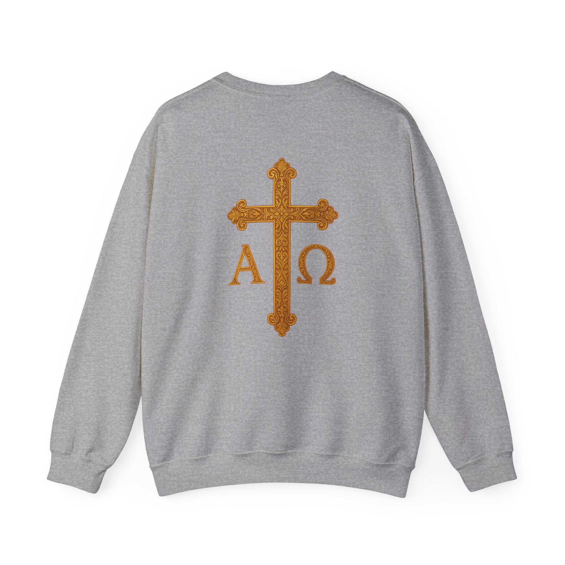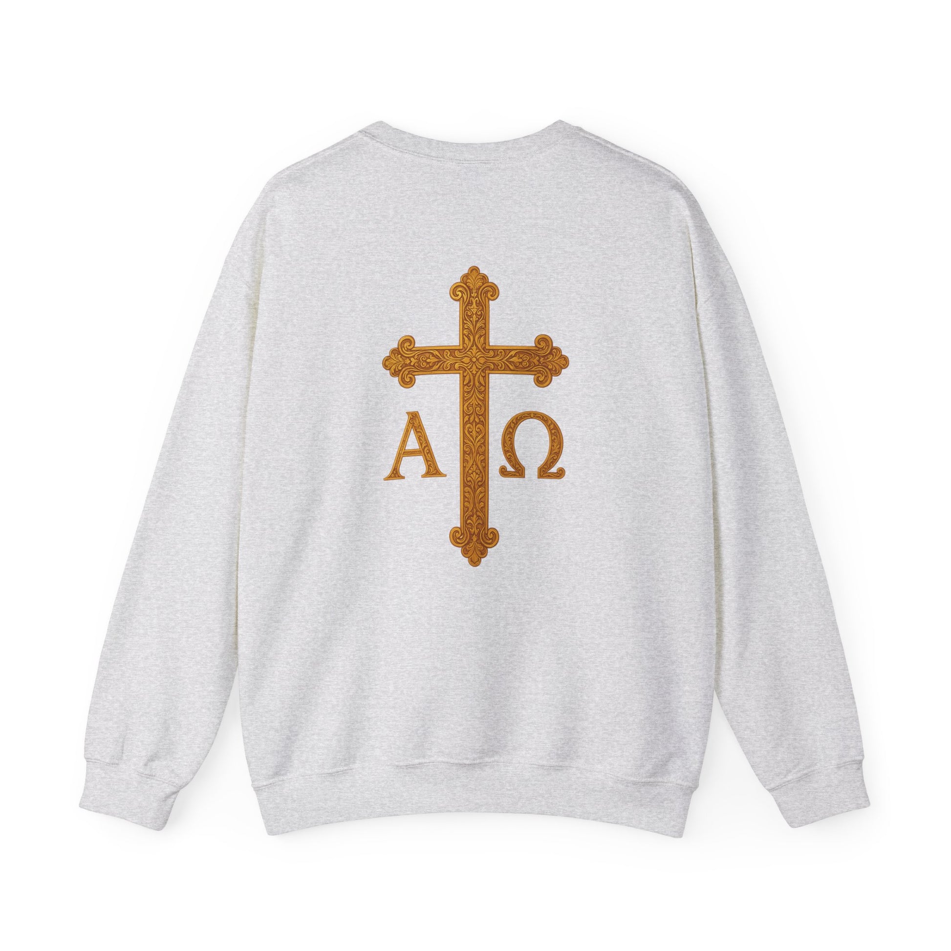 Carry the strength of faith with this men’s Christ is King sweatshirt. A crowned lion commands the front, symbolizing victory and power in Christ. On the back, a radiant golden cross crowned in glory is flanked by Alpha and Omega, the beginning and the end. Warm, versatile, and built to last, this sweatshirt boldly proclaims the eternal kingship of Jesus Christ.