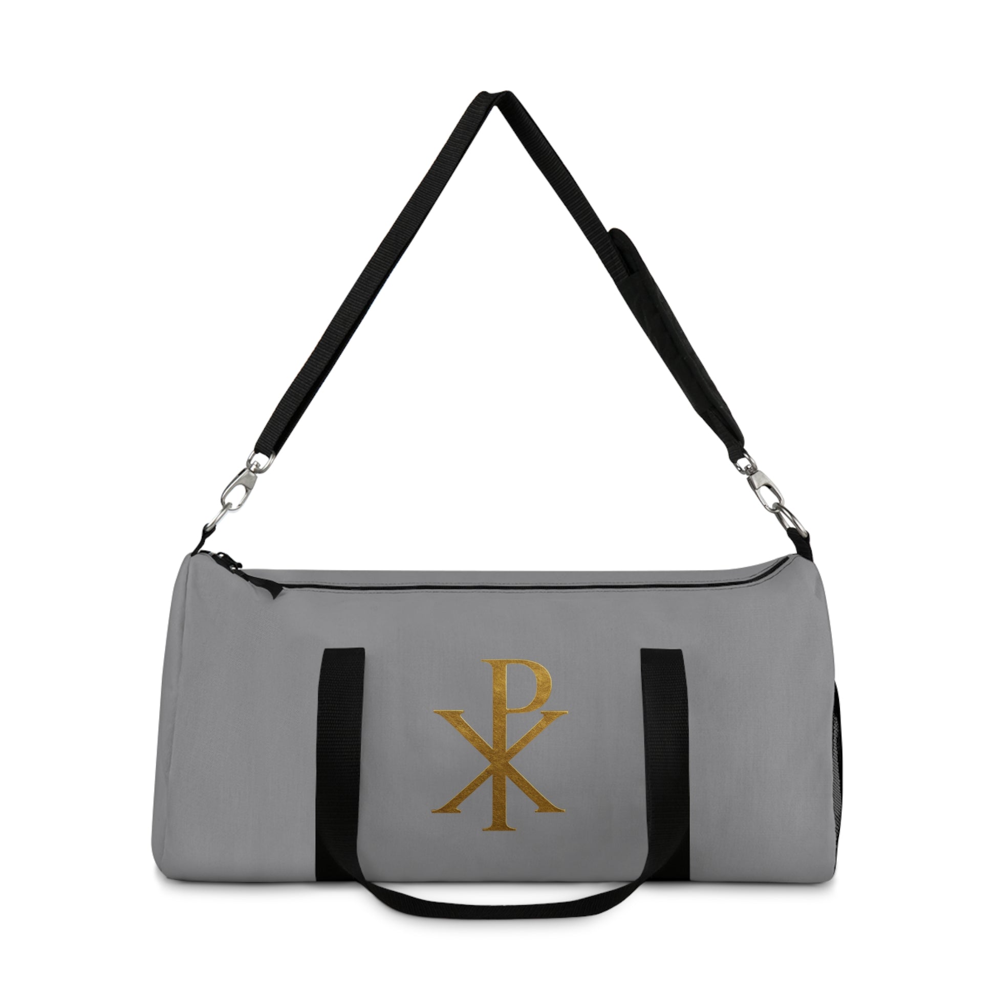 Christ’s Victory Duffle Bag in Grey – Chi Rho Symbol