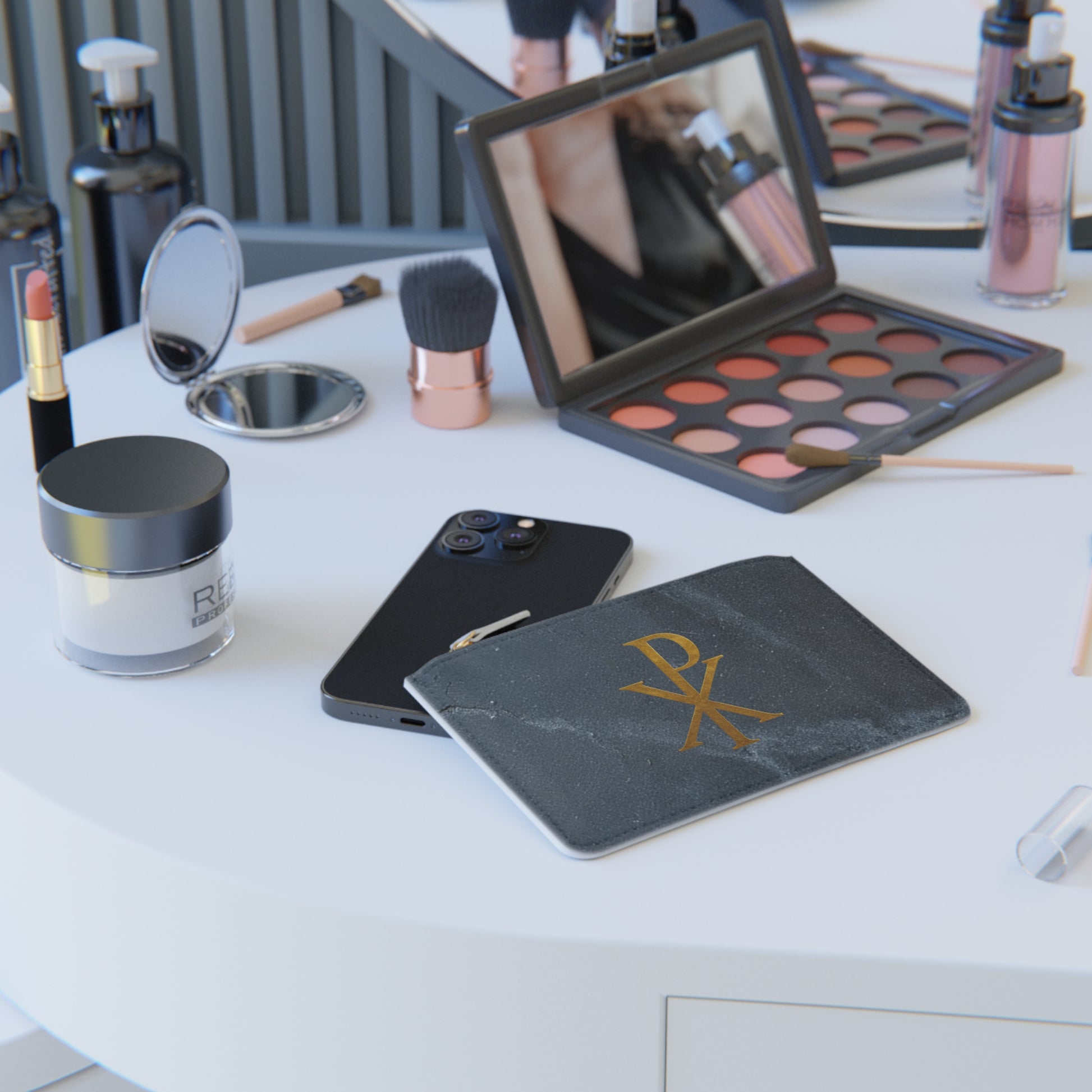 “Divine Seal” | Women’s Mini Clutch in Granite – Gold Chi Rho Elegance