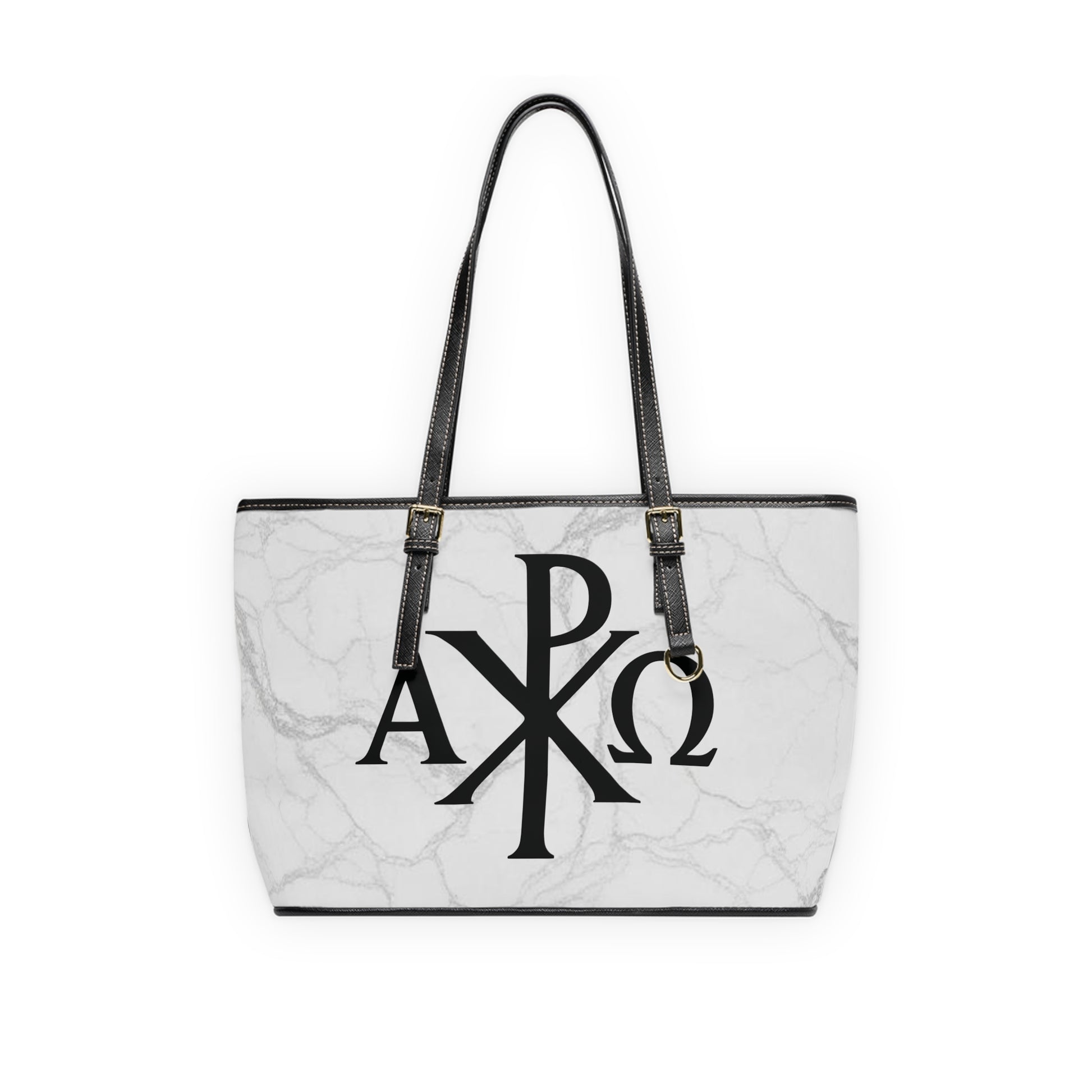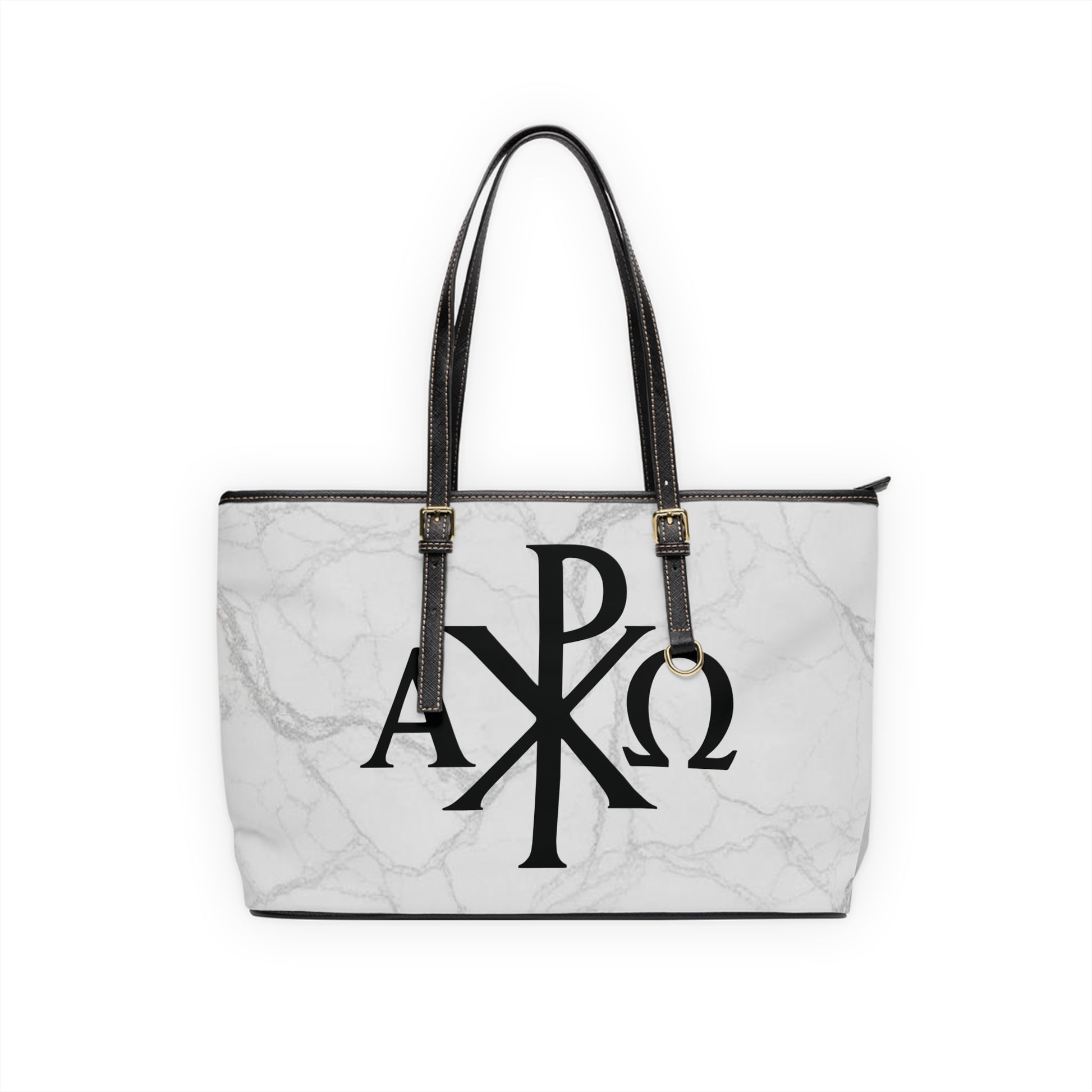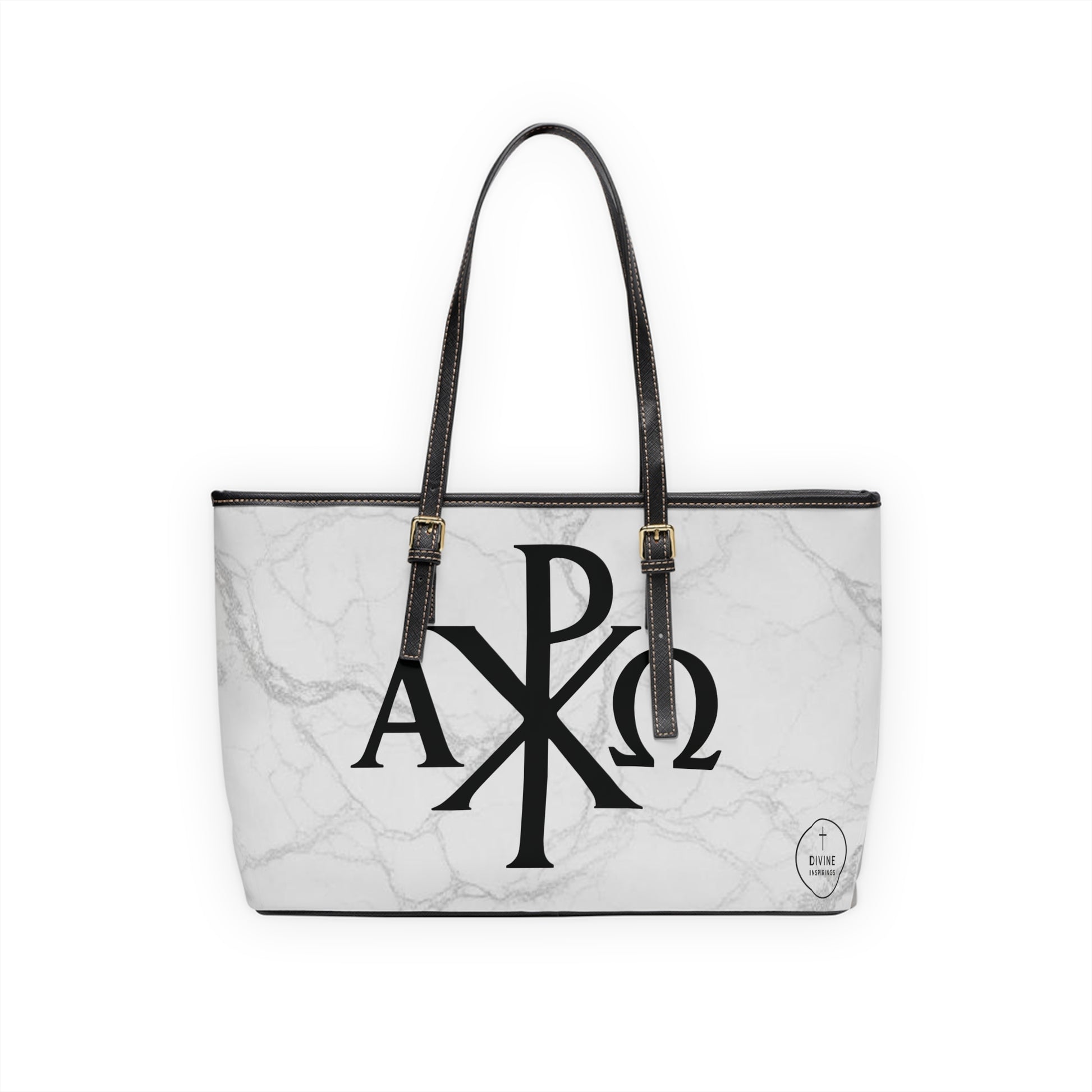 Carry timeless faith with the Eternal Grace PU Leather Shoulder Bag, featuring a striking marble finish and a Chi Rho flanked by Alpha and Omega. This design is a powerful reminder of God’s eternal presence and guidance, inspiring confidence, reverence, and grace in every step of your day.