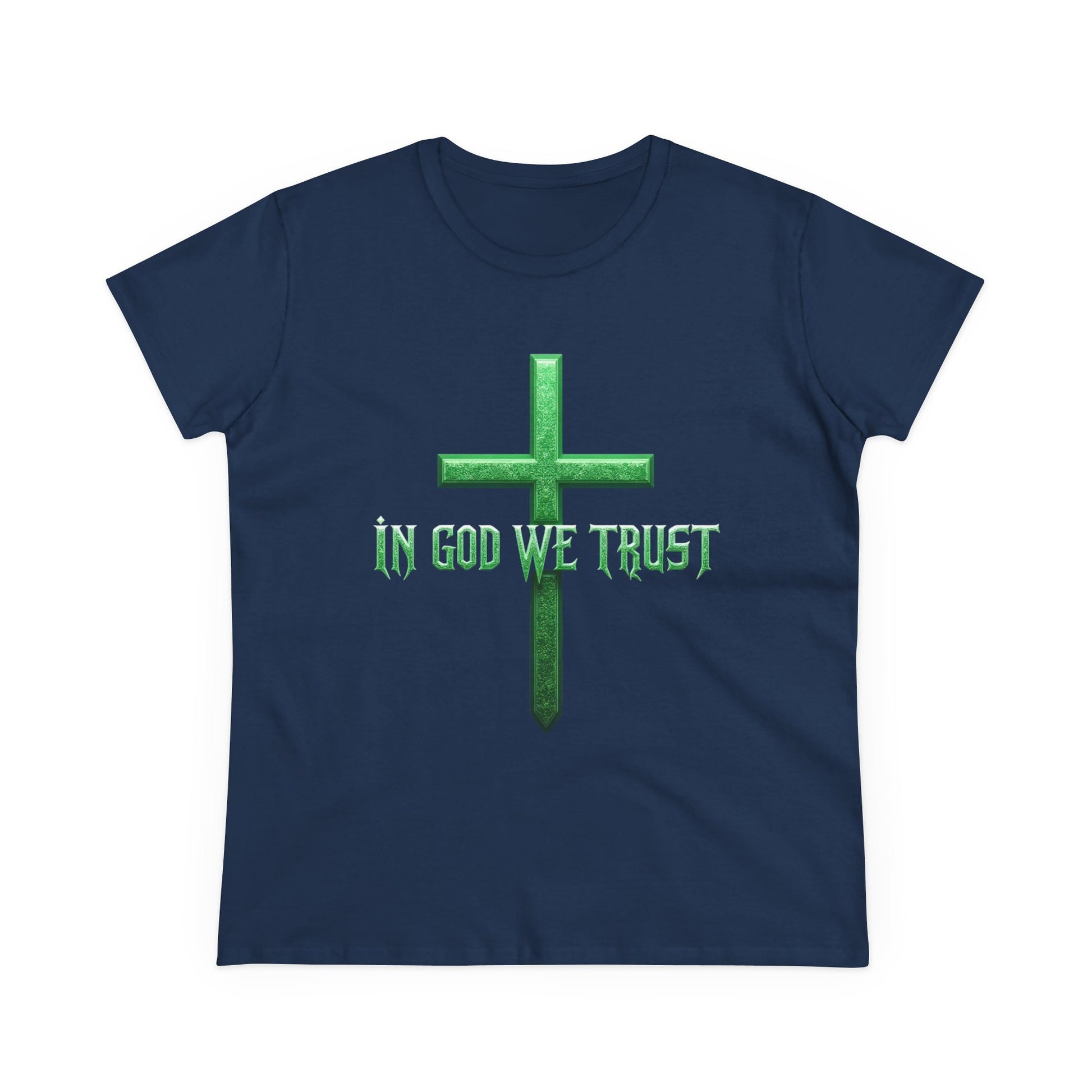 Faith Anchored – “In God We Trust” Women’s Christian Tee with Cross