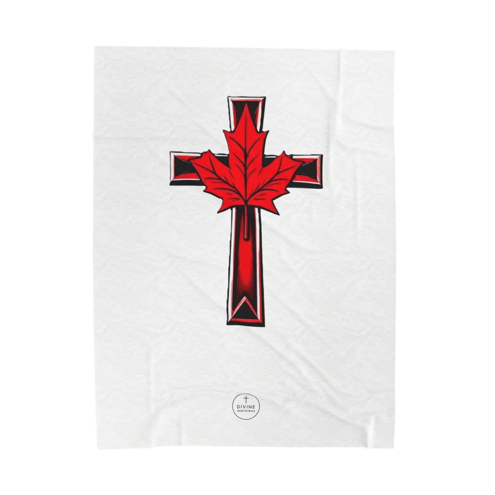 Celebrate faith and heritage with the Faith at Heart: Canadian Maple Cross Plush Velveteen Blanket. Luxurious white velveteen forms the perfect backdrop for a bold red cross centered over a Canadian maple leaf, symbolizing faith at the heart of the nation. Ideal for prayer, devotionals, or adding a spiritual touch to any space, this blanket is a cozy reminder of God’s blessings and a meaningful way to express both faith and Canadian pride. A thoughtful gift for loved ones near and far.