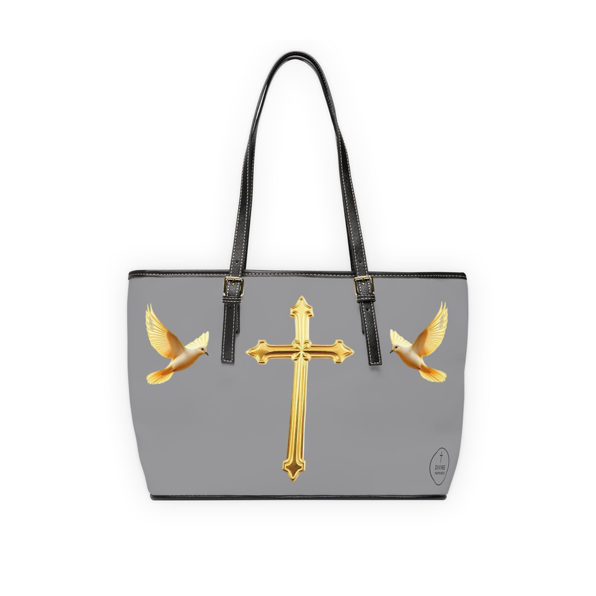 Grace and strength unite in this stunning black PU leather shoulder bag adorned with a golden cross flanked by two soaring doves. The cross shines as a symbol of divine love and redemption, while the doves embody peace, purity, and the Holy Spirit. Crafted for those who walk boldly in faith, this bag is both sophisticated and meaningful — perfect for church, daily wear, or as a heartfelt gift of inspiration. Its durable PU leather and elegant finish make it as enduring as the faith it represents. Carry peace. Carry purpose. Carry Christ.