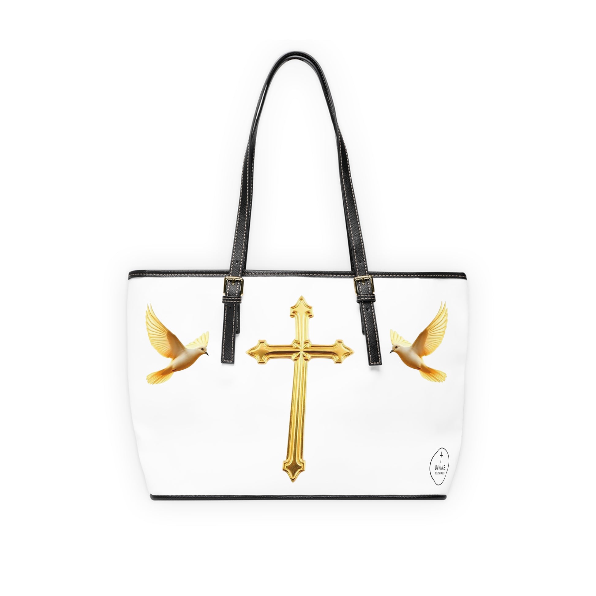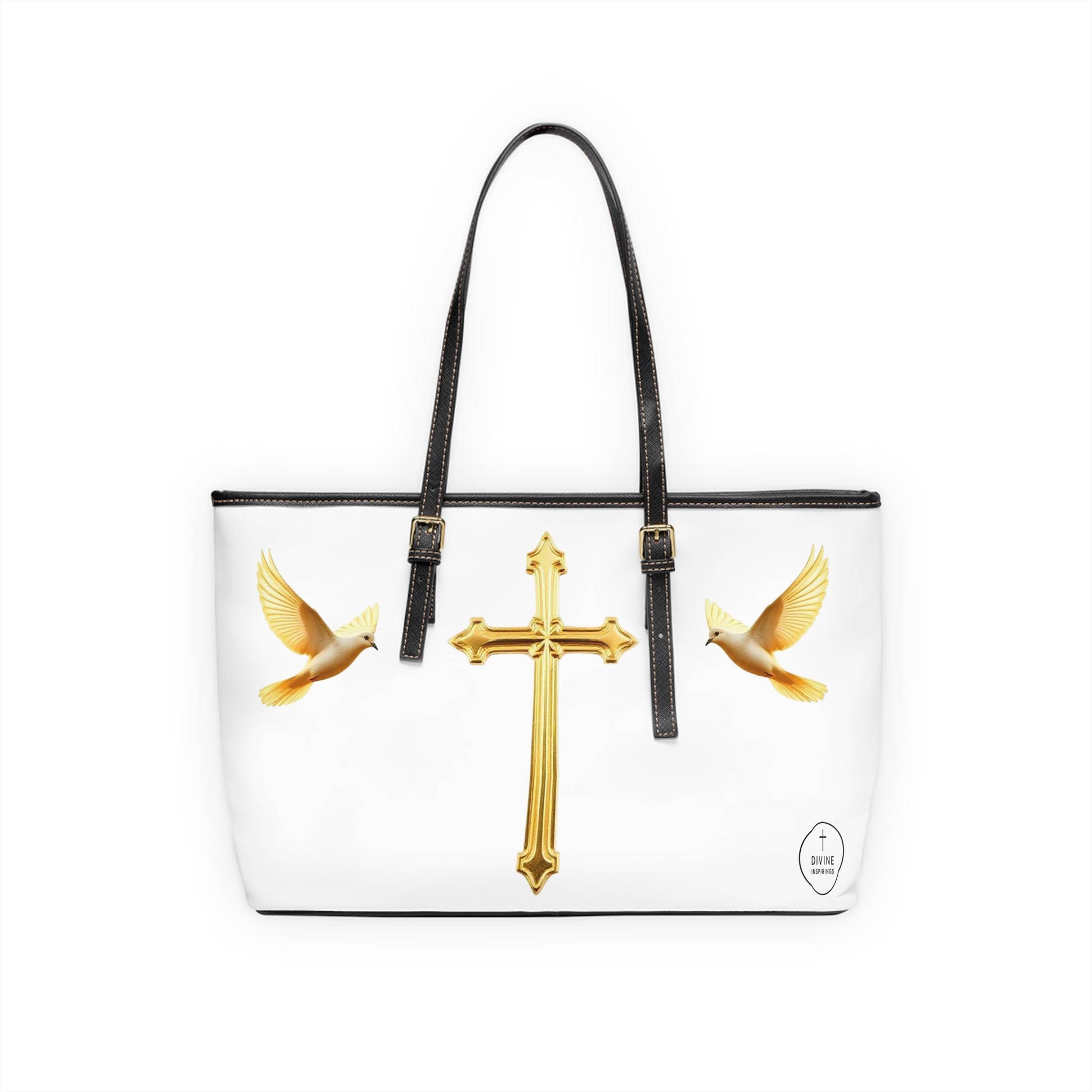 Grace and strength unite in this stunning black PU leather shoulder bag adorned with a golden cross flanked by two soaring doves. The cross shines as a symbol of divine love and redemption, while the doves embody peace, purity, and the Holy Spirit. Crafted for those who walk boldly in faith, this bag is both sophisticated and meaningful — perfect for church, daily wear, or as a heartfelt gift of inspiration. Its durable PU leather and elegant finish make it as enduring as the faith it represents. Carry peace. Carry purpose. Carry Christ.