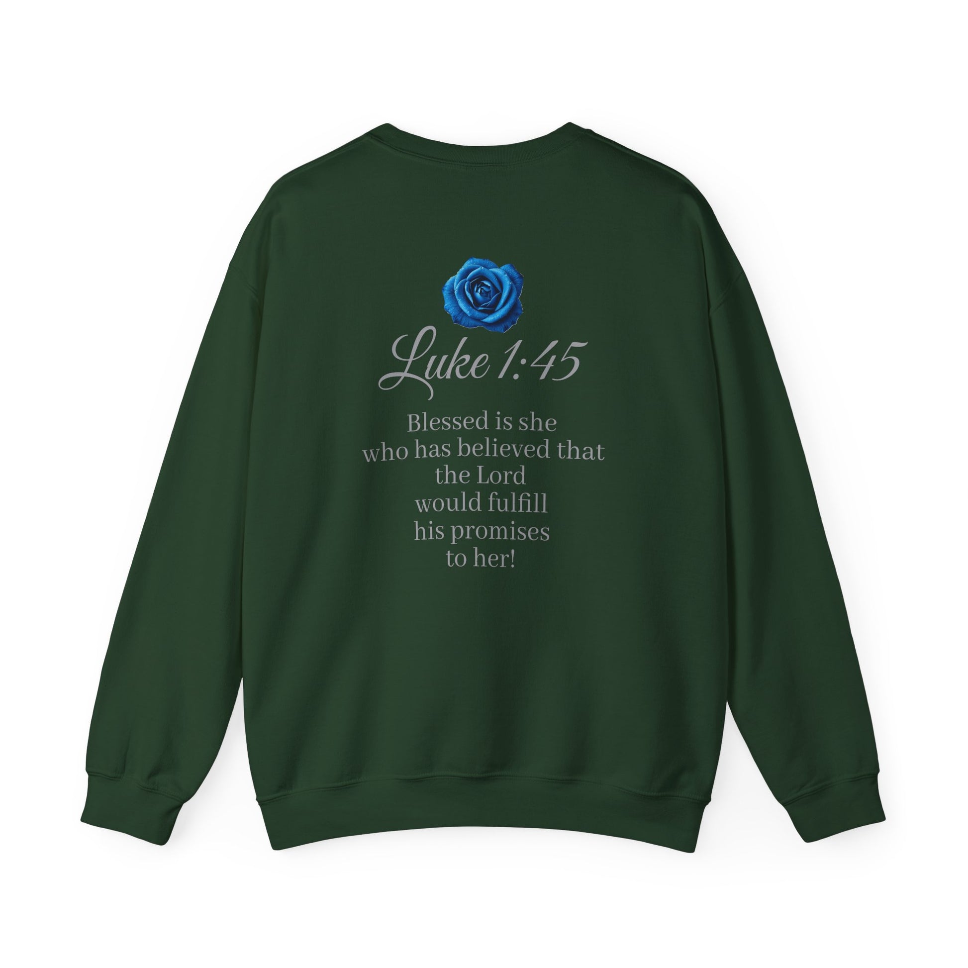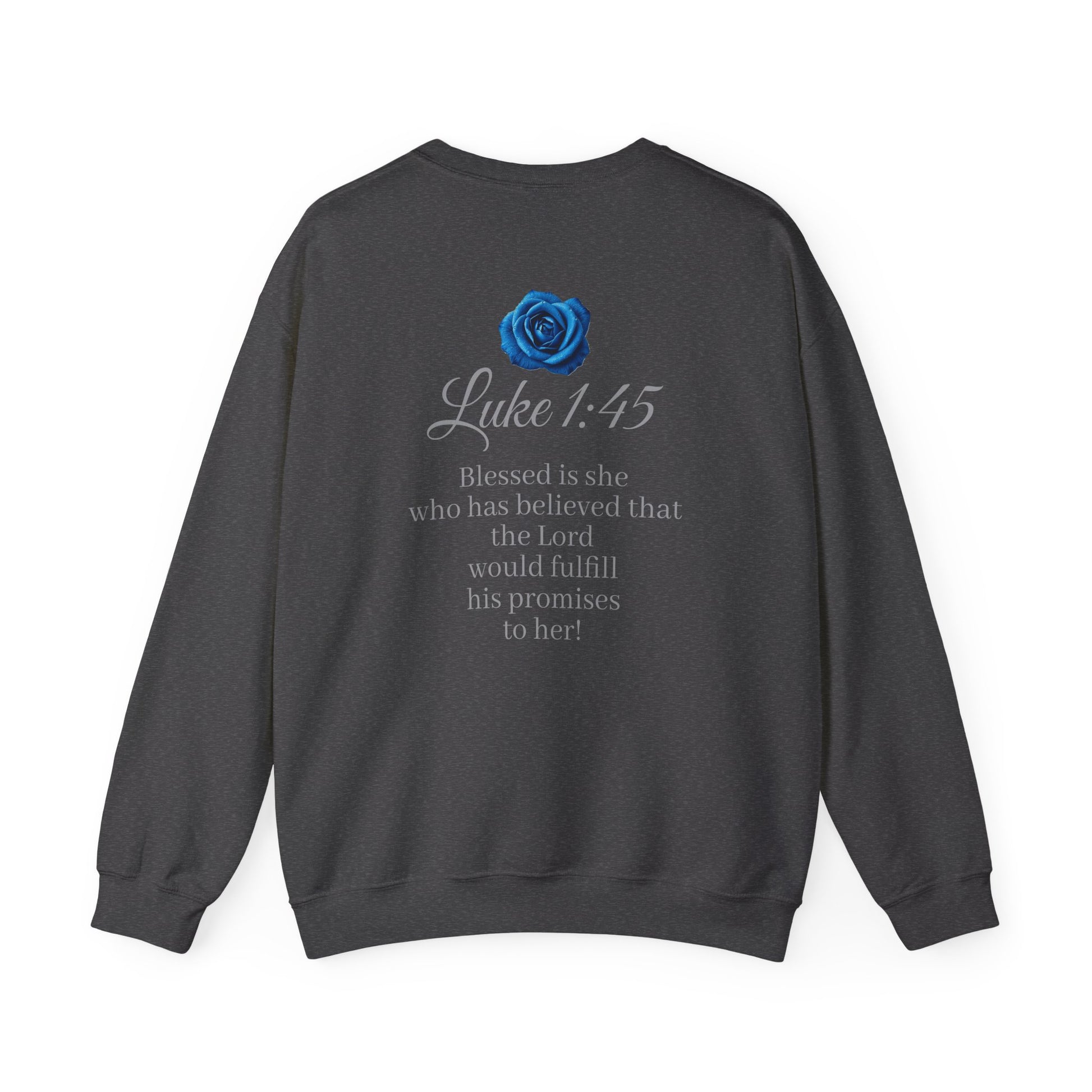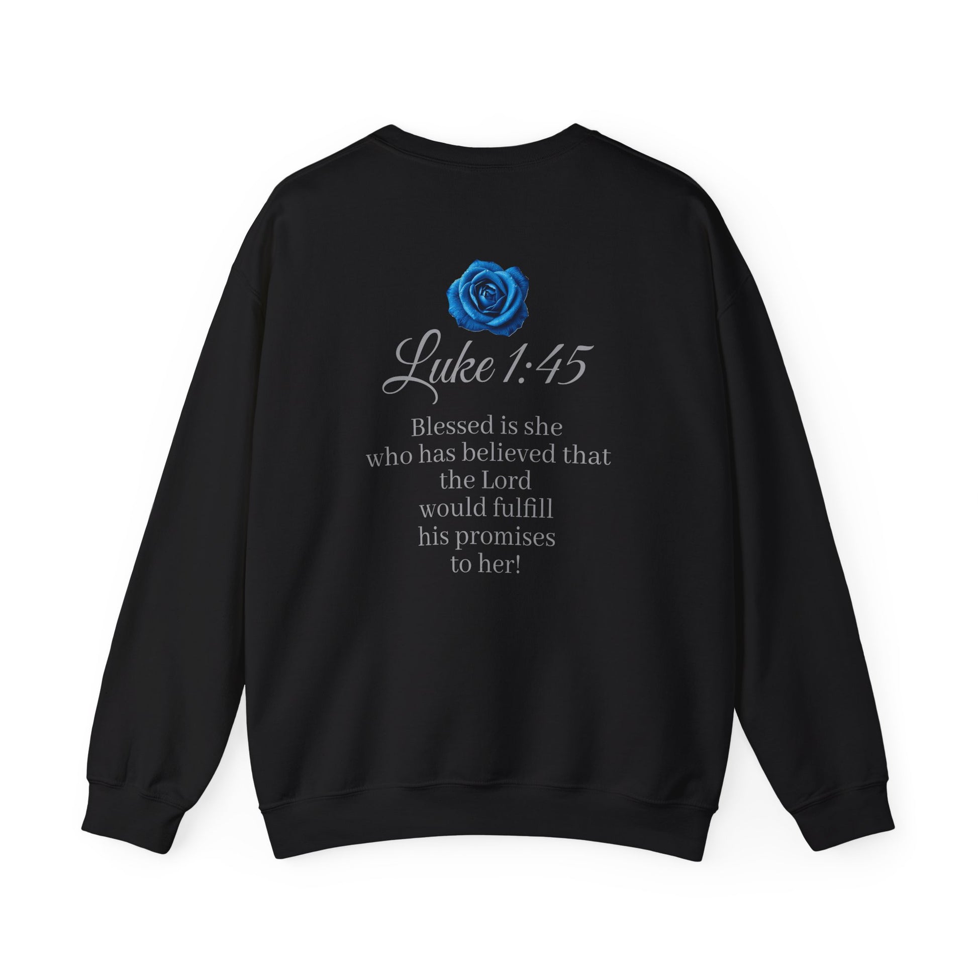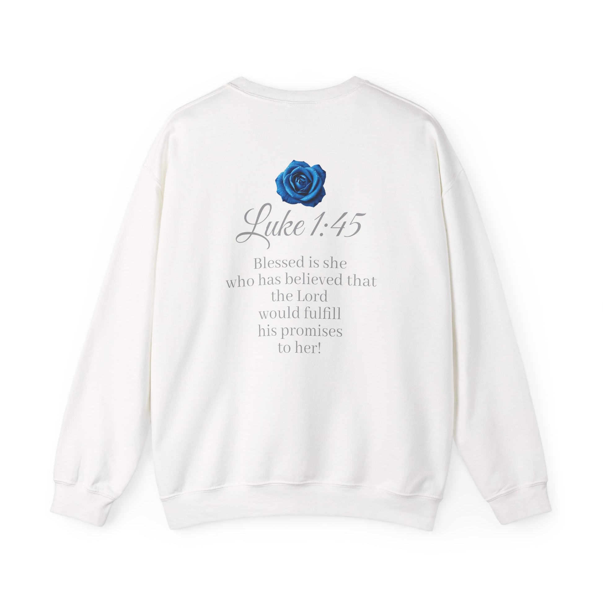 Wear your faith with grace and confidence. This women’s sweatshirt displays “FAITH” boldly on the front, with Luke 1:45 on the back: “Blessed is she who has believed that the Lord would fulfill his promises to her!” Perfect for women who walk in God’s promises, carry hope in their hearts, and want a daily reminder of His faithfulness. Comfortable, meaningful, and inspiring—this sweatshirt is more than clothing, it’s a declaration of belief.