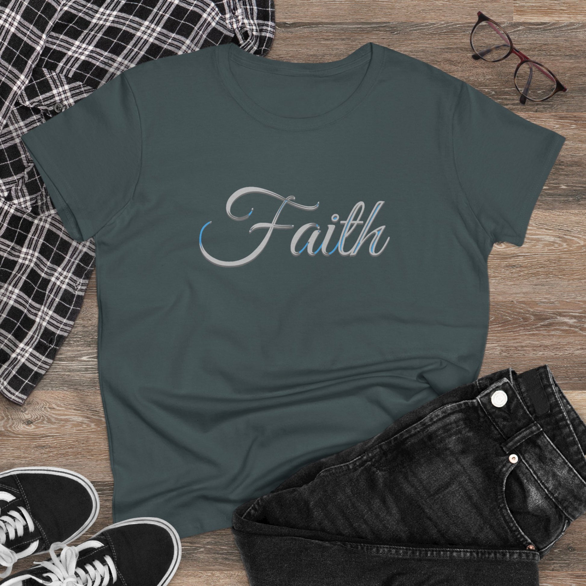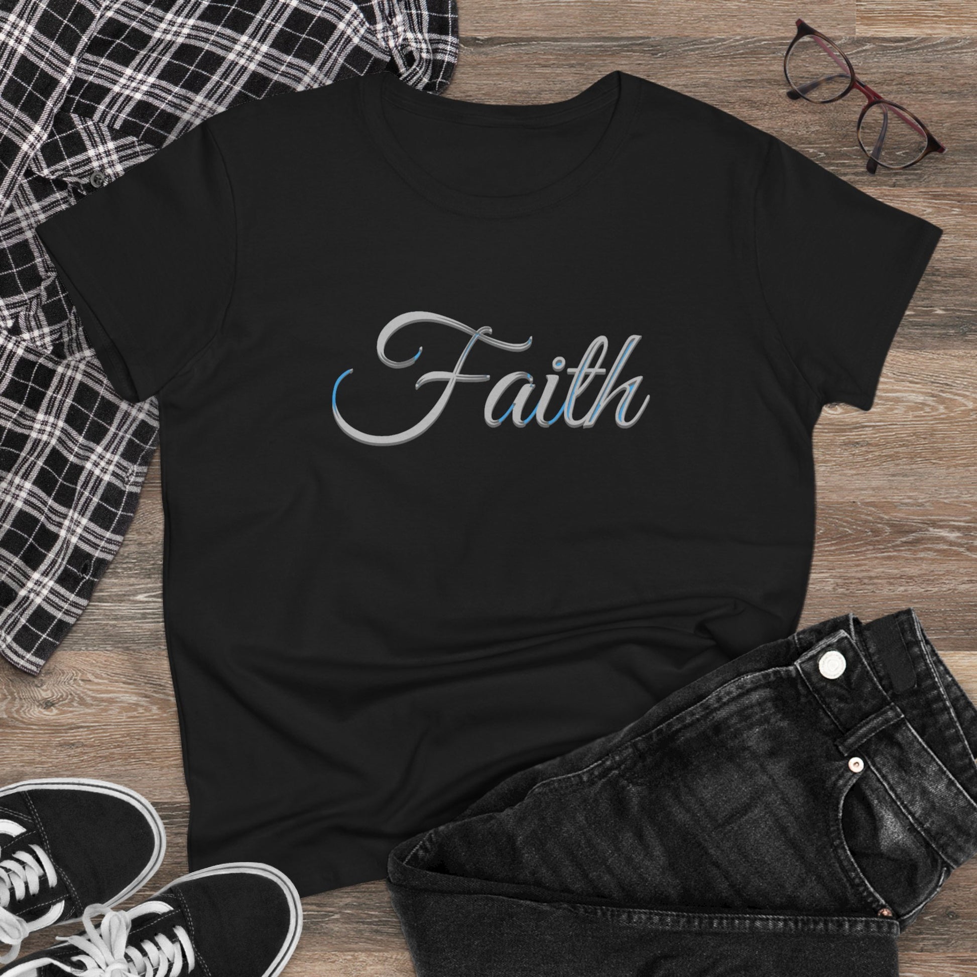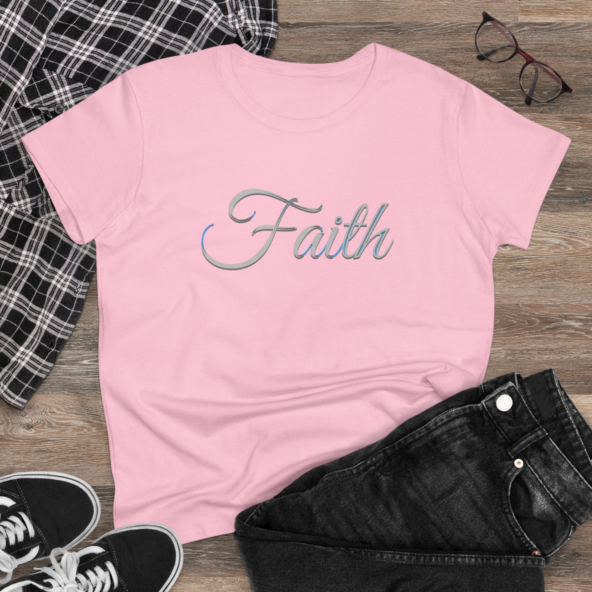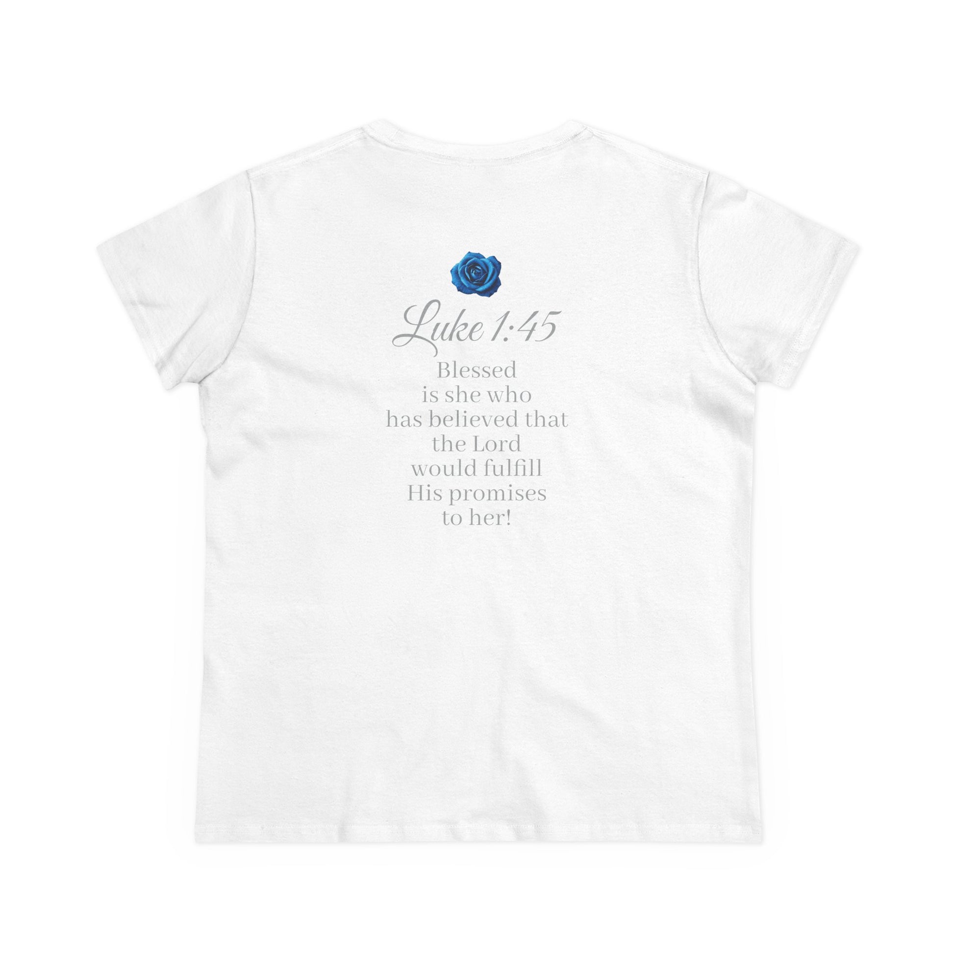 Bold, beautiful, and full of hope. This women's tee features the word “FAITH” on the front, paired with the empowering Scripture Luke 1:45: "Blessed is she who has believed that the Lord would fulfill his promises to her!" Perfect for women who carry trust in their hearts, embrace God’s promises, and walk confidently in their faith. Wear it as a daily reminder of God’s faithfulness and your inner strength.