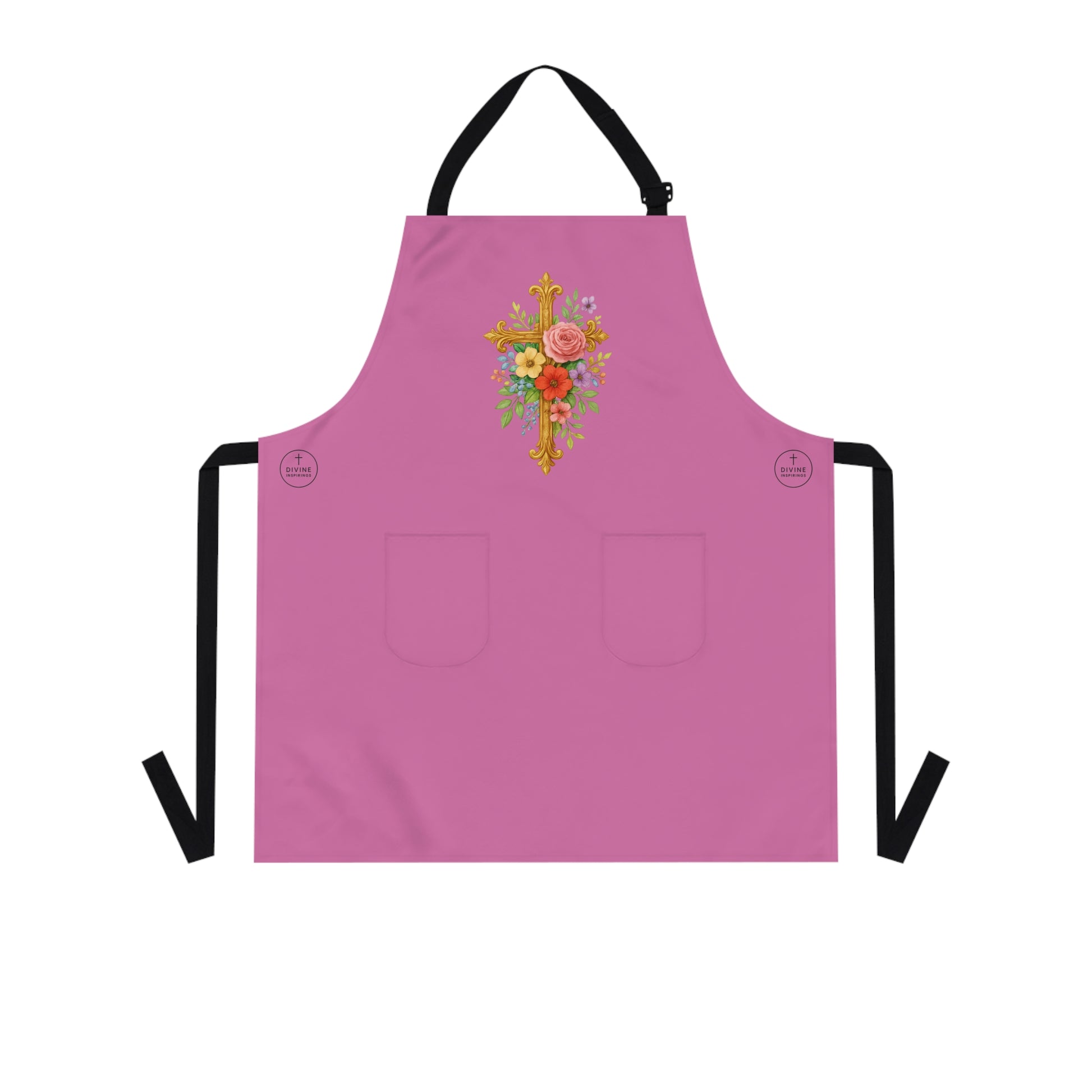 Floral Cross Christian Kitchen Apron in Pink – Faith & Beauty in Every Meal