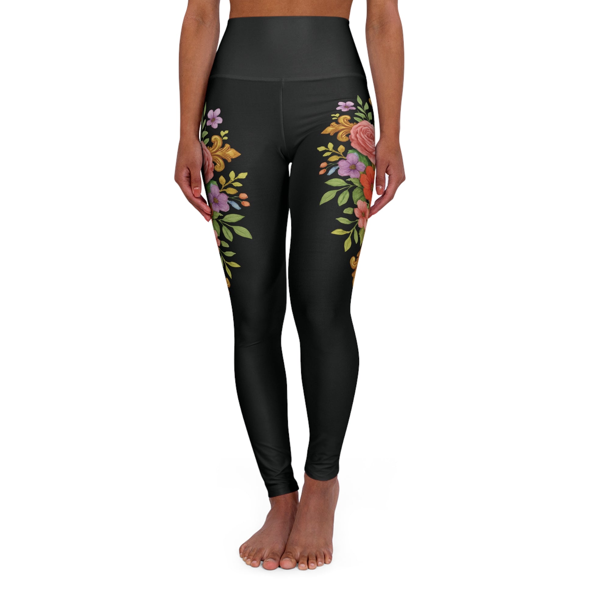 Floral Cross Graceful Fit High-Waisted Leggings in Black - Christian Women's Apparel