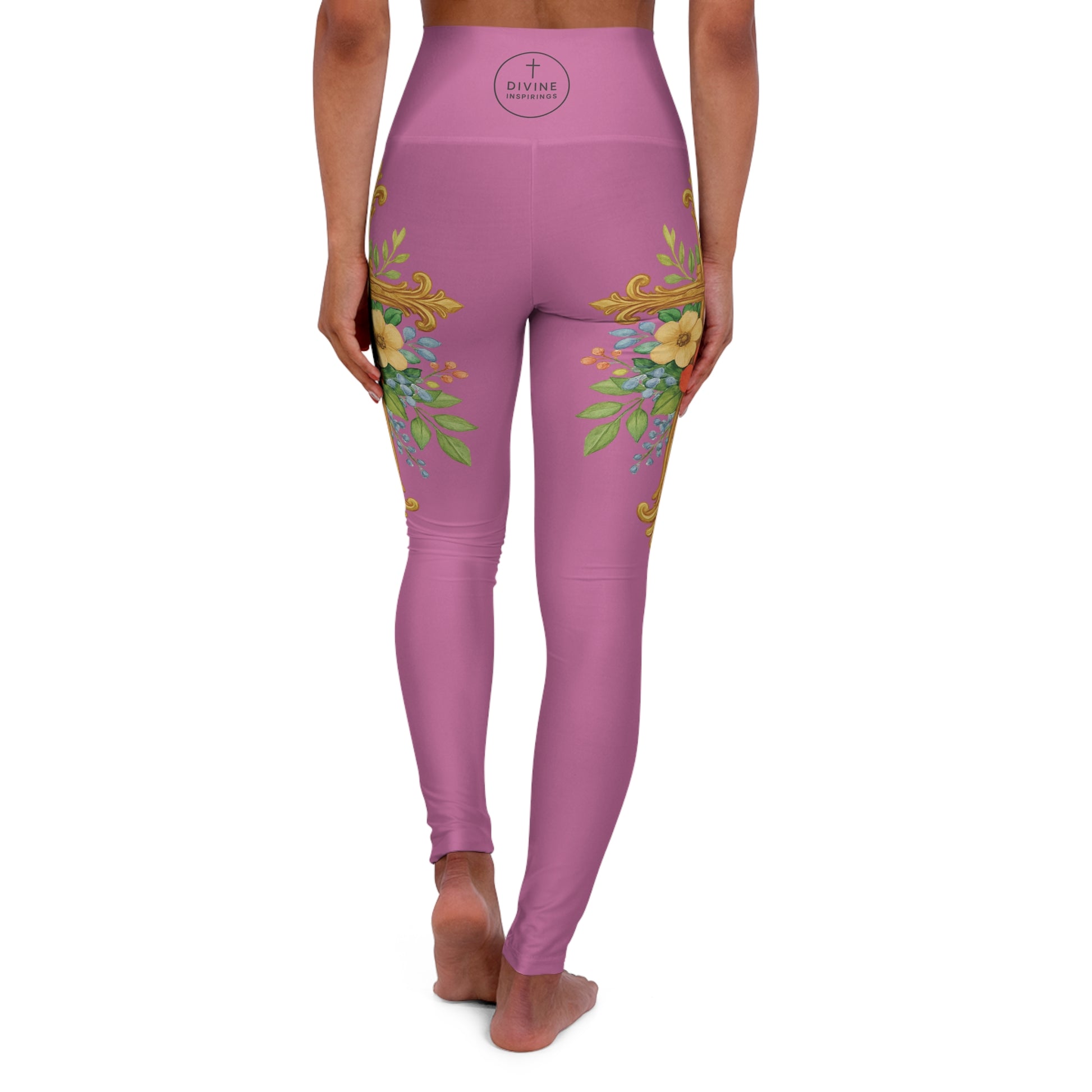 Floral Cross Graceful Fit High-Waisted Leggings in Light Pink - Christian Women's Apparel