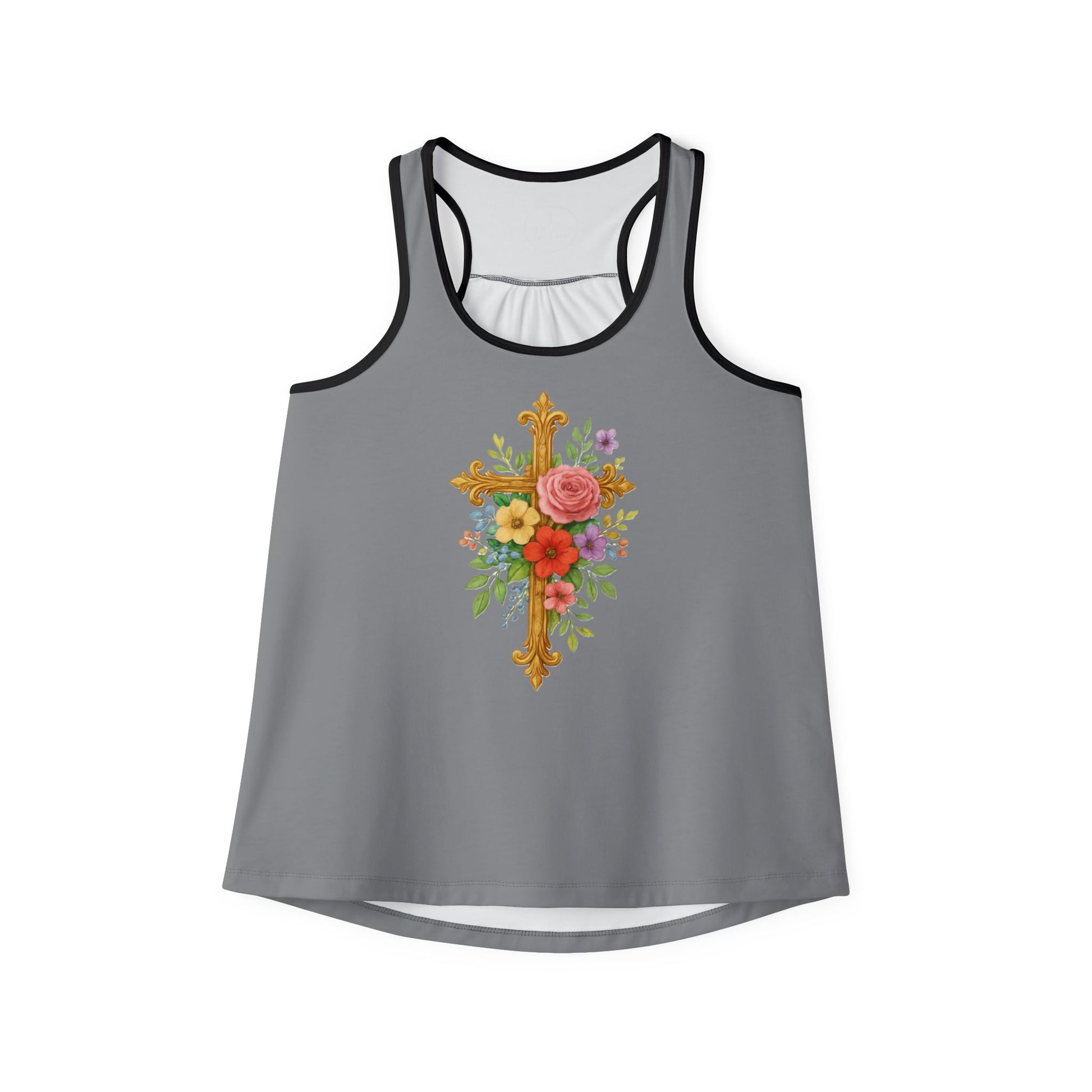 Floral Cross Women’s Christian Tank Top in Grey – Beauty in the Power of the Cross