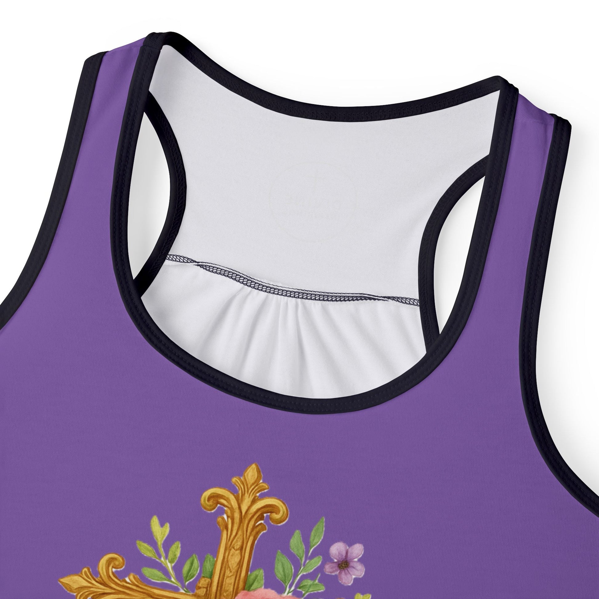 Floral Cross Women’s Christian Tank Top in Purple – Beauty in the Power of the Cross