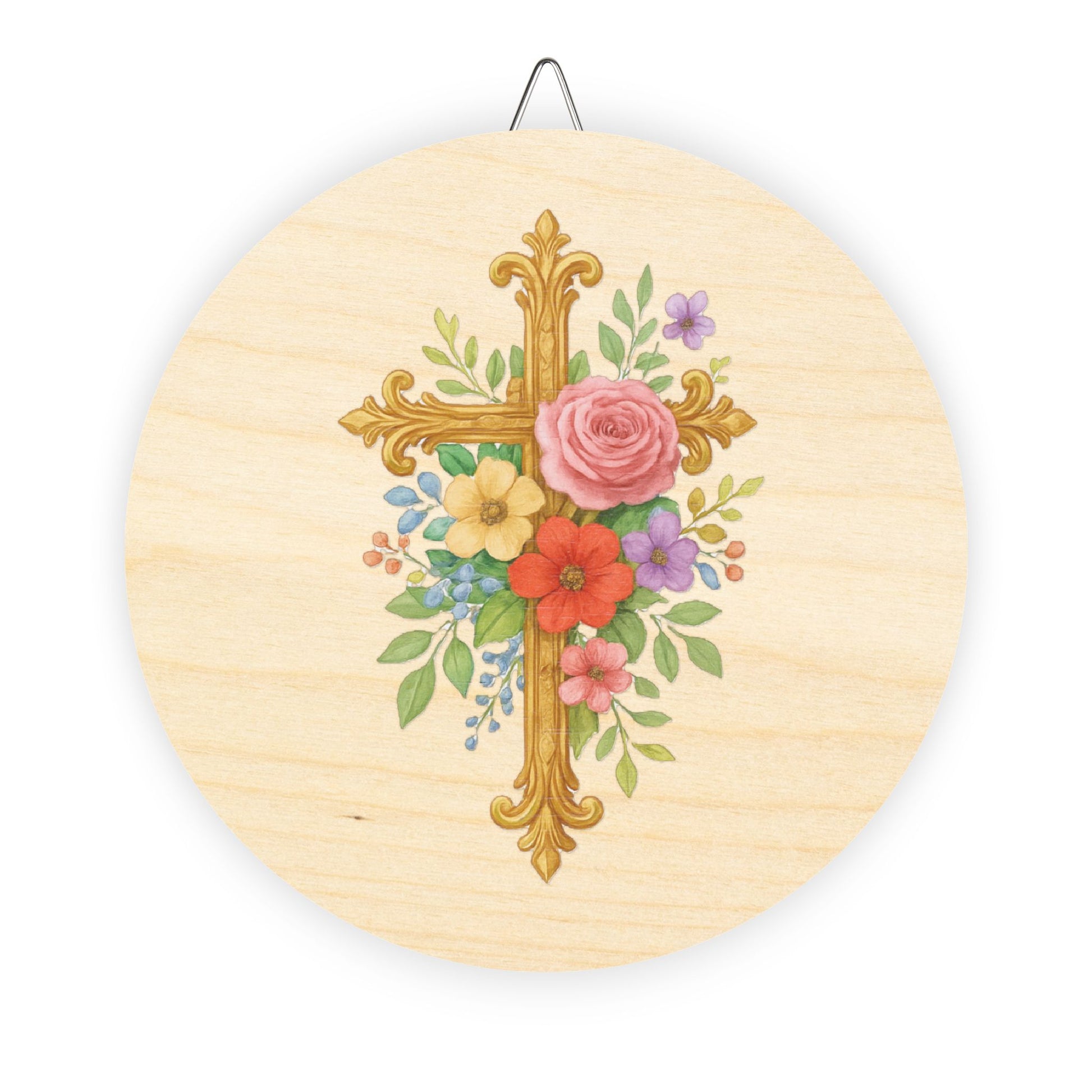Floral Cross Wood Sign – Rustic Christian Home Décor