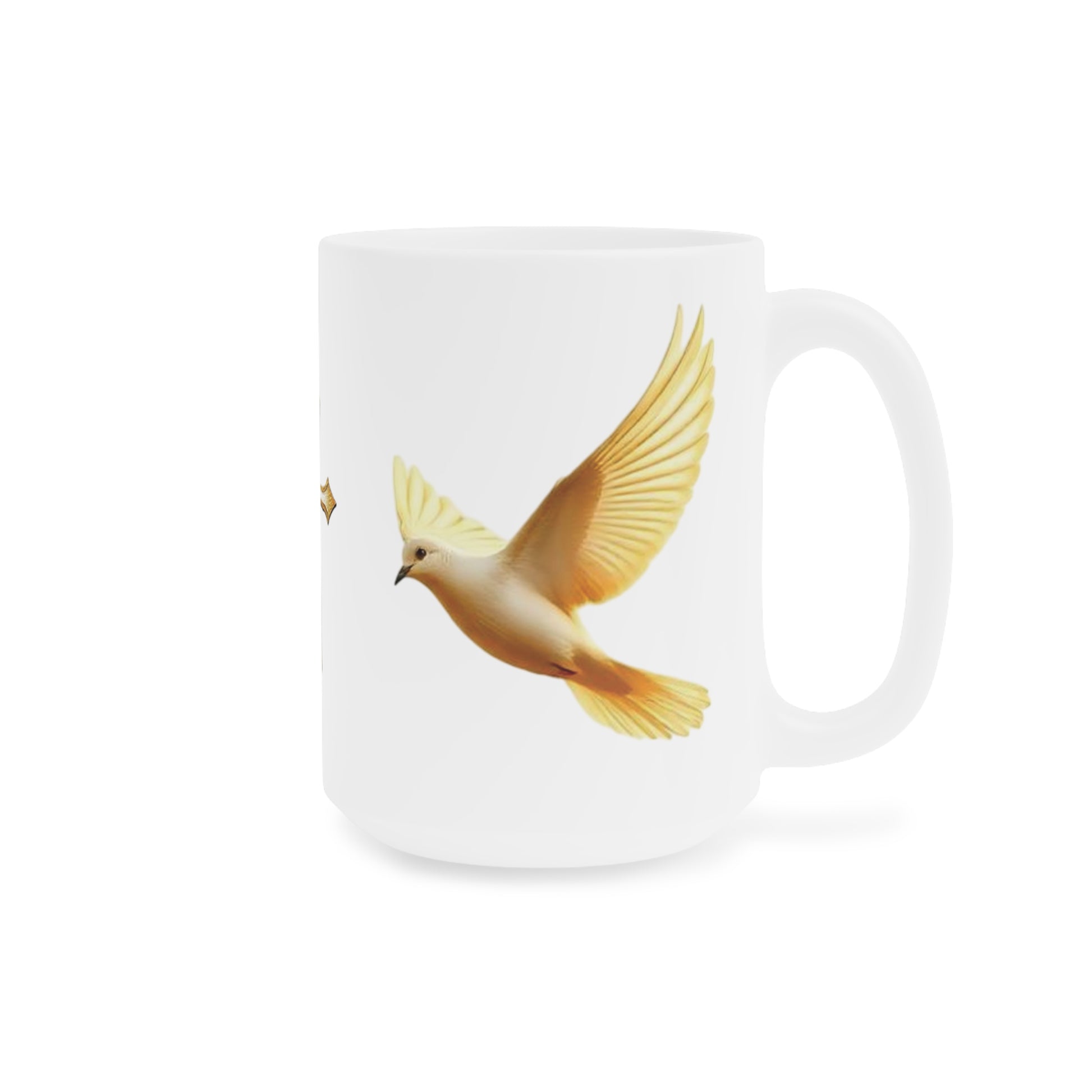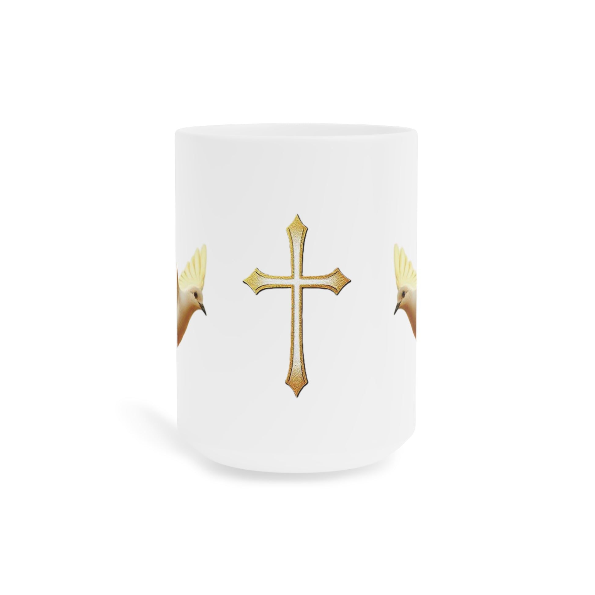 Gold Cross & Dove Mug – Peace and Faith in Every Sip