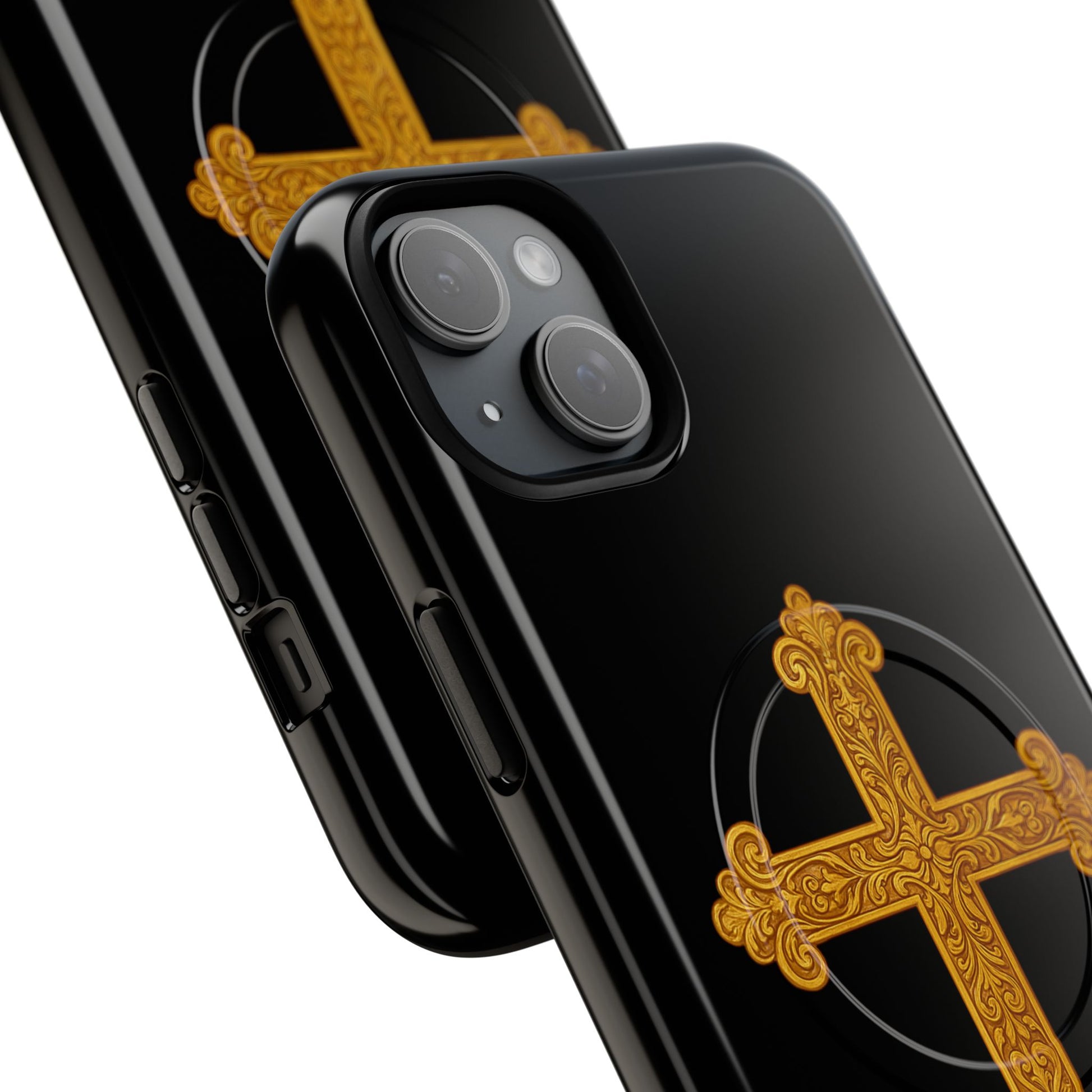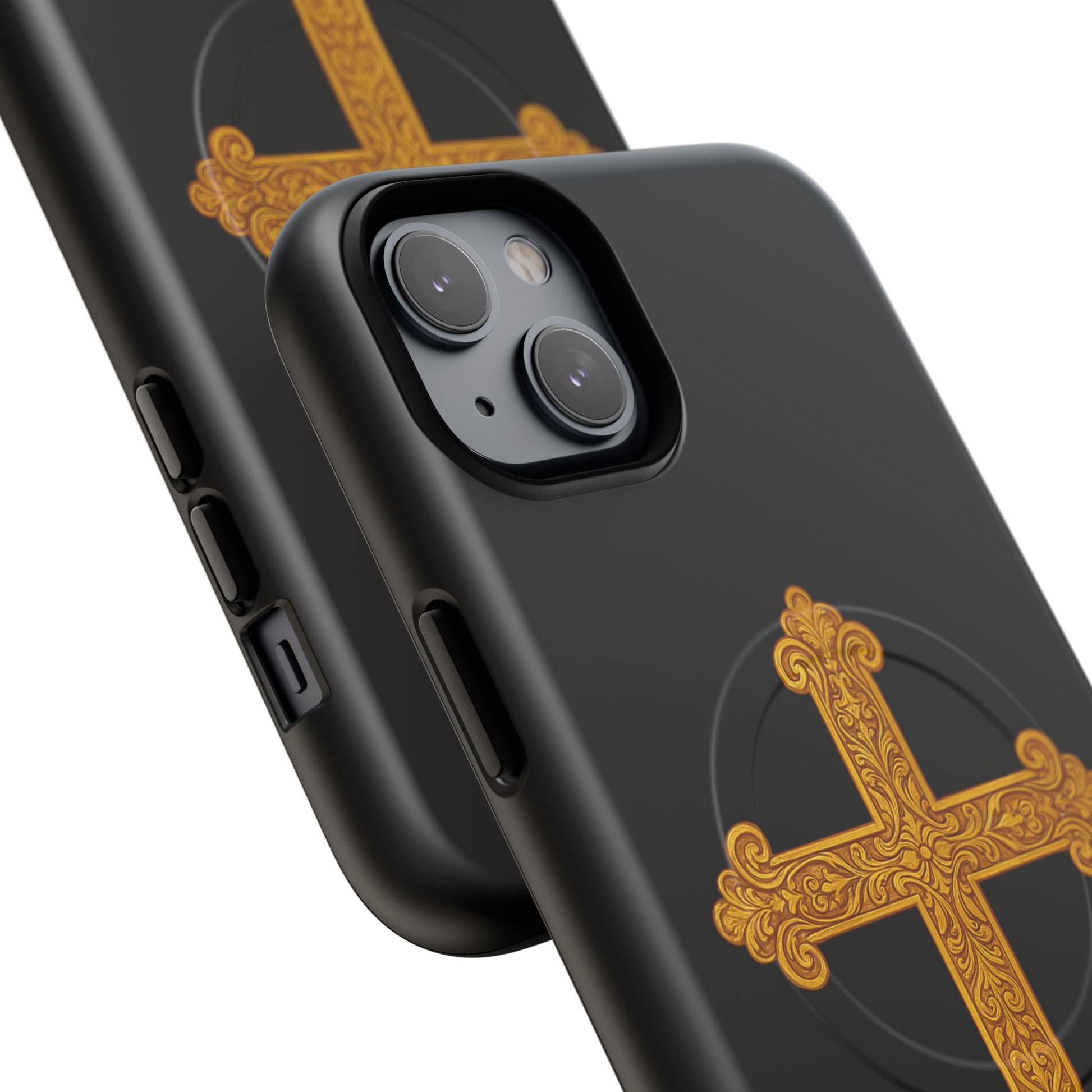 Gold Cross on Black Magnetic Tough Case for iPhone – Strength in Faith