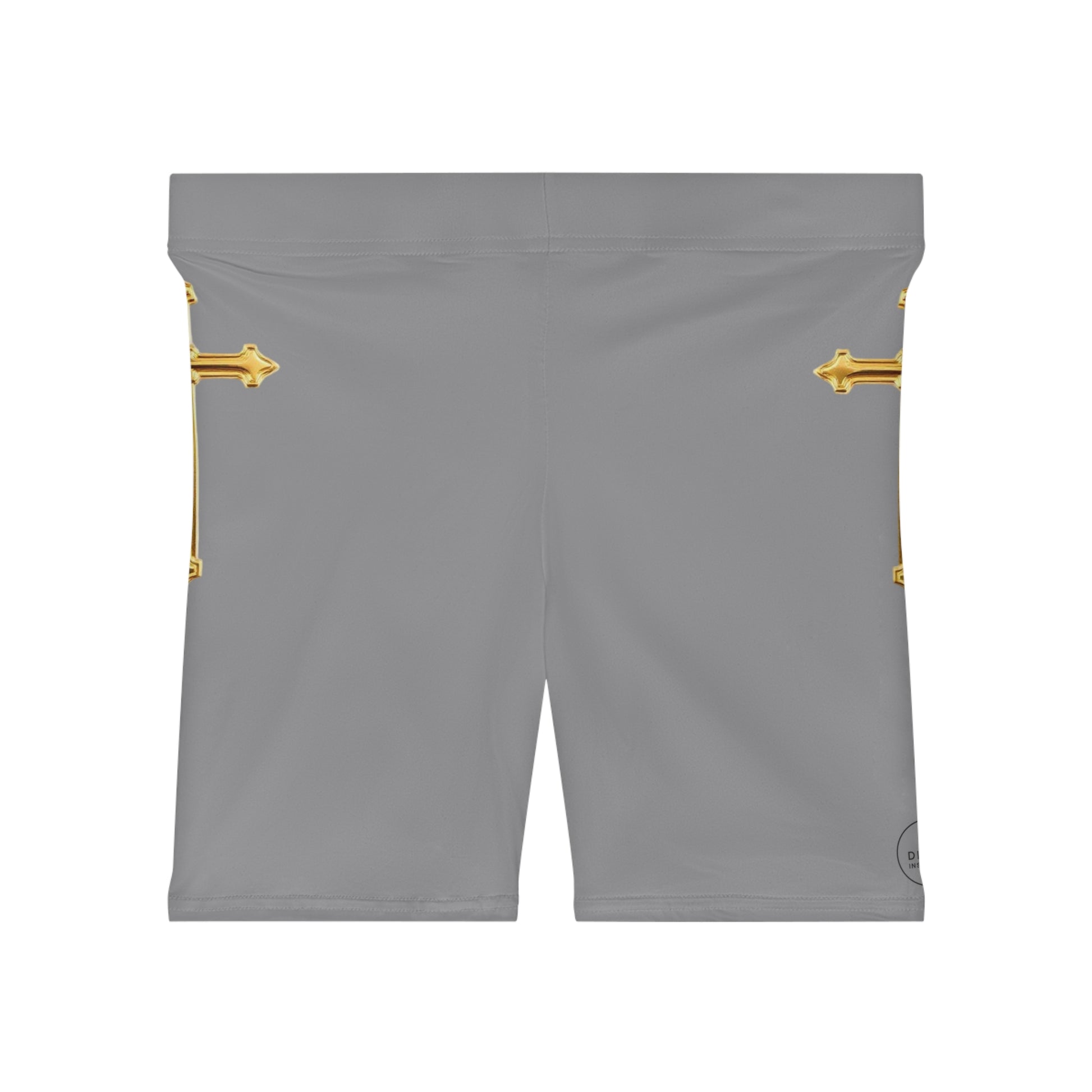 Gold Cross Women’s Biking Shorts in Grey – Symbol of Eternal Victory