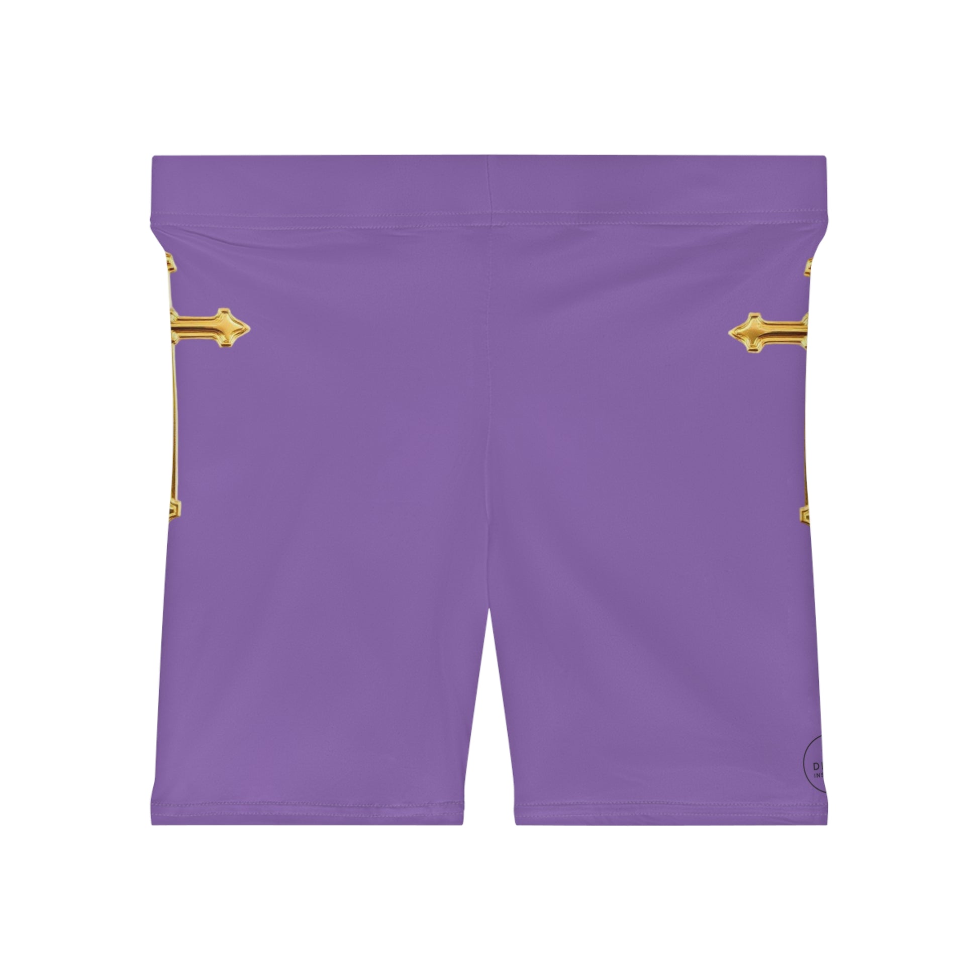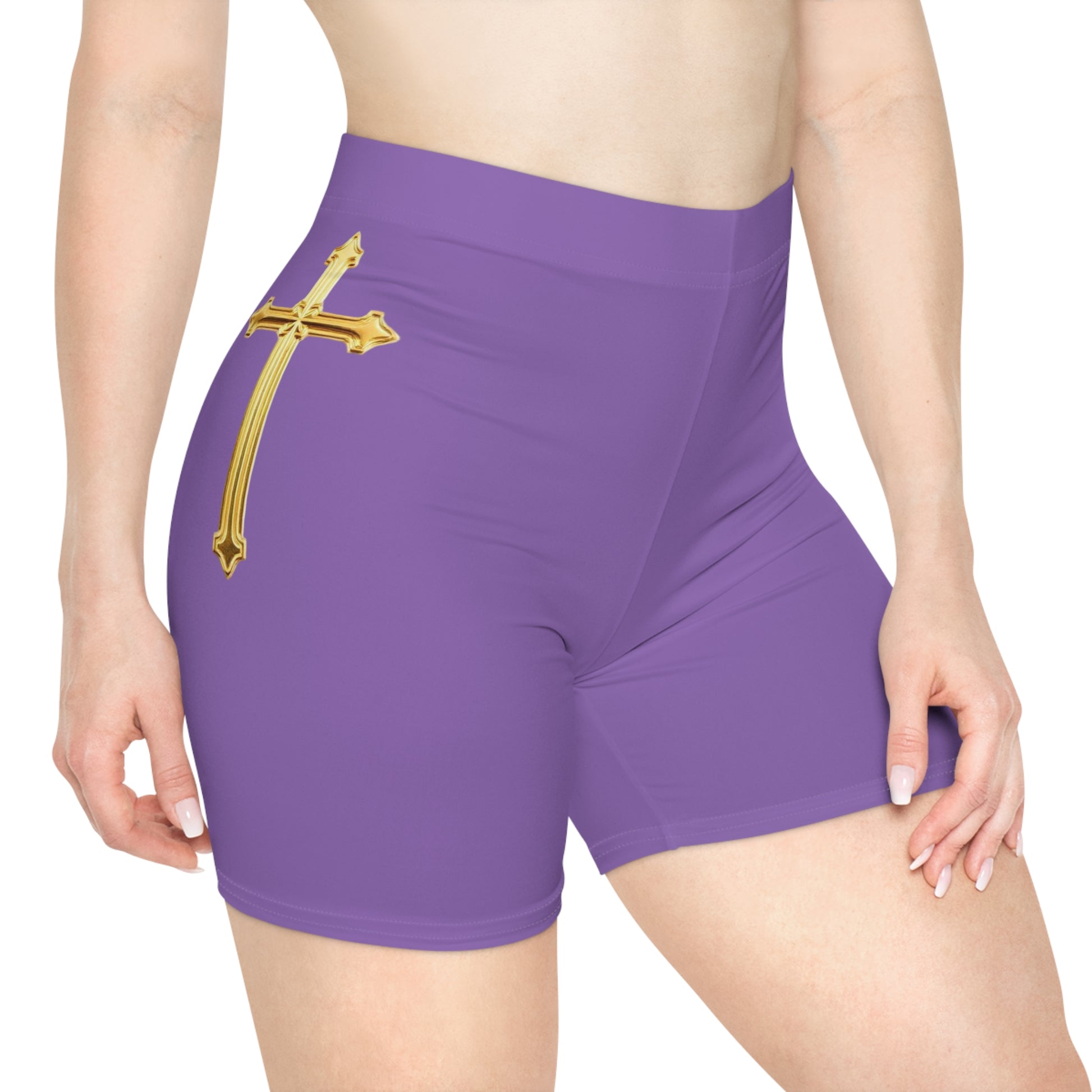Gold Cross Women’s Biking Shorts in Purple – Symbol of Eternal Victory