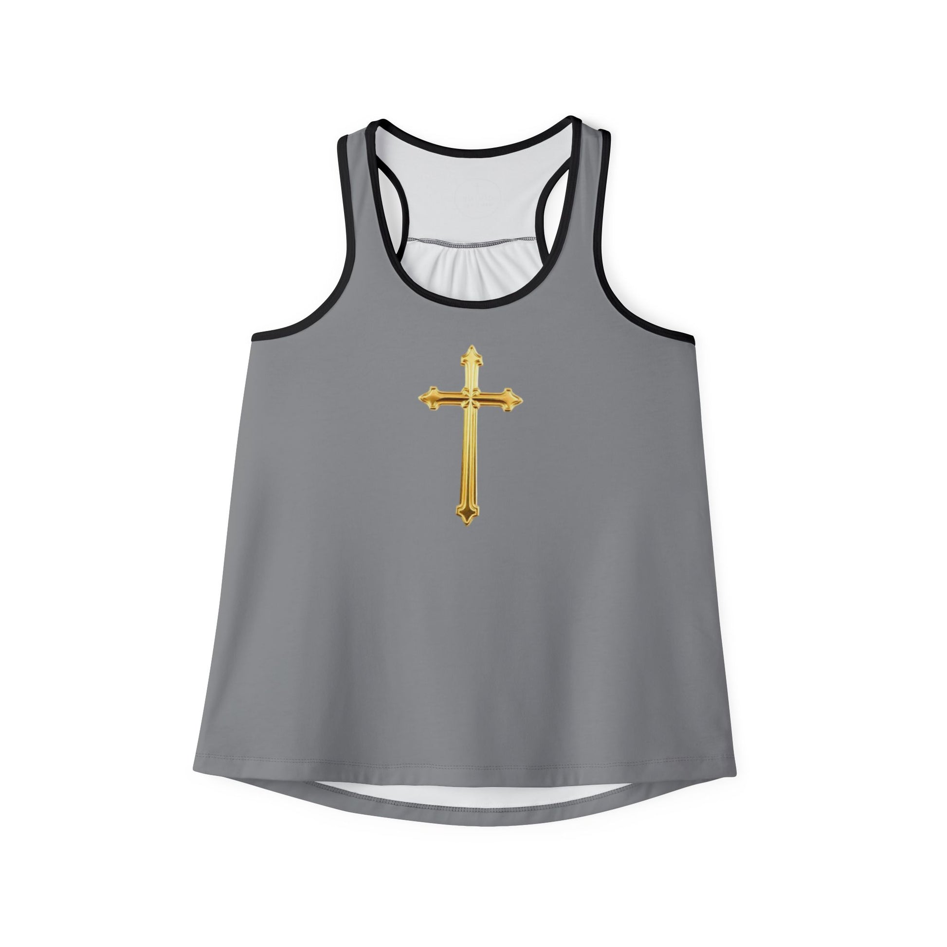 Gold Cross Women’s Christian Tank Top in Grey – Symbol of Eternal Victory