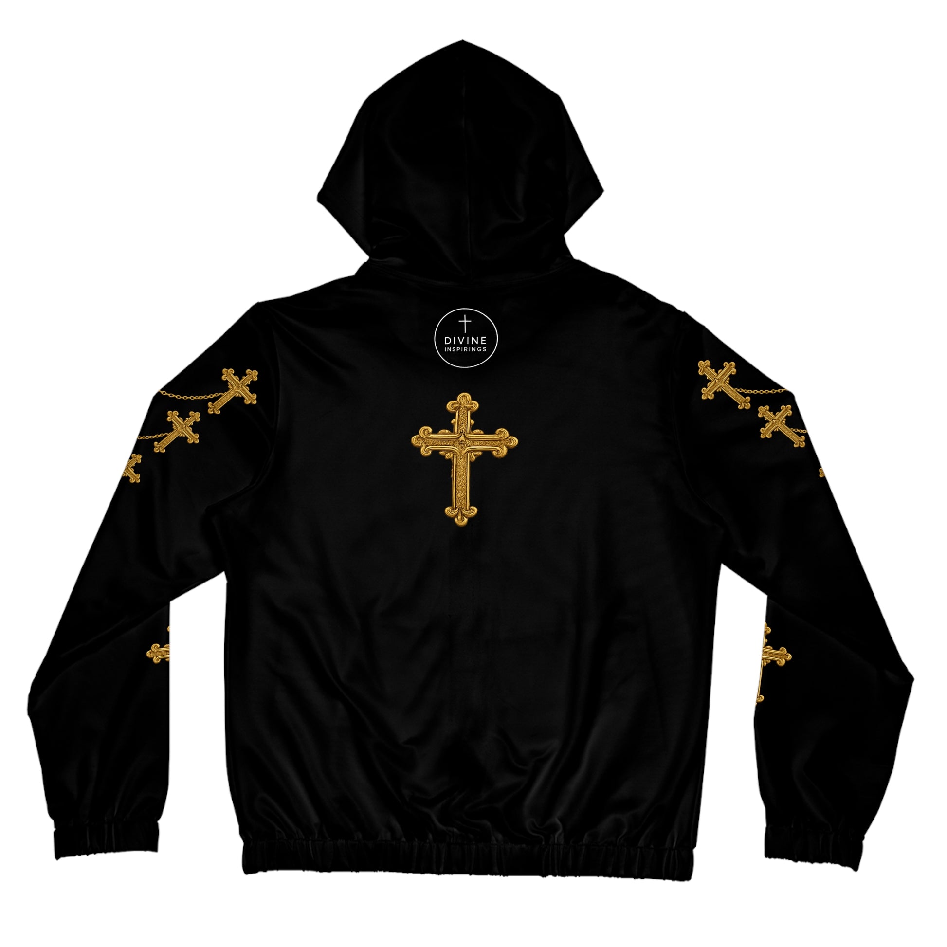 Wrap yourself in strength and divine assurance with the Golden Covenant Zip-Up Hoodie. Featuring a striking gold cross and chain design, this piece symbolizes protection, identity, and God’s unbreakable covering over your life. Soft, warm, and beautifully detailed, this hoodie moves effortlessly from prayer walks to errands to cool-weather comfort. Whether worn open or zipped, it carries a quiet boldness — a wearable declaration that you are held, strengthened, and guided by Him at every moment. A layer of faith. A statement of devotion. A reminder that victory is already yours.