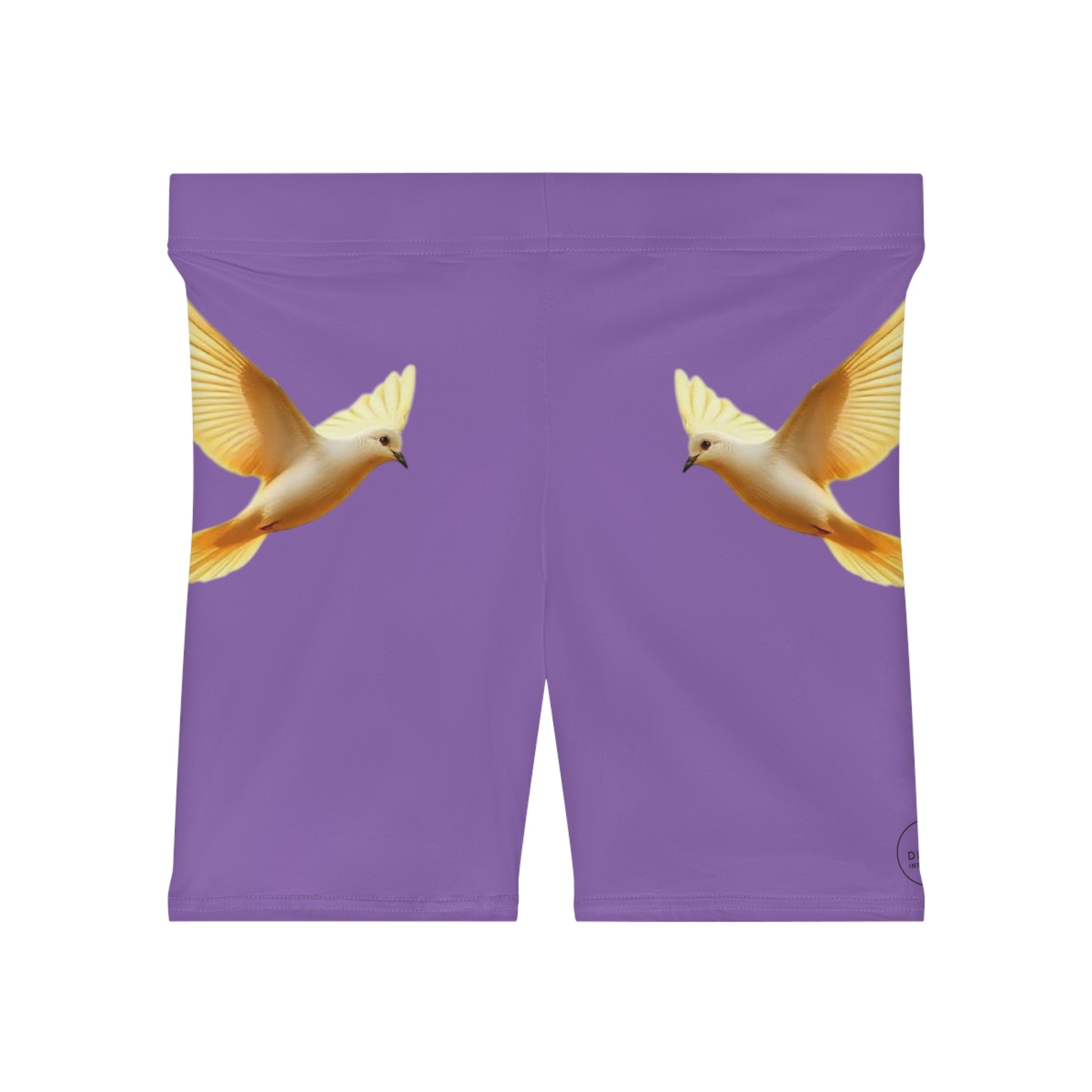 Golden Dove Women’s Biking Shorts in Purple – Spirit of Peace and Power