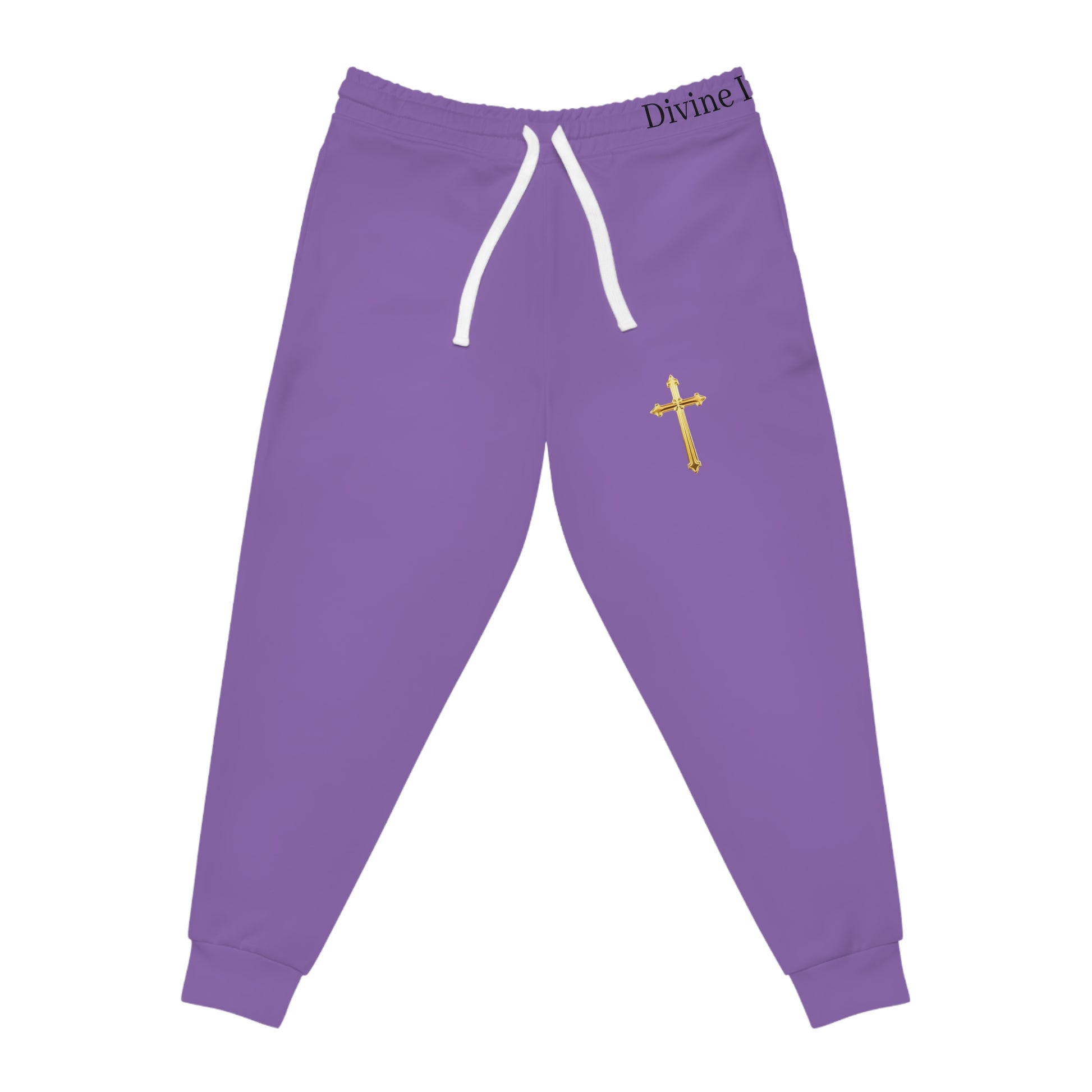 Golden Grace Women's Jogging Pants in Purple with Gold Cross Design