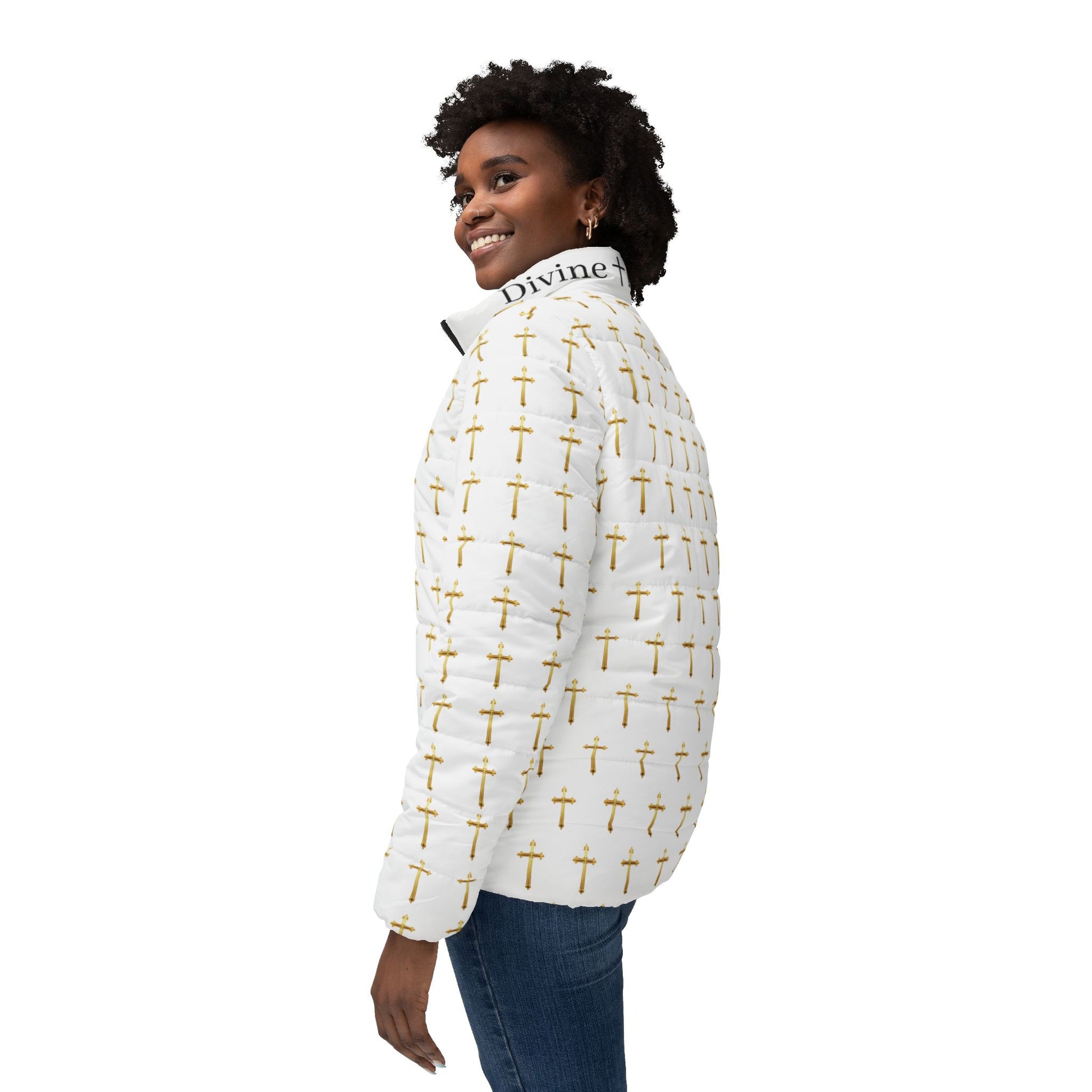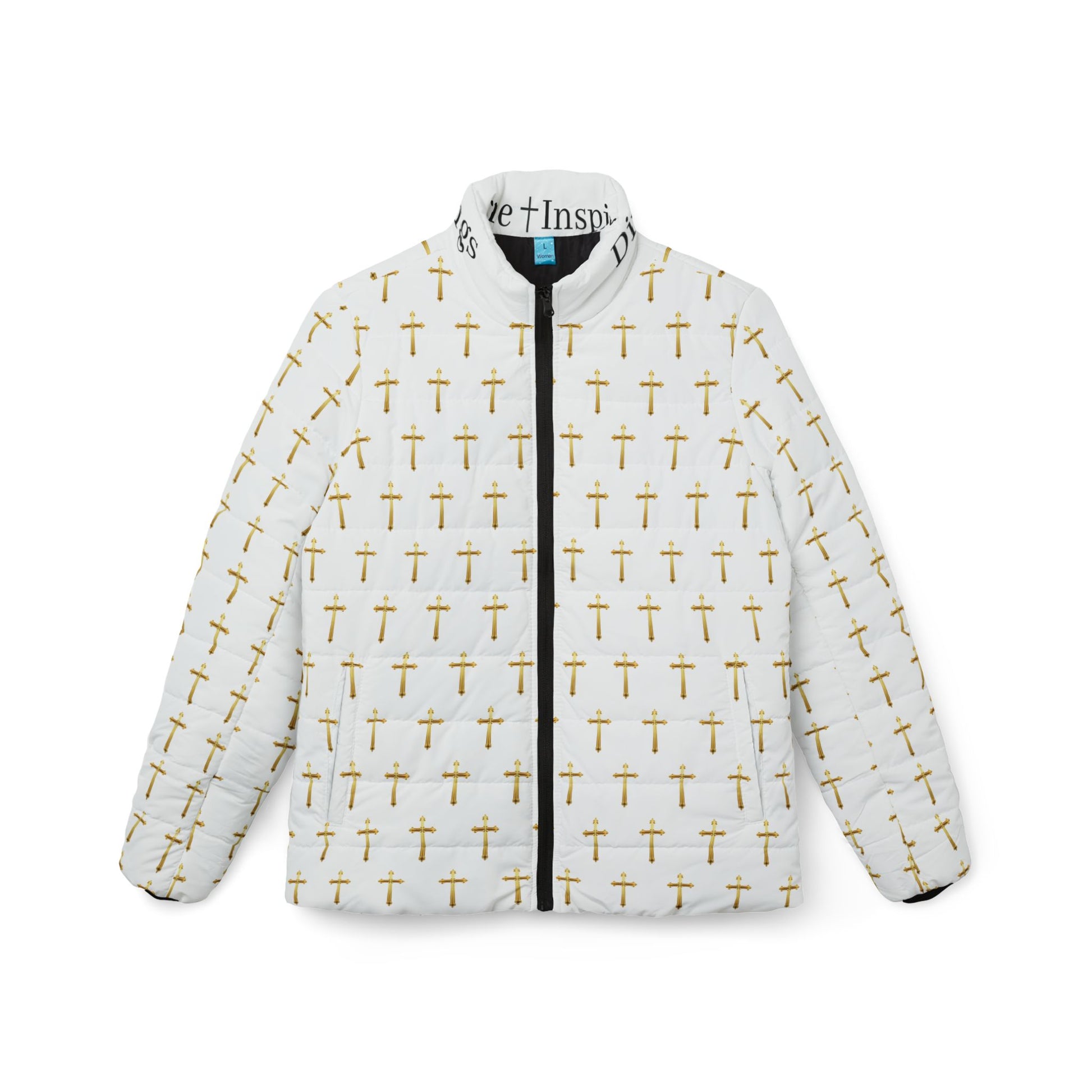 Shine with faith and warmth this winter in our Golden Light Women’s Puffer Jacket. Featuring an all-over gold cross pattern, this insulated jacket combines cozy comfort with bold spiritual symbolism. Perfect for chilly mornings, outdoor adventures, or layering over your favorite winter outfits, it’s a statement piece that carries your devotion everywhere. Let the light of Christ guide your path, even in the coldest seasons.