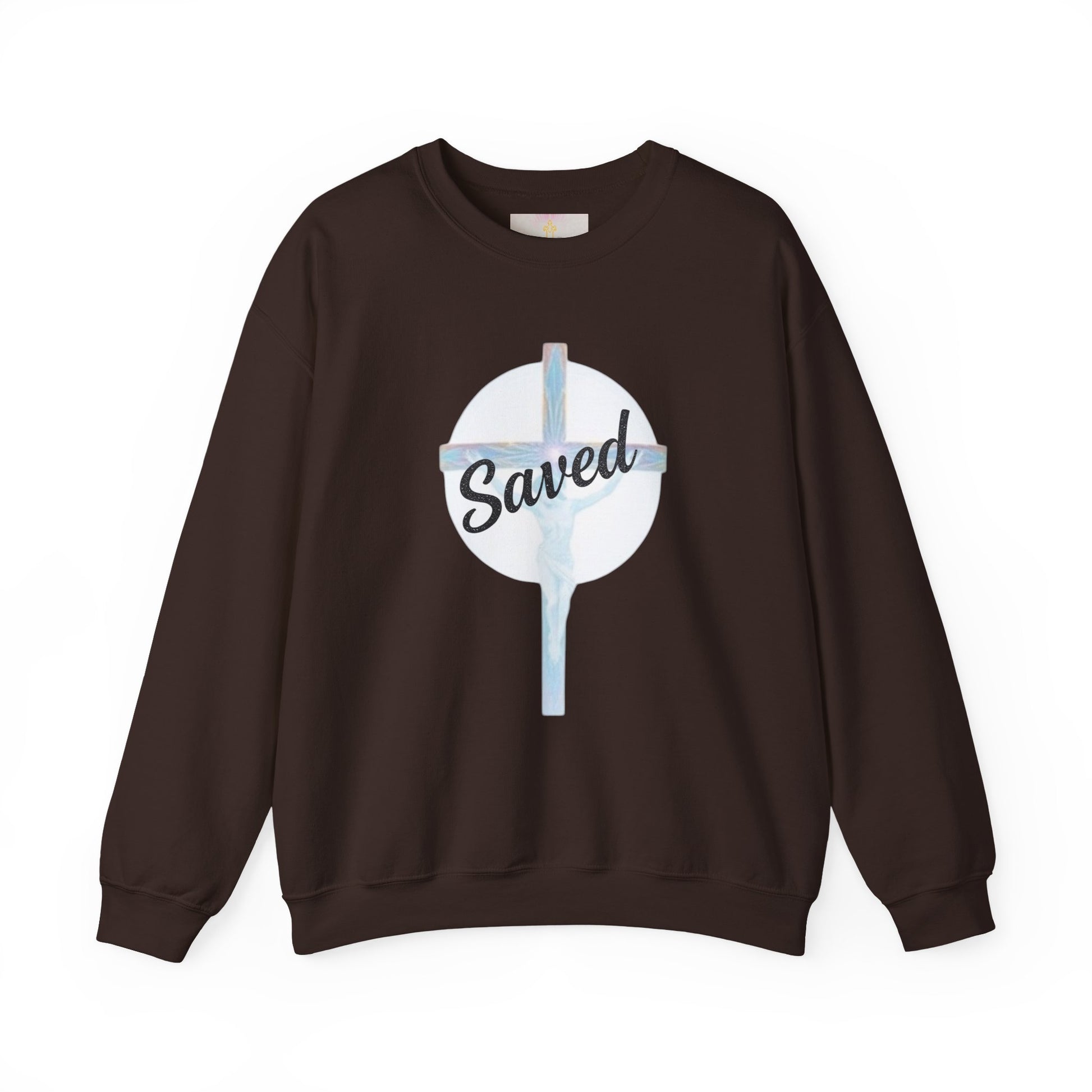 Wrap yourself in warmth and grace with this women’s sweatshirt. Featuring the word Saved with a subtle cross behind it, it’s a statement of faith you can wear in comfort and style.