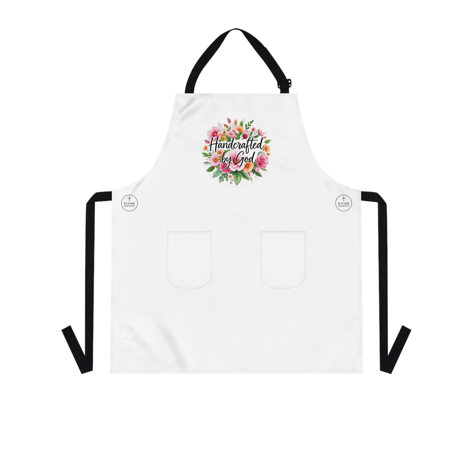 Handcrafted by God Floral Apron — Inspirational Kitchen Apron for Christian Crafters & Bakers