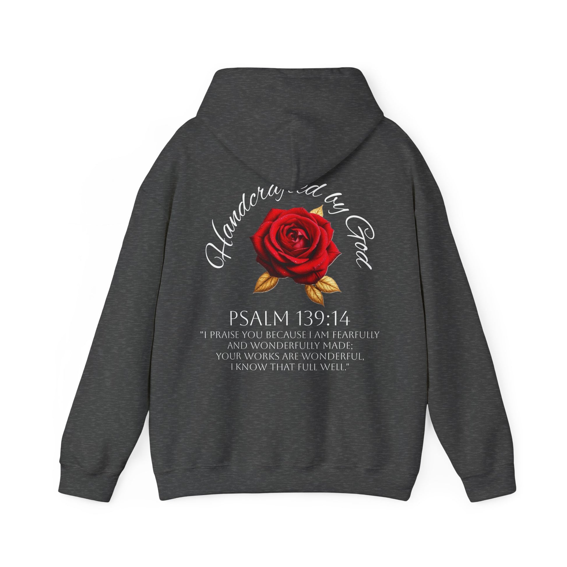 Handcrafted by God Rose Hoodie – White Lettering, Psalm 139:14