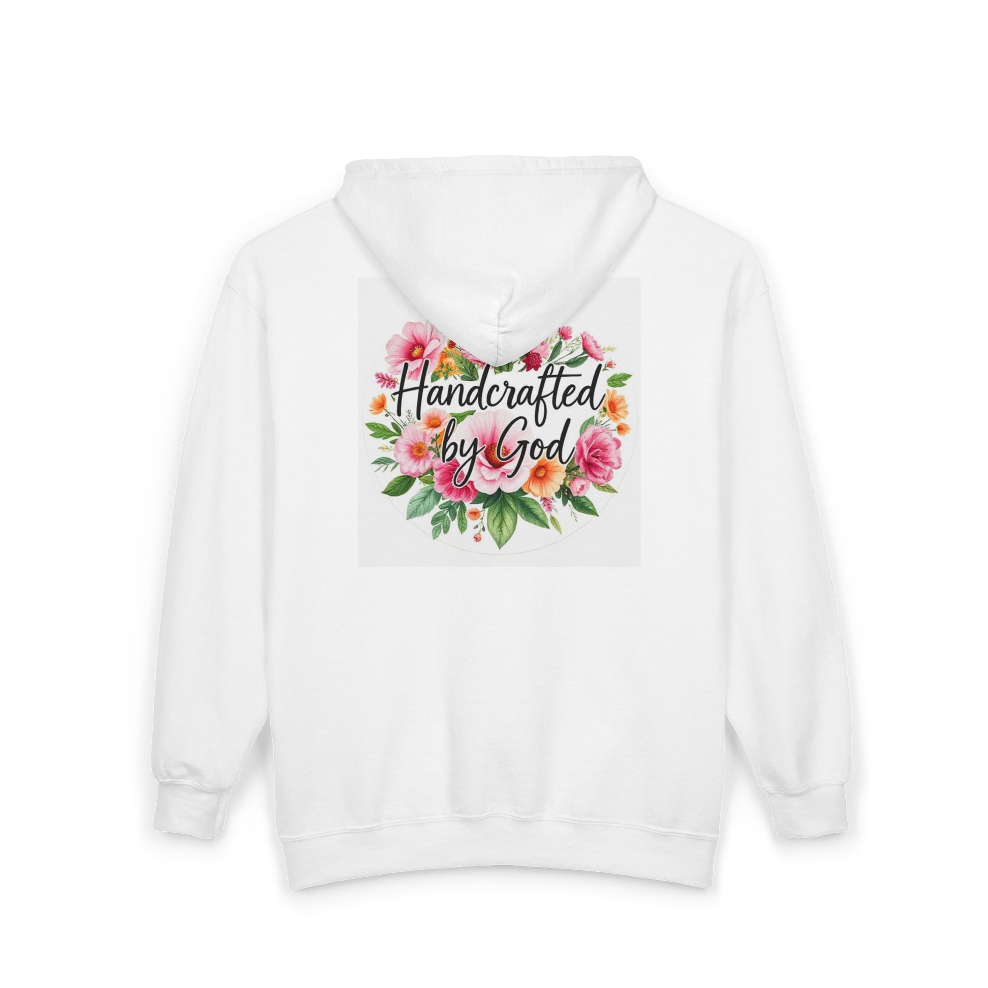 Celebrate your divine uniqueness with this women's zip-up hoodie, featuring the empowering phrase “Handcrafted by God.” Soft, cozy, and stylish, it’s perfect for layering, daily wear, or gifting to someone who cherishes their faith. Wear it as a reminder that you are wonderfully made and cherished by the Creator.
