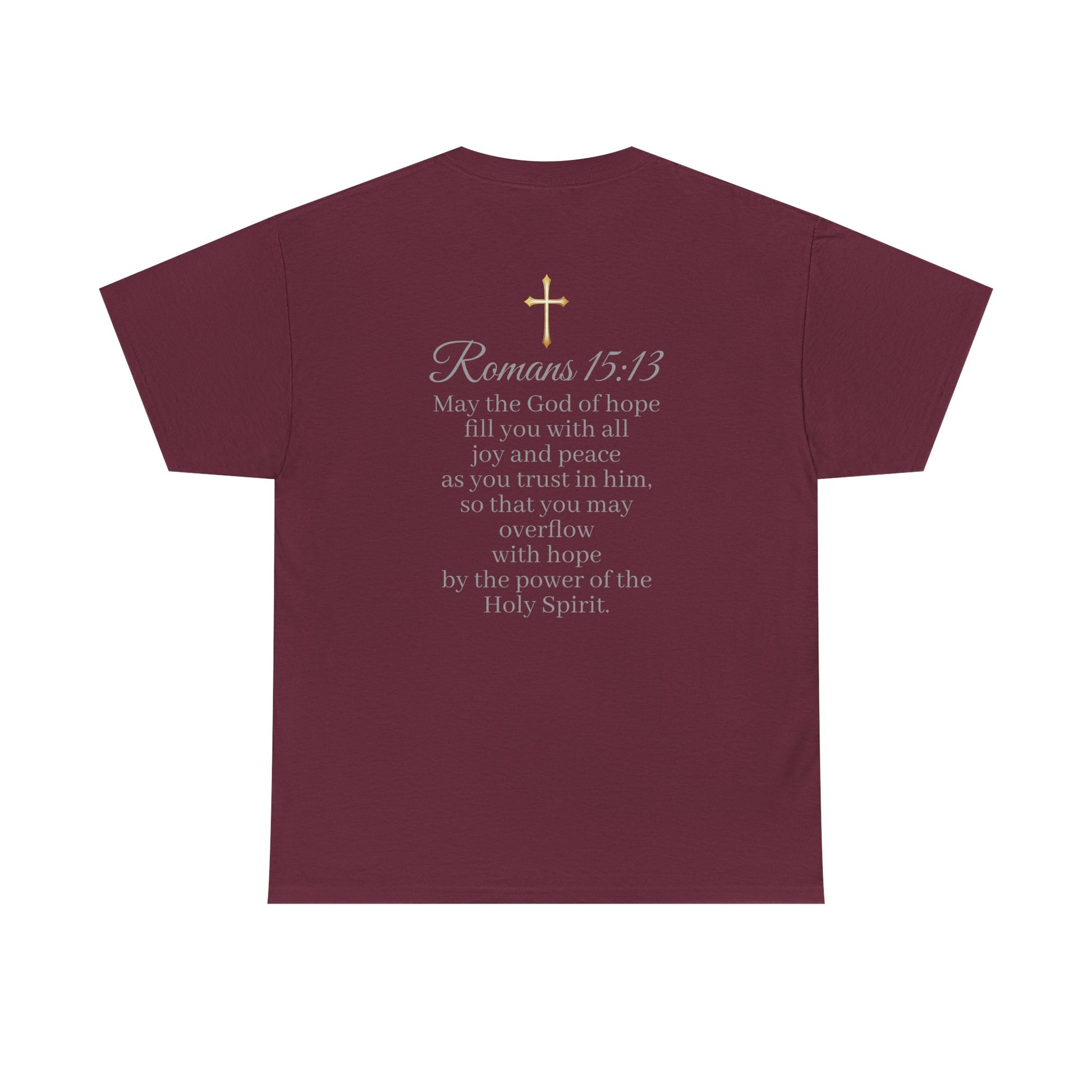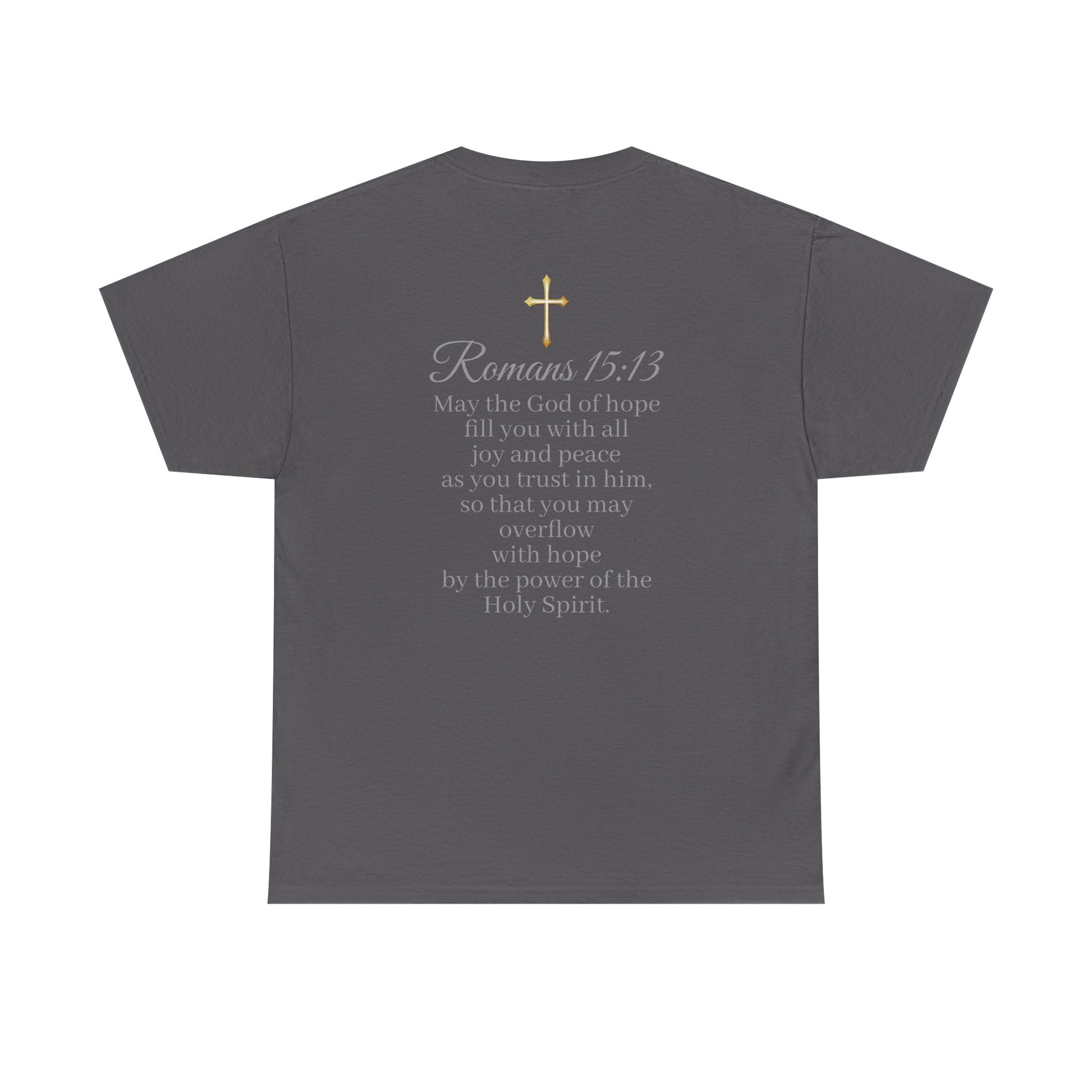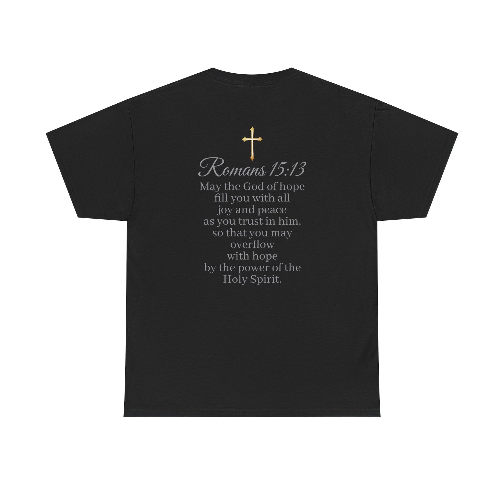 Embrace hope and joy with this feminine “Hope” tee, designed to inspire and uplift. Featuring HOPE elegantly on the front and the full verse Romans 15:13 on the back. This shirt isn’t just fashion—it’s a daily reminder to walk in God’s peace, trust His timing, and let your faith shine. Perfect for casual days, church, or as a thoughtful gift for the women who inspire you.