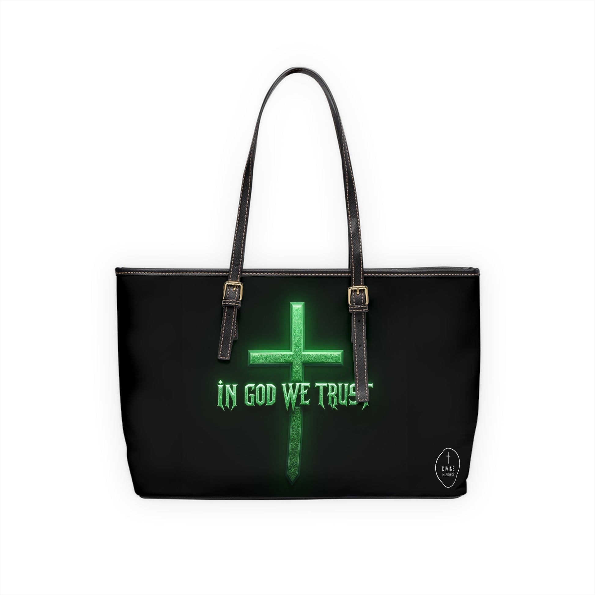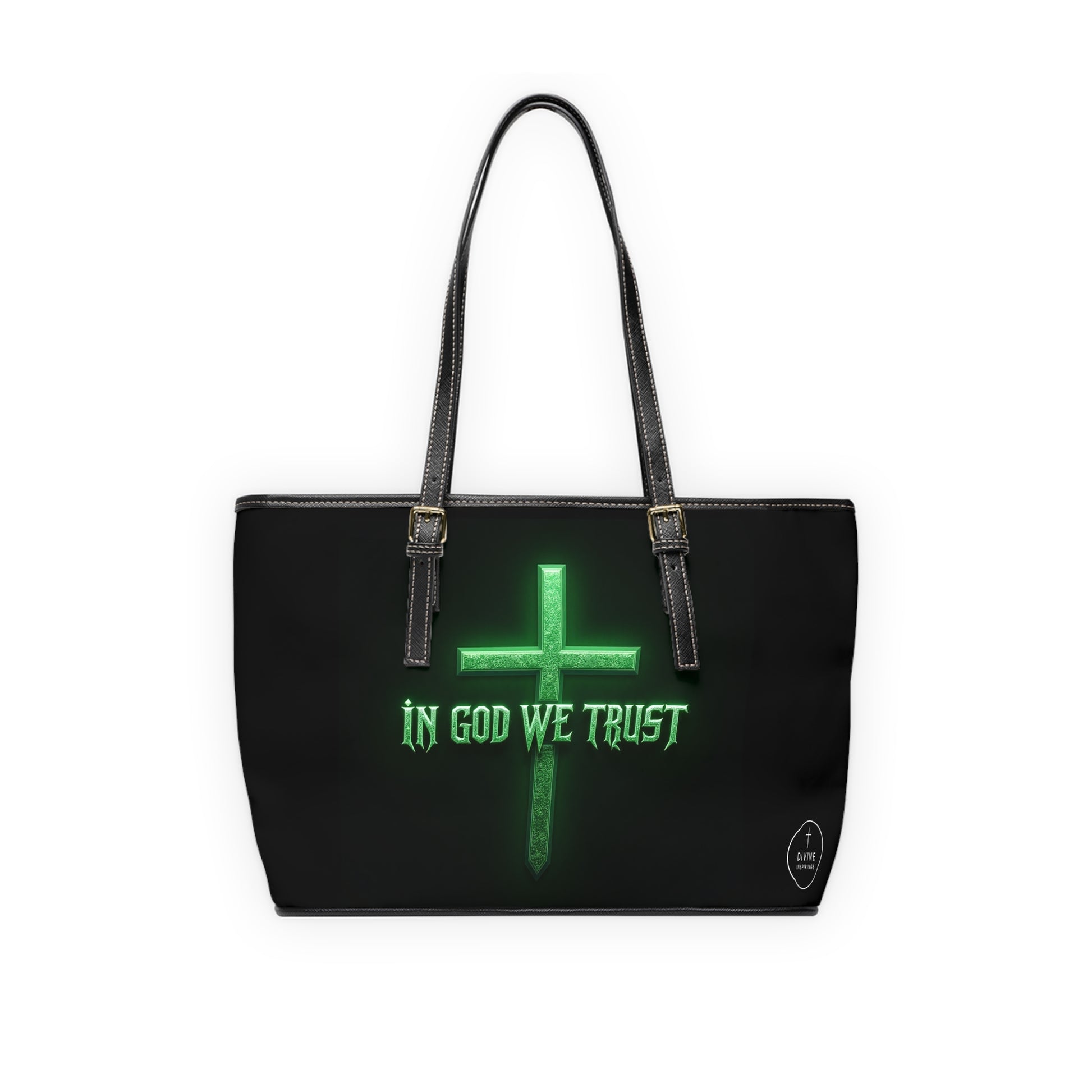 Carry your faith wherever you go with this elegant black PU leather shoulder bag. Embossed with the powerful declaration “In God We Trust” over a subtle cross backdrop, this piece blends modern style with timeless devotion. Perfect for daily use or as a statement of faith, it’s more than a bag—it’s a symbol of trust, strength, and divine confidence. Whether you’re headed to work, worship, or a weekend outing. Let your style speak your faith.