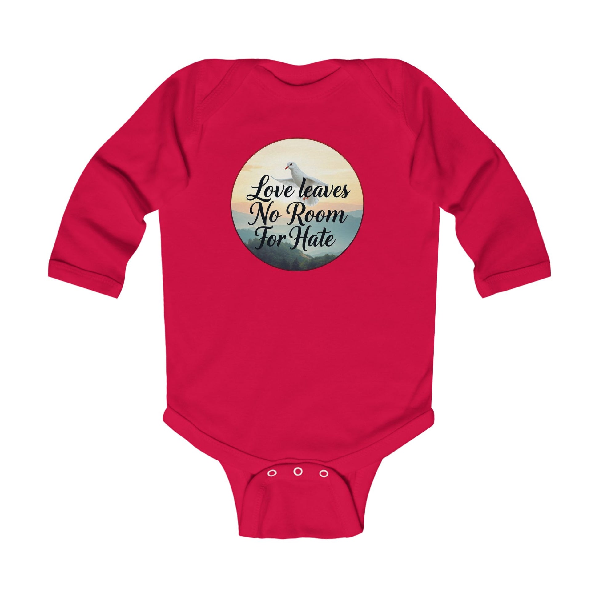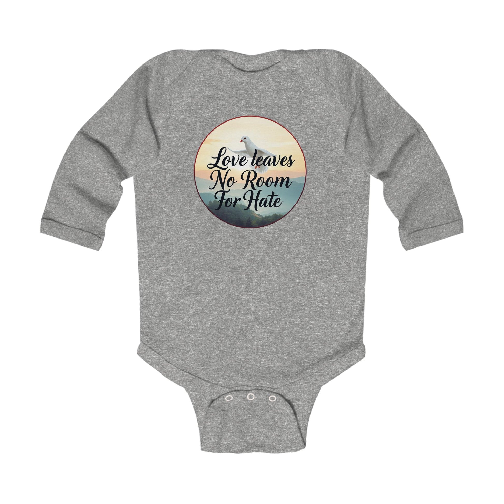Infant Girls Long Sleeve “Love Leaves No Room for Hate” Christian Onesie – Faith-Inspired Baby Outfit