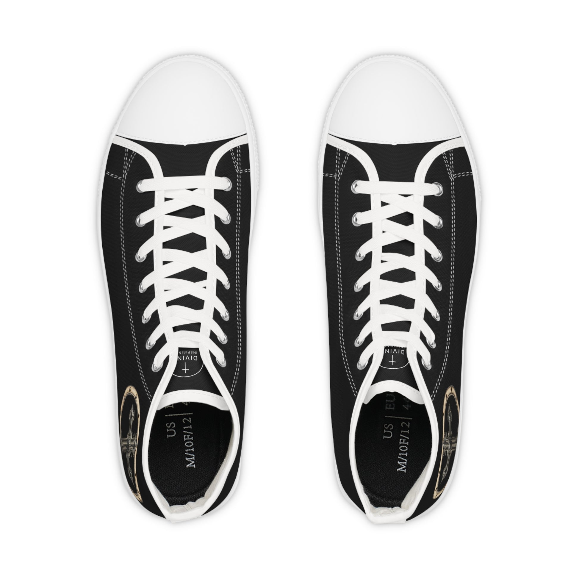 Step into battle-ready style with our Iron Faith high-top sneakers. Centered on each side is a bold black cross encircled by a riveted iron ring—symbolizing strength, endurance, and unshakable belief. Built for street comfort with a rugged edge, these kicks pair perfectly with denim, leathers, or anything that carries a hint of rebellion and purpose.