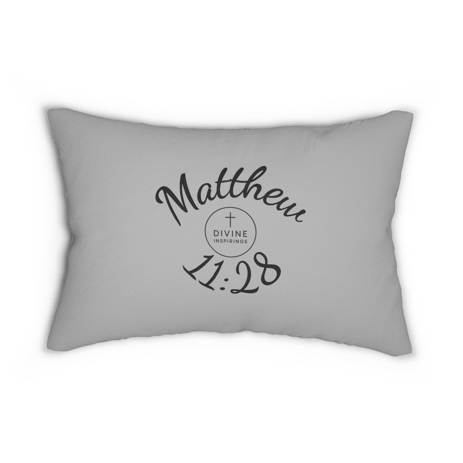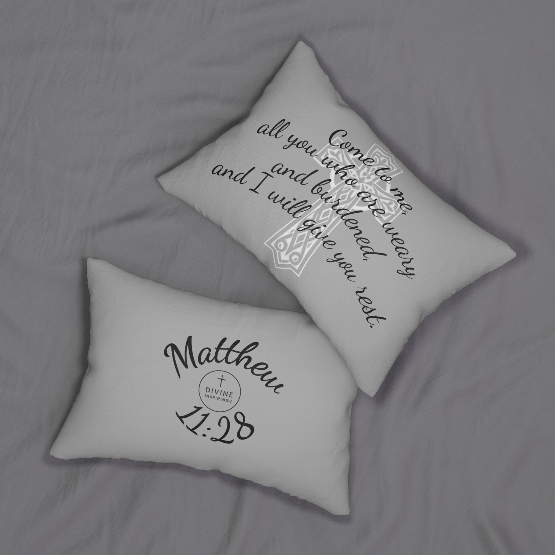 Matthew 11:28 Lumbar Pillow – Rest for the Weary (Literally in grey!)