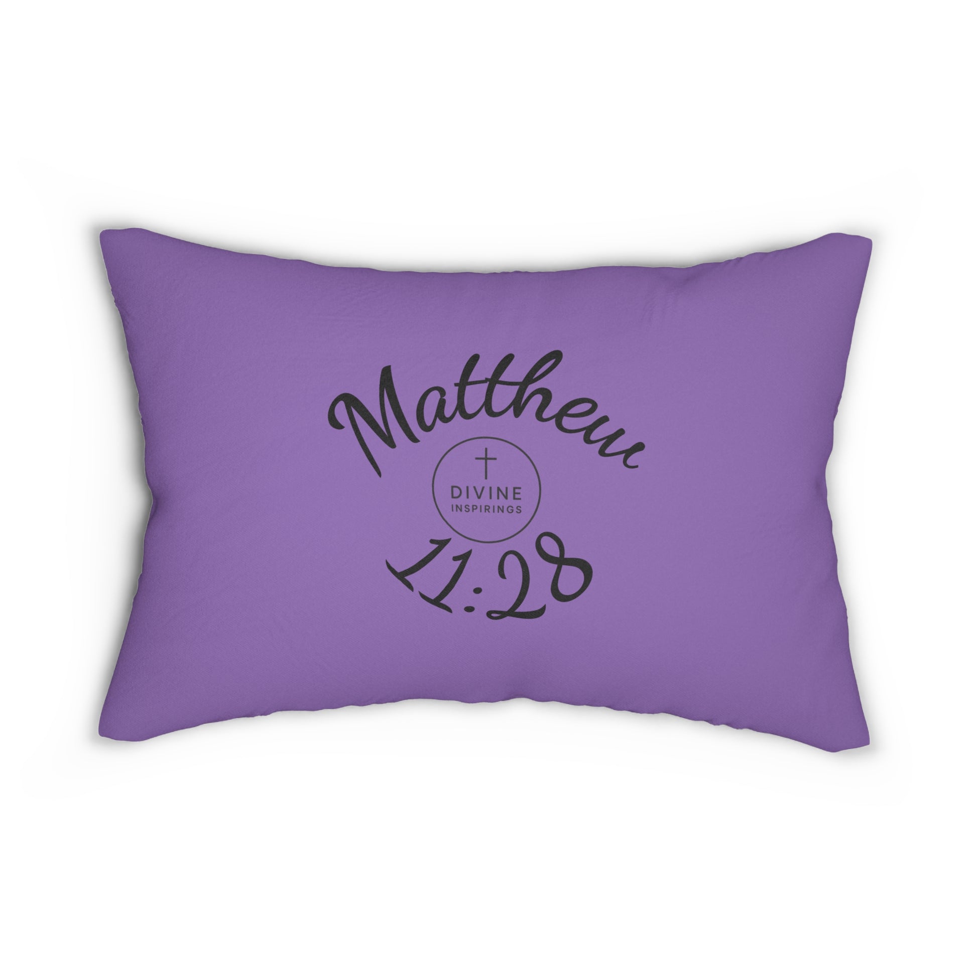 Matthew 11:28 Lumbar Pillow – Rest for the Weary (Literally in mauve!)