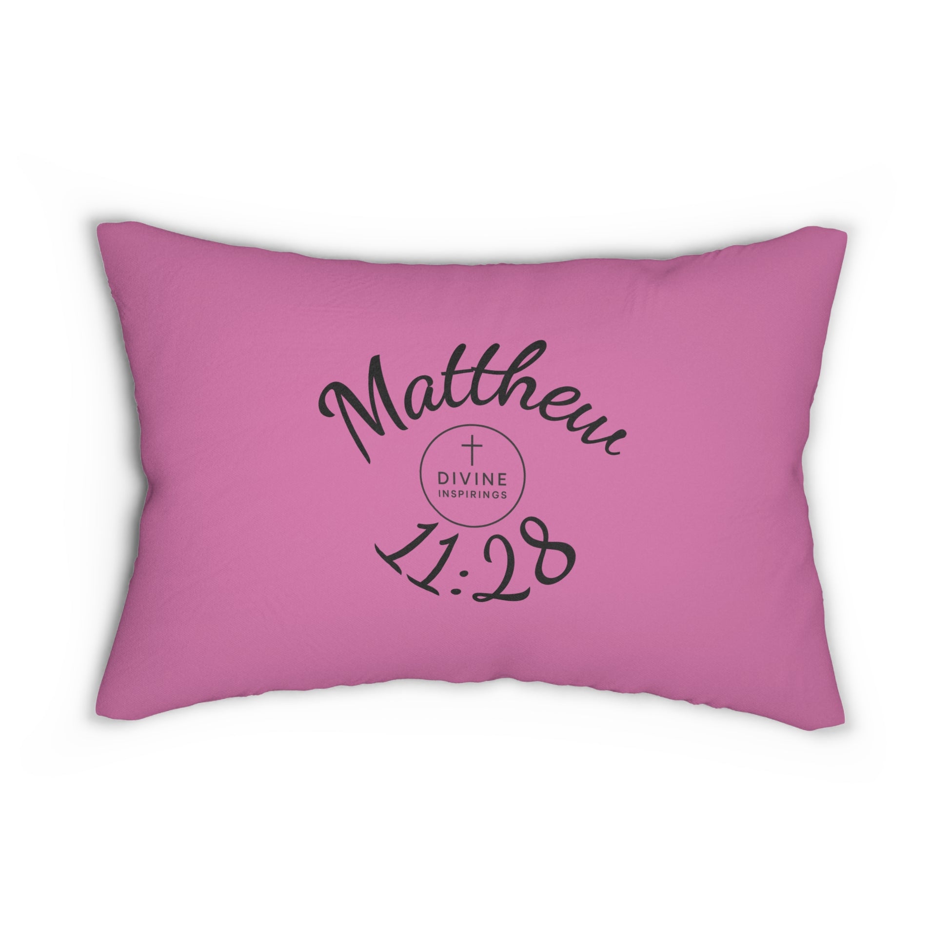 Matthew 11:28 Lumbar Pillow – Rest for the Weary (Literally in pink!)