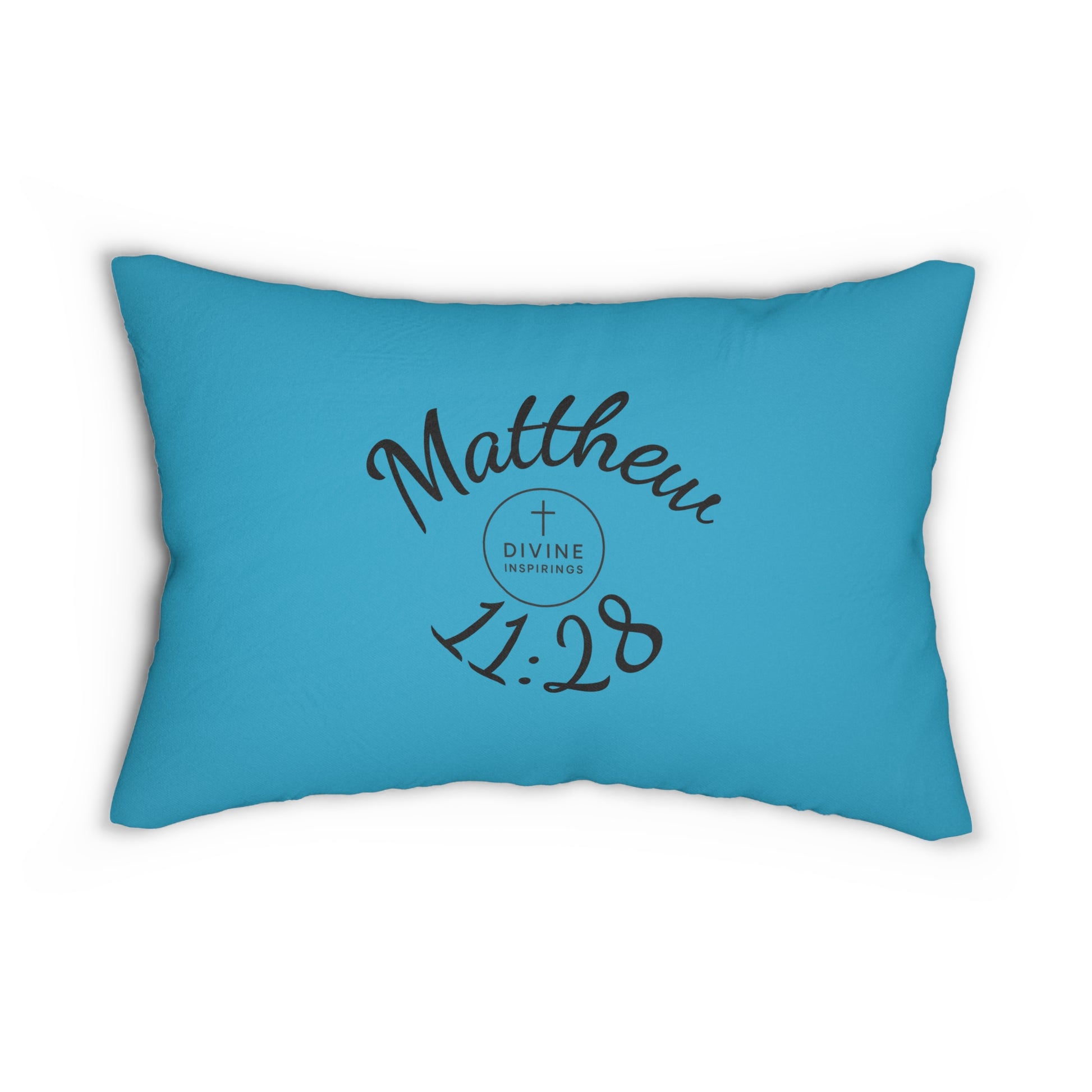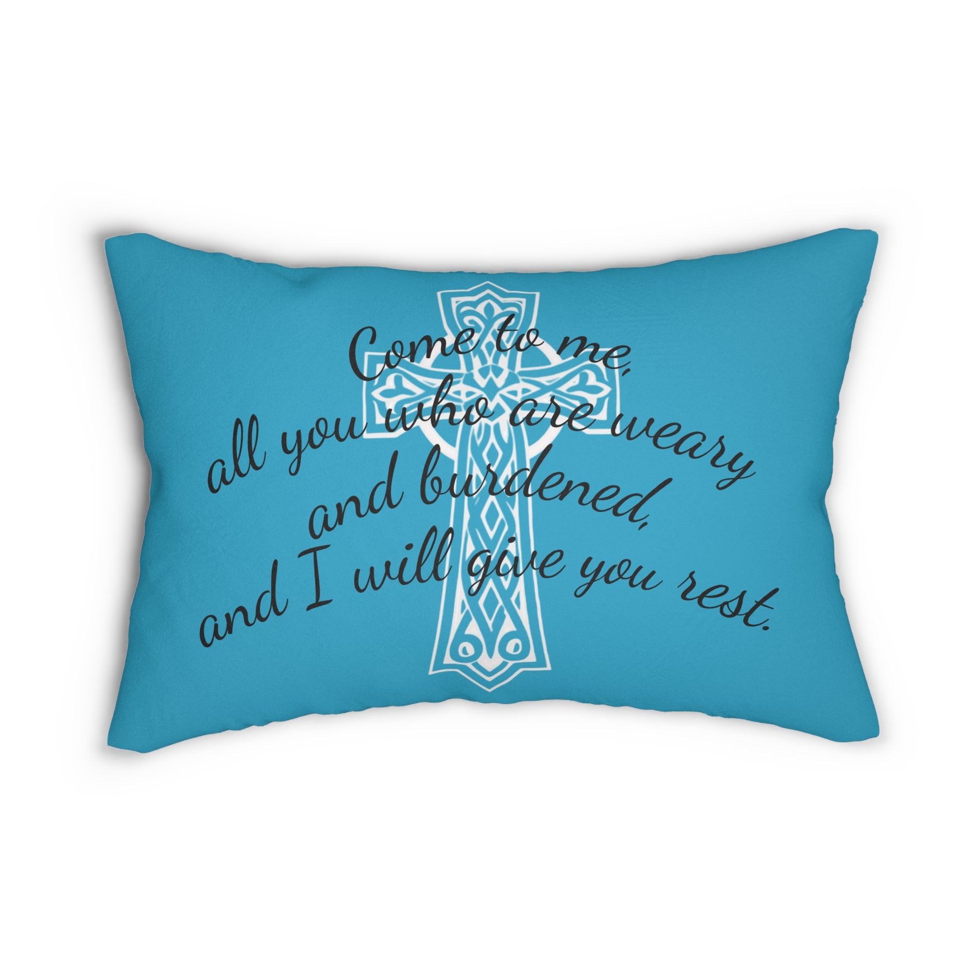 Matthew 11:28 Lumbar Pillow – Rest for the Weary (Literally in turquoise!)