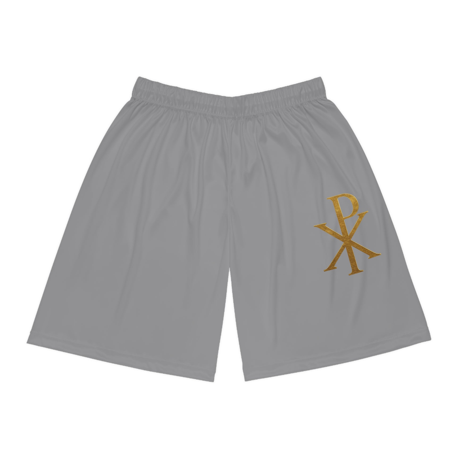 Men’s Chi Rho Basketball Shorts in Grey – Faith-Inspired Performance & Comfort