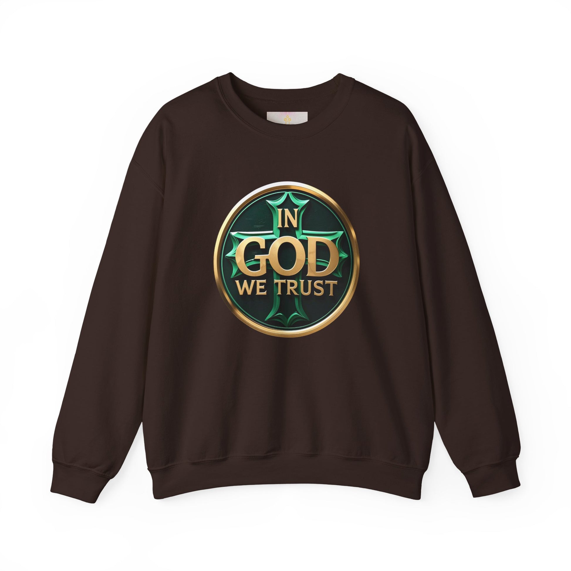 Combine comfort and faith with this men’s sweatshirt featuring “In God We Trust” in bold gold letters over a prominent cross. A subtle greenish tinge gives it a contemporary edge while keeping the focus on the timeless message of trust and devotion. Perfect for everyday wear, church gatherings, or gifting to the men in your life who live boldly in faith. Soft, warm, and designed to make a statement—because your faith deserves to be seen.